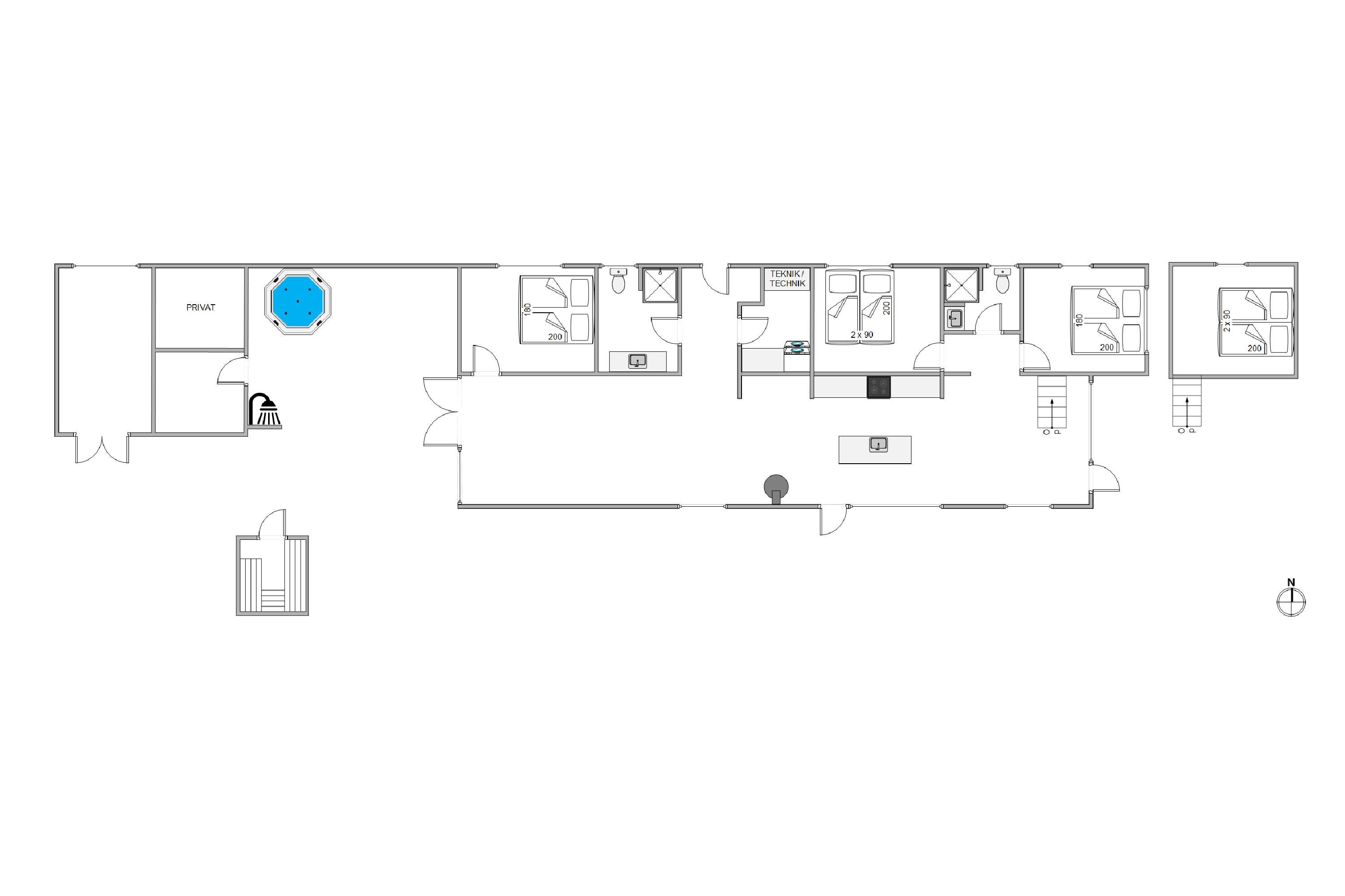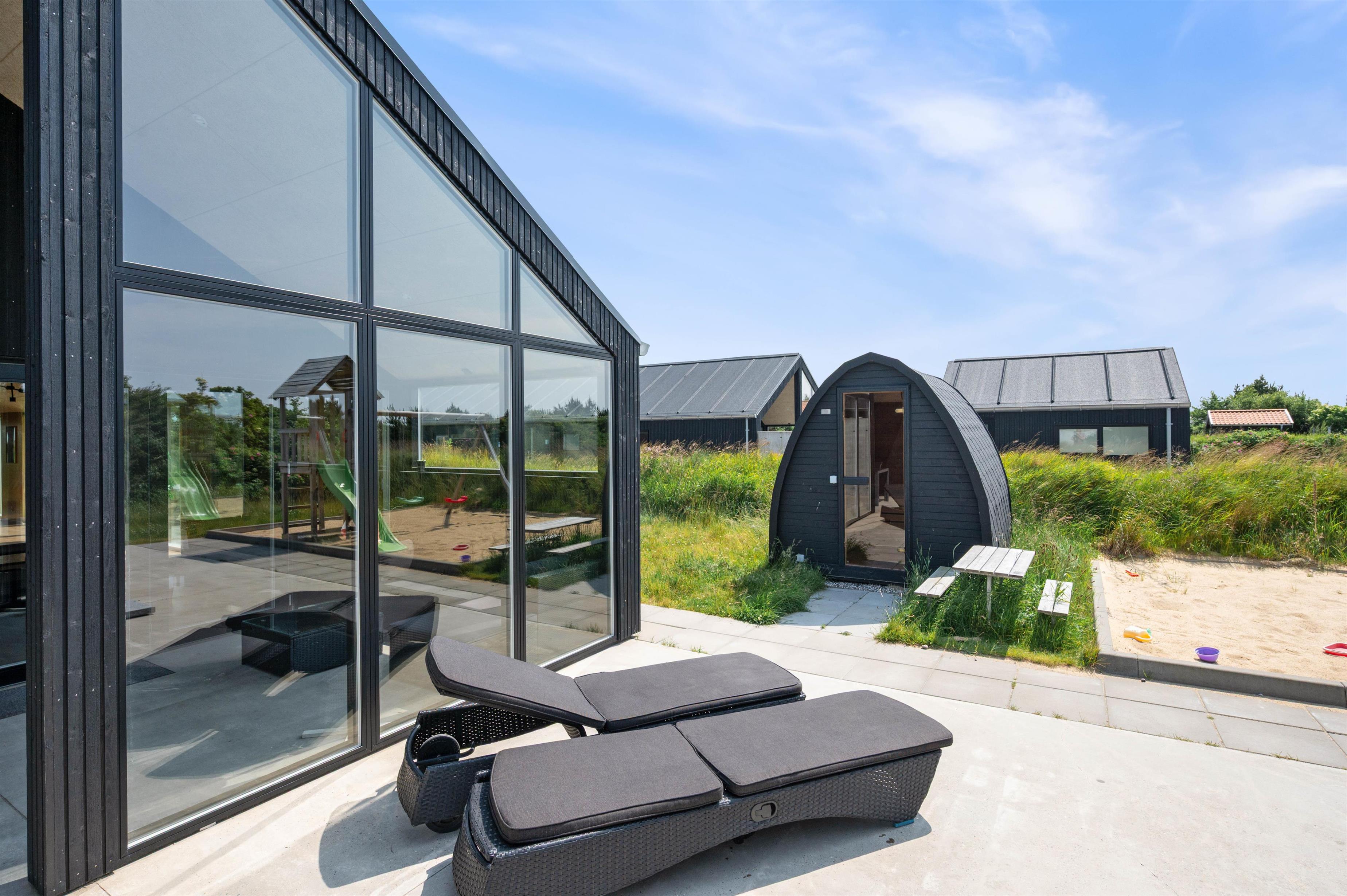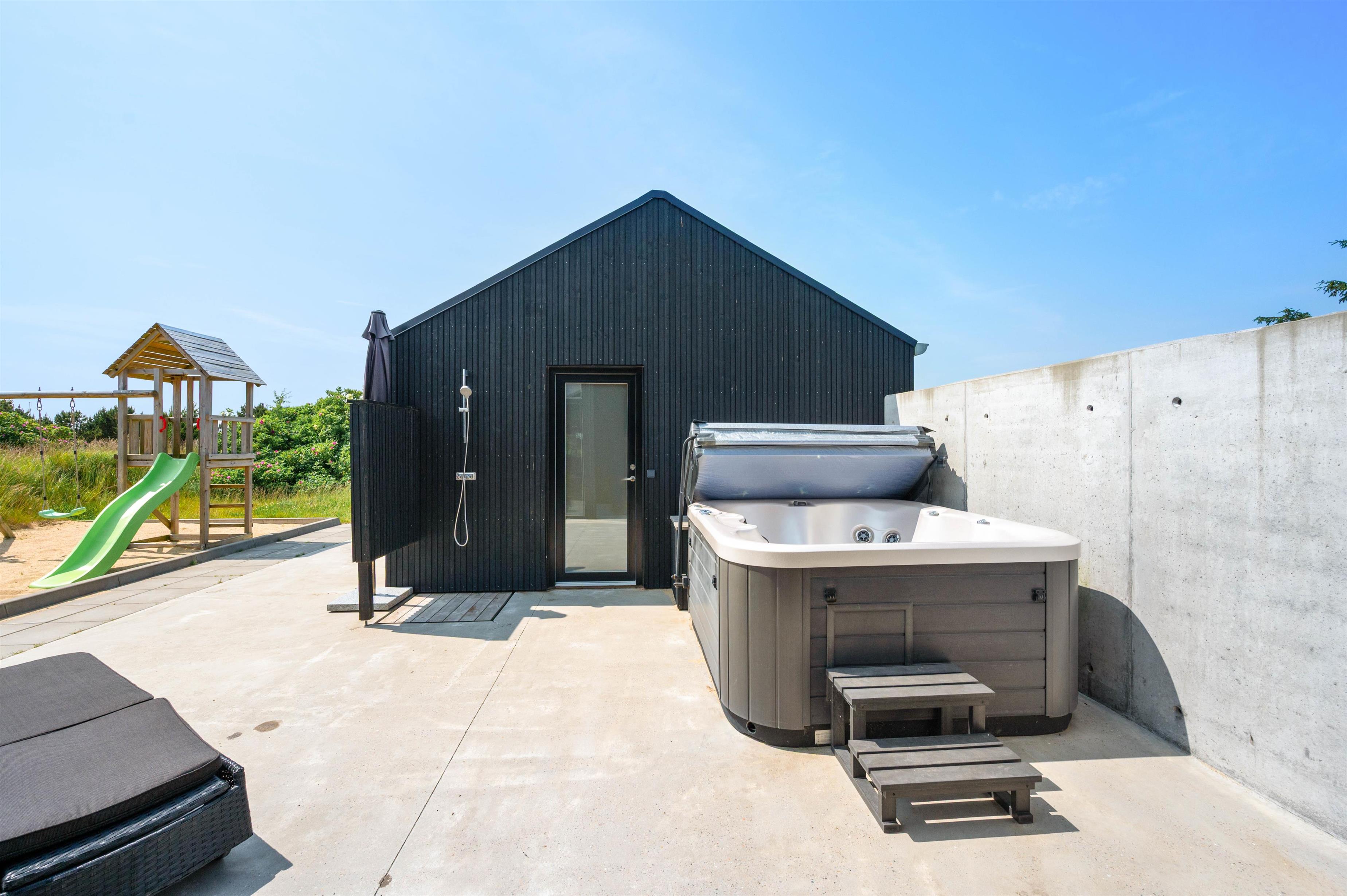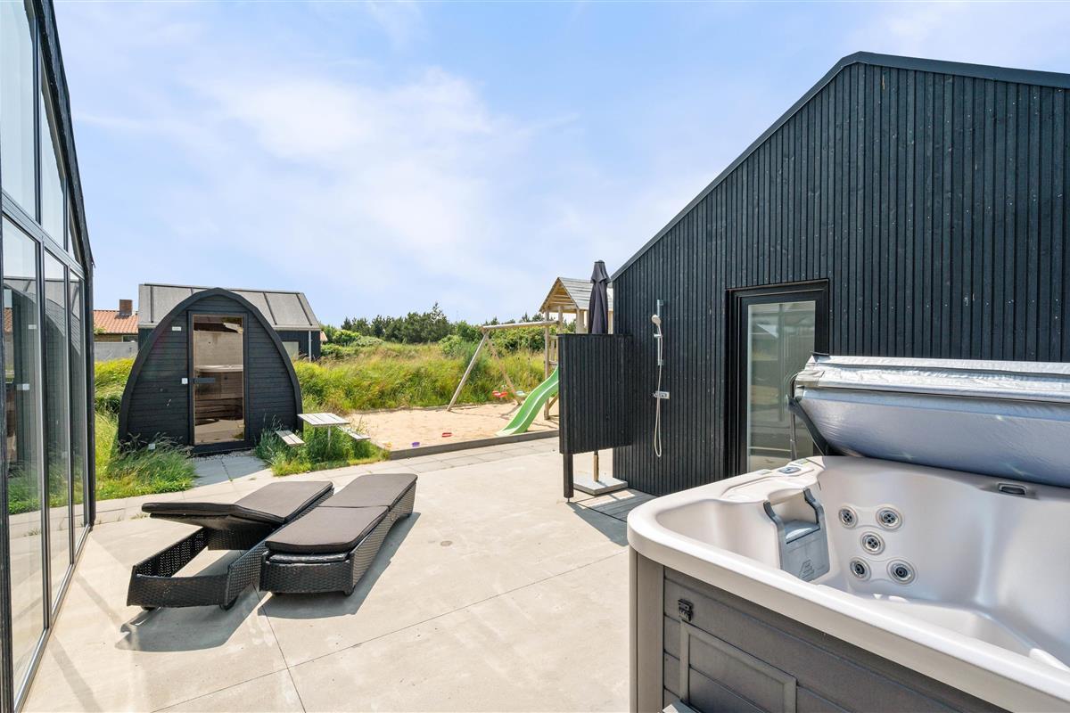 The outdoor hot tub is also located on the terrace. Relax under the open sky in the bubbling, warm water, regardless of season or weather. Why not plan an evening session in the hot tub, where you can unwind under the starry sky and watch the twinkling stars? Or after a long beach walk, enjoy relaxing in the outdoor sauna. Wellness facilities right on your doorstep.