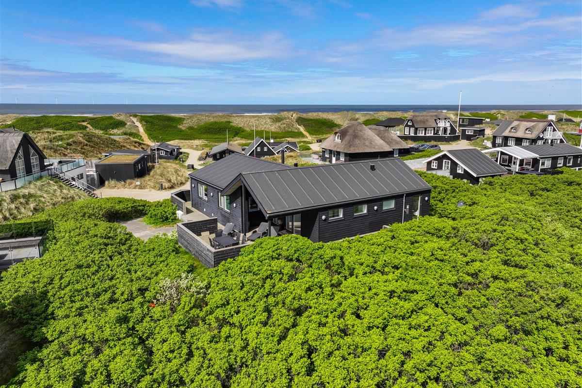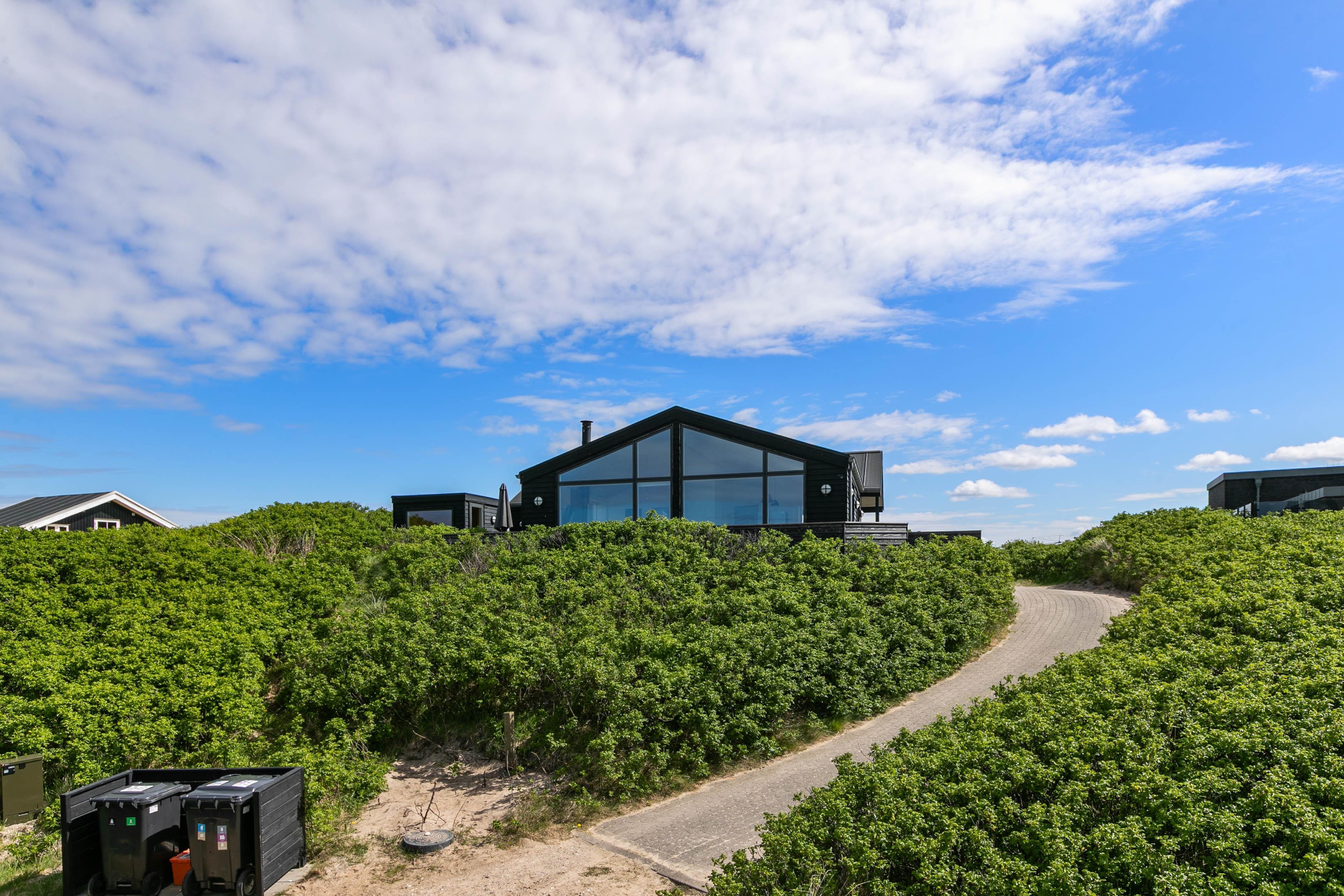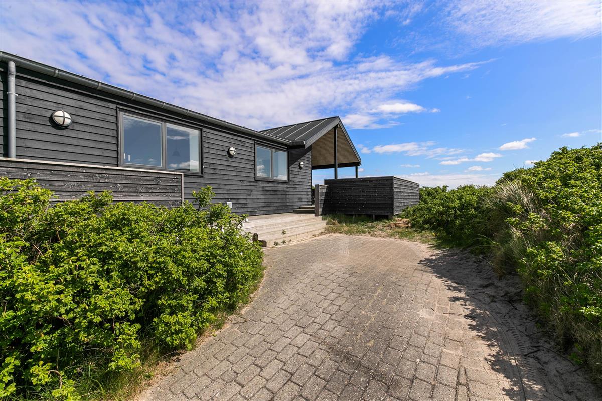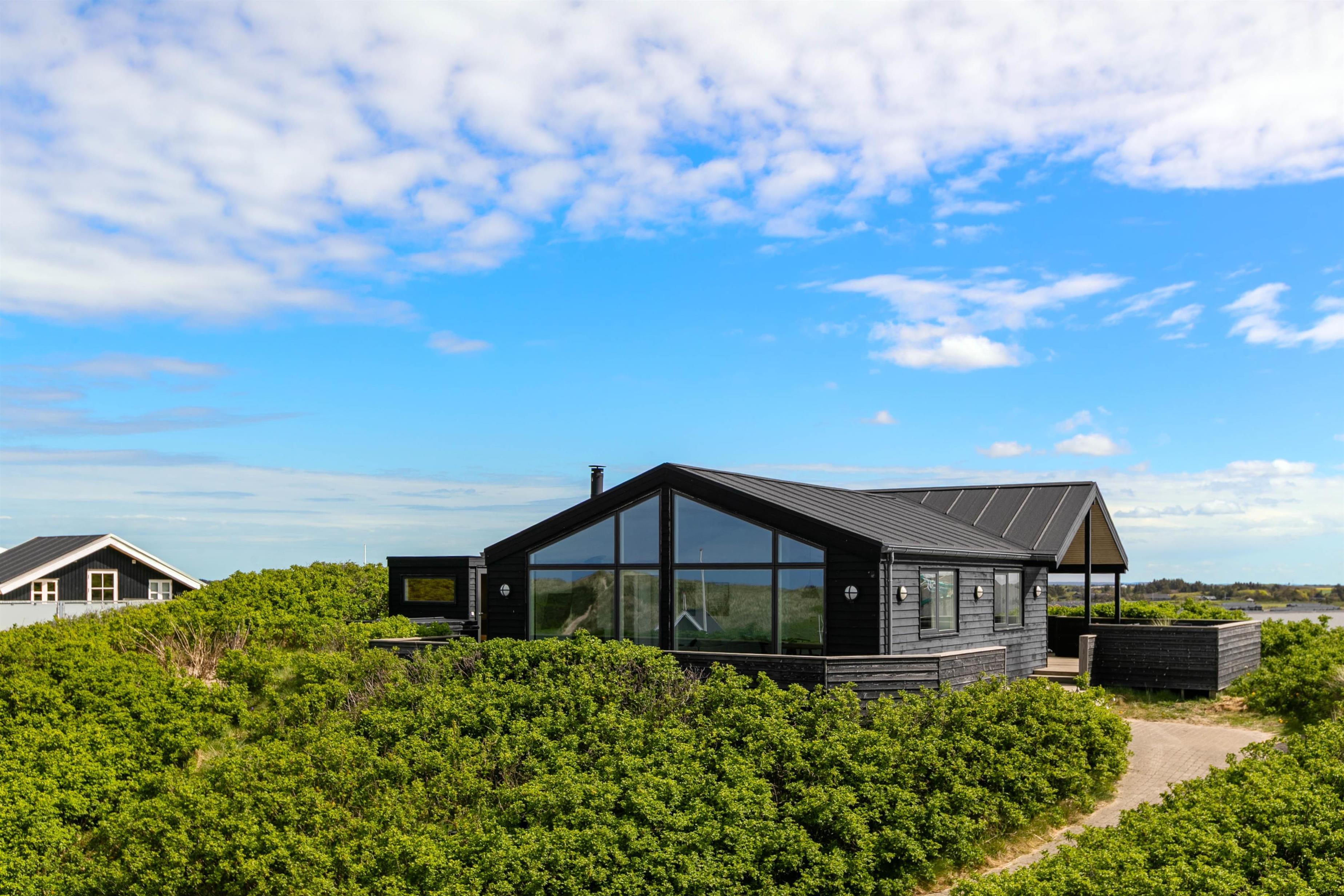 Located at Lodbergsvej 215, just 150 metres from the roaring North Sea, this superb holiday home sits on a magnificent dune plot. The holiday home welcomes you with modern, bright materials and wonderful terraces featuring private wellness facilities. The location is spectacular, offering views of both the dune landscape and the fjord.