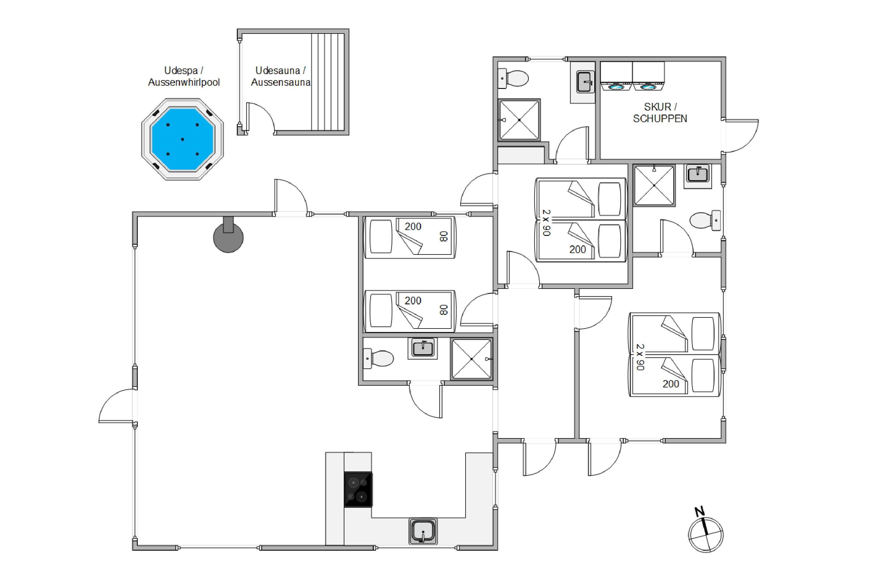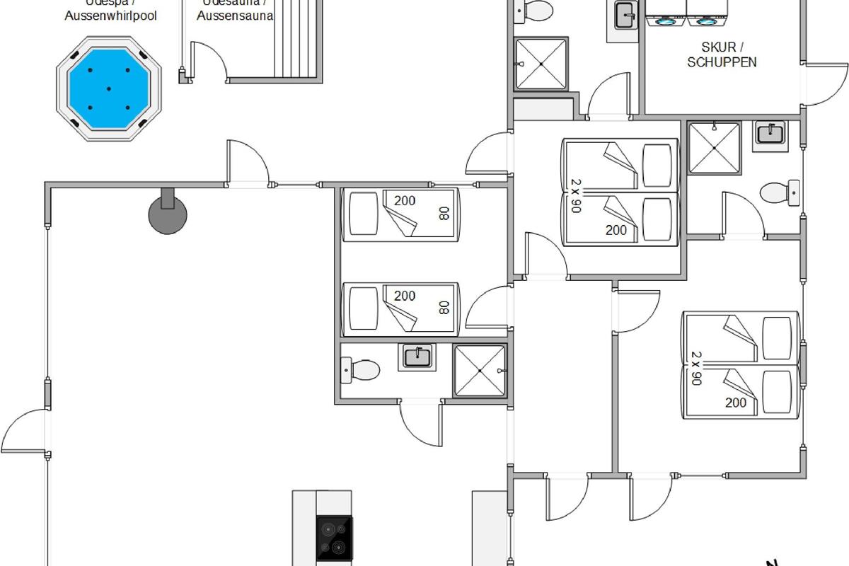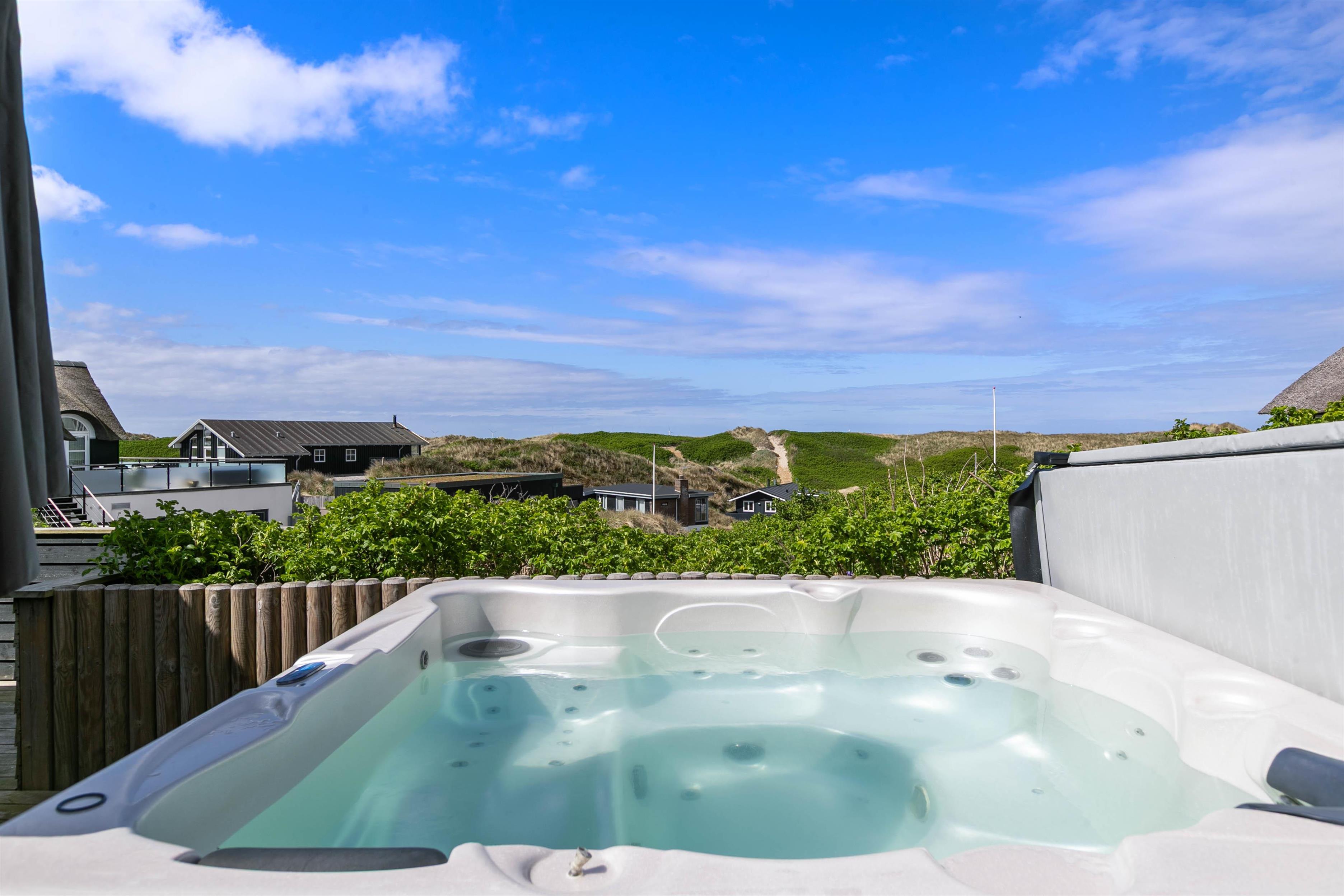 The holiday home features two bathrooms with underfloor heating and one guest toilet. Outside, you'll find your private outdoor sauna and splendid hot tub, both accessible from the bedroom and living area. After a long day in the fresh North Sea air, a relaxing sauna session and an outdoor soak guarantee complete relaxation and rejuvenation.