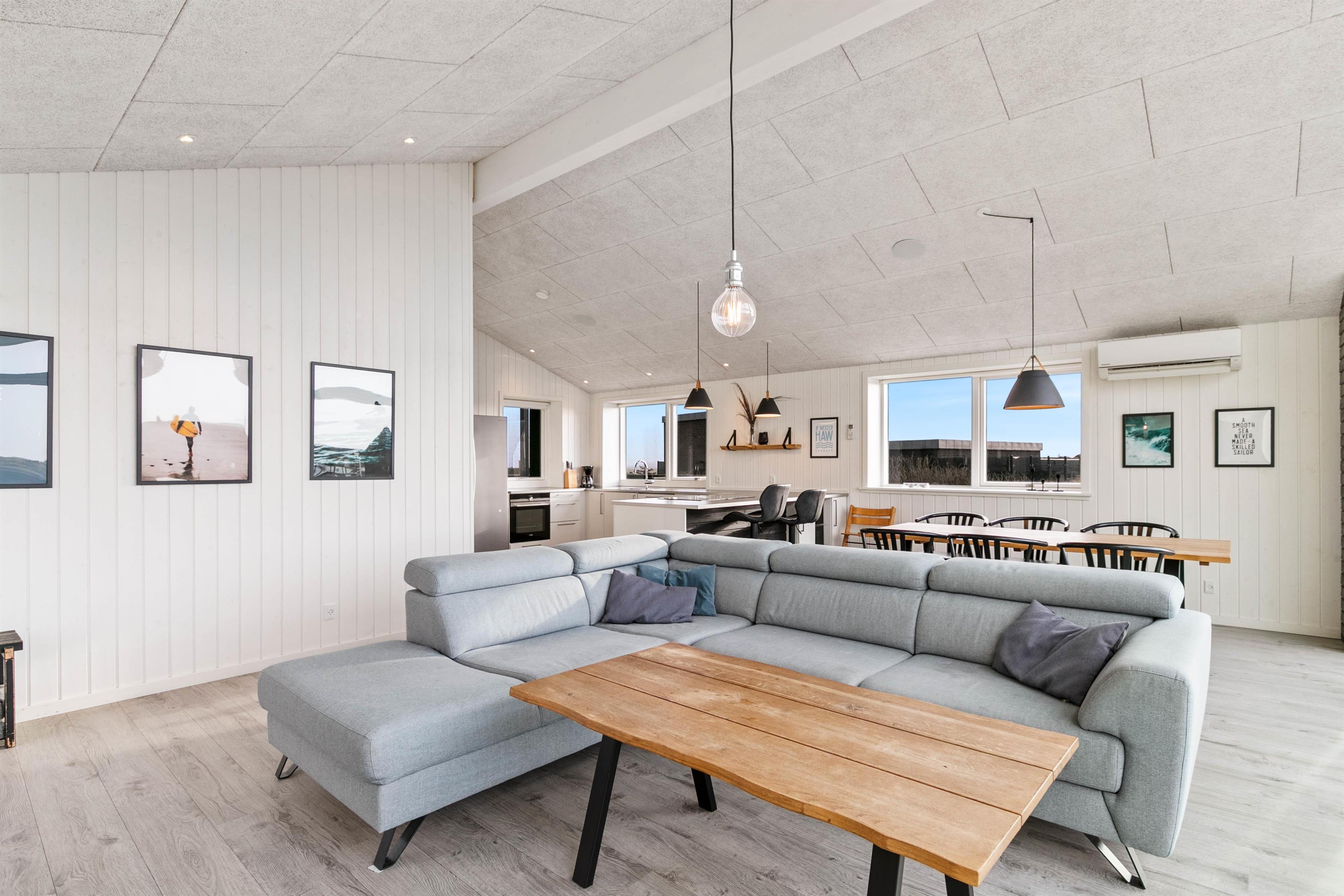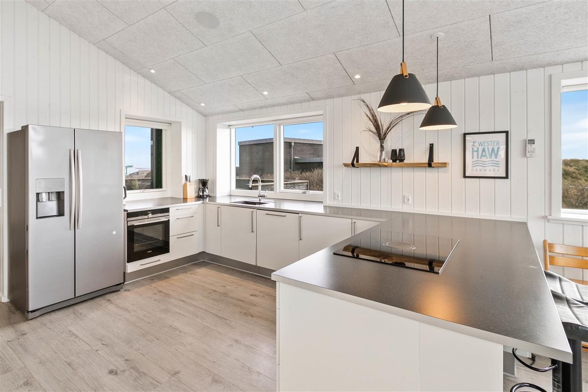 From this magnificent holiday home, you'll enjoy unique views of the North Sea on one side and the fjord on the other. The beautiful, fine sandy beach and the centre of the vibrant holiday resort of Søndervig are just a stone's throw away. Here you can spend an unforgettable holiday with your loved ones.