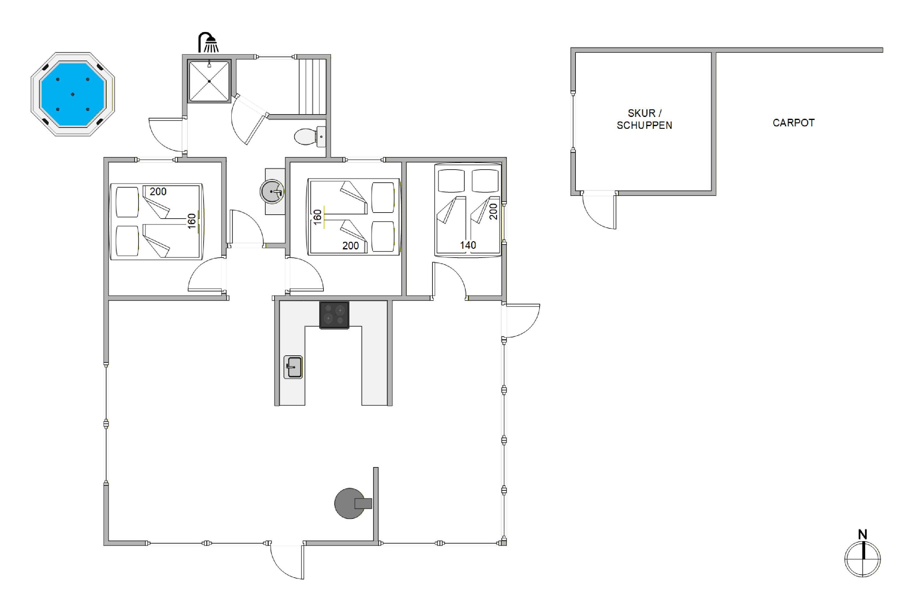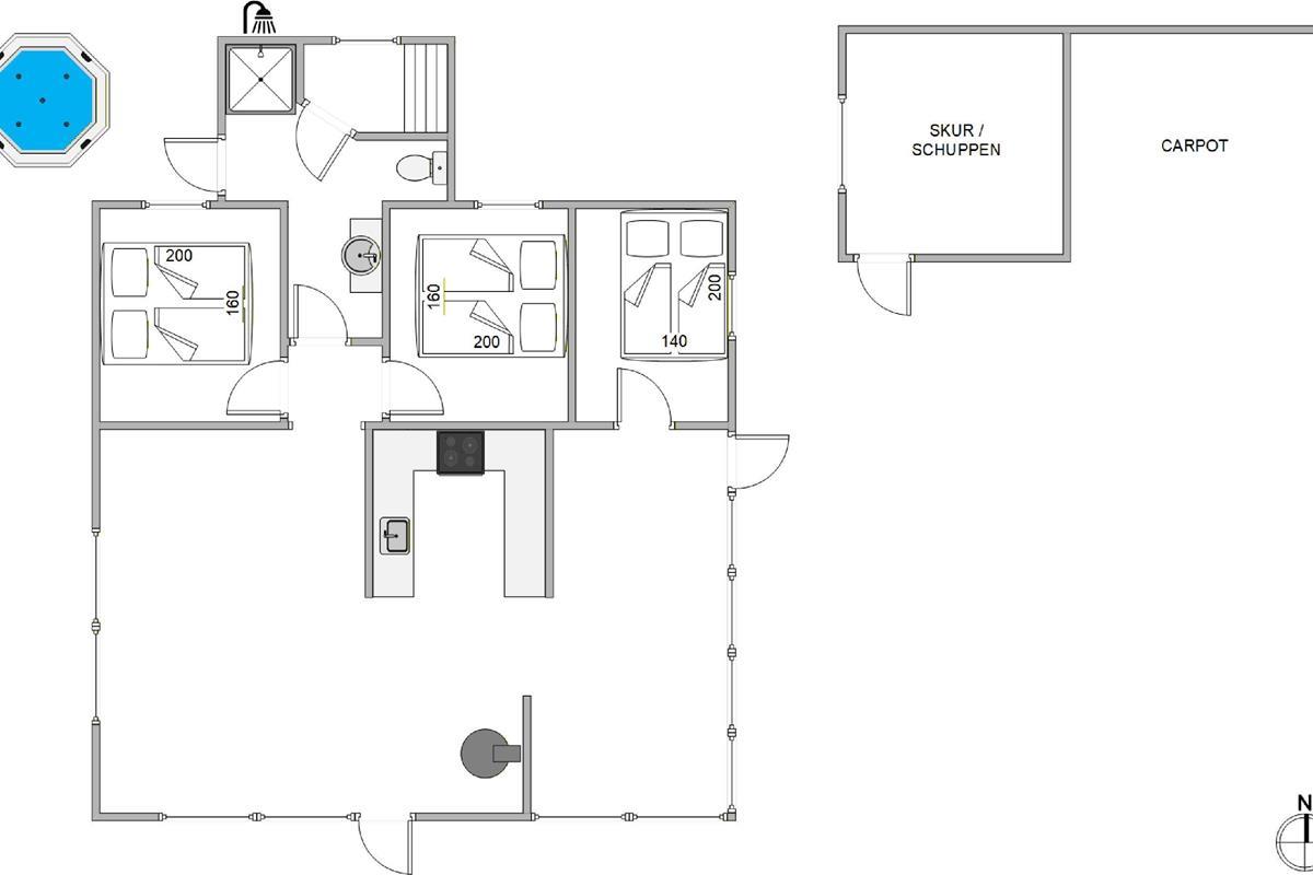 You’re only 280 metres from the ocean, which means spontaneous swims, barefoot strolls, and sunset walks are always within reach. At the same time, daily logistics stay easy with shopping just 1,400 metres away. It is perfect for fresh bread in the morning or a quick restock for the evening. If you’re looking for a holiday home in Søndervig that combines a standout wellness setup with sauna, outdoor spa and with a short walk to the sea, this home delivers the kind of holiday you’ll want to repeat.