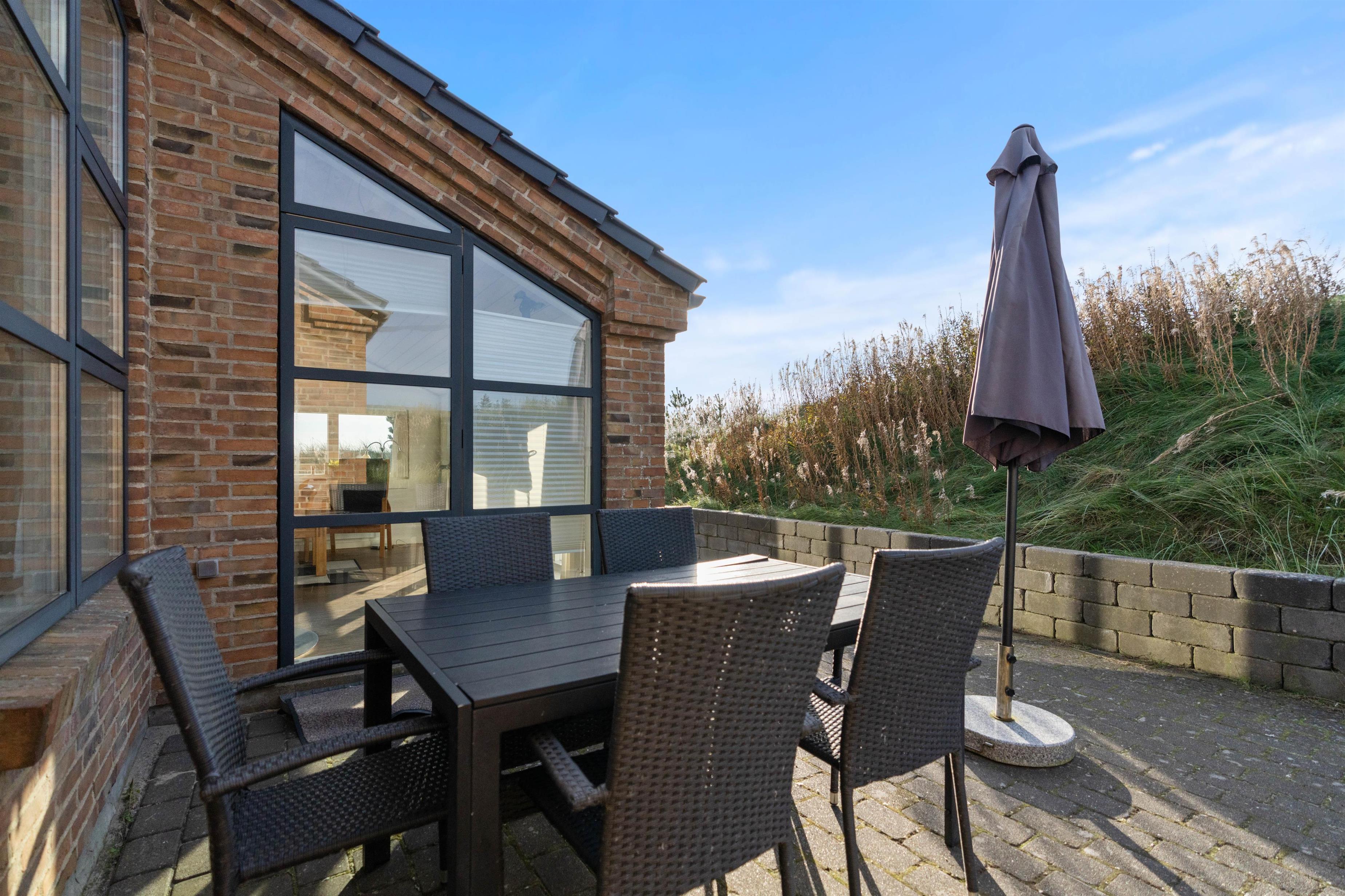 The holiday home features a large south-east facing terrace where you can fully enjoy sunny holiday days. Garden furniture and sun loungers are provided, ensuring you have everything needed for a lovely day in the sun. To round off a day outdoors, you can fire up the barbecue and enjoy a delicious dinner on the terrace.