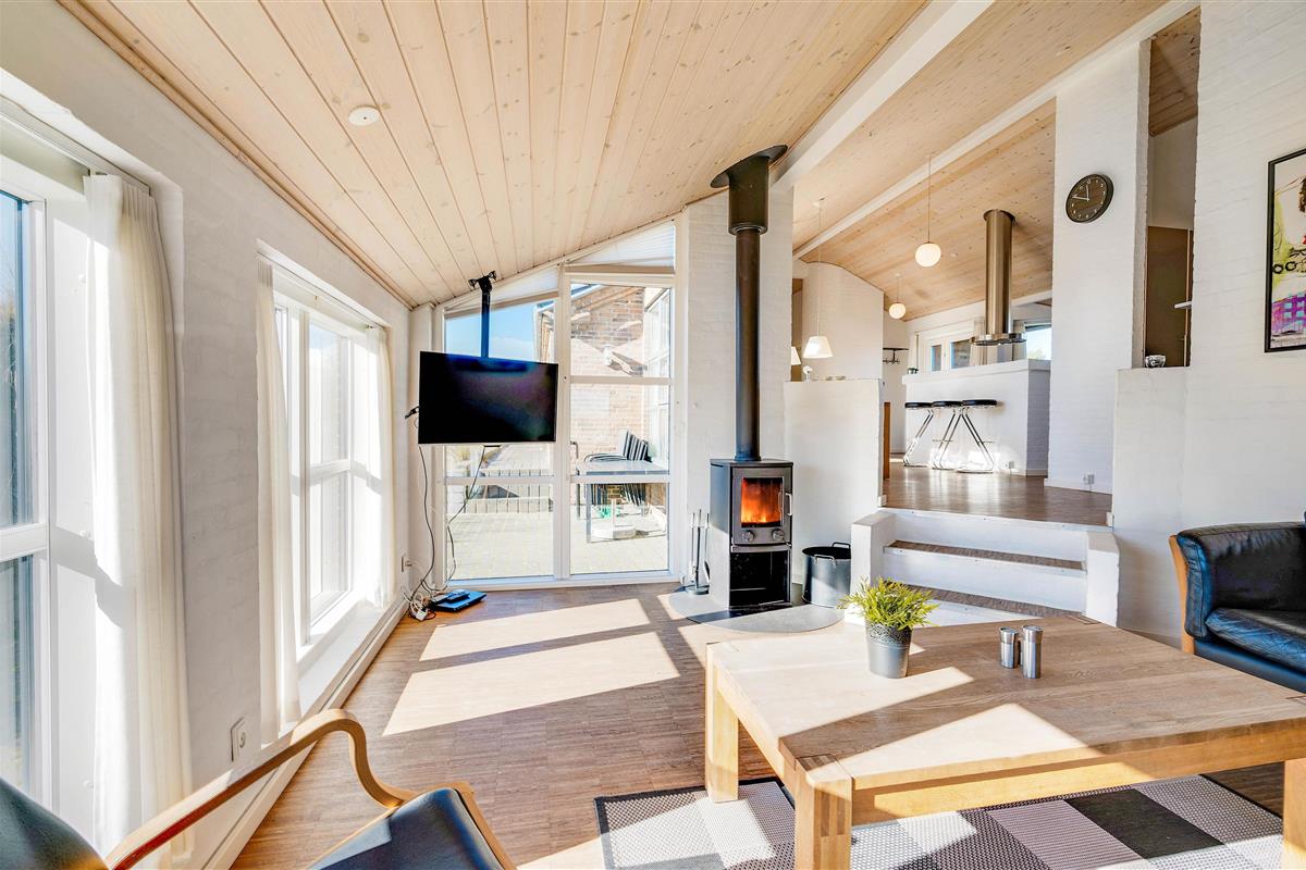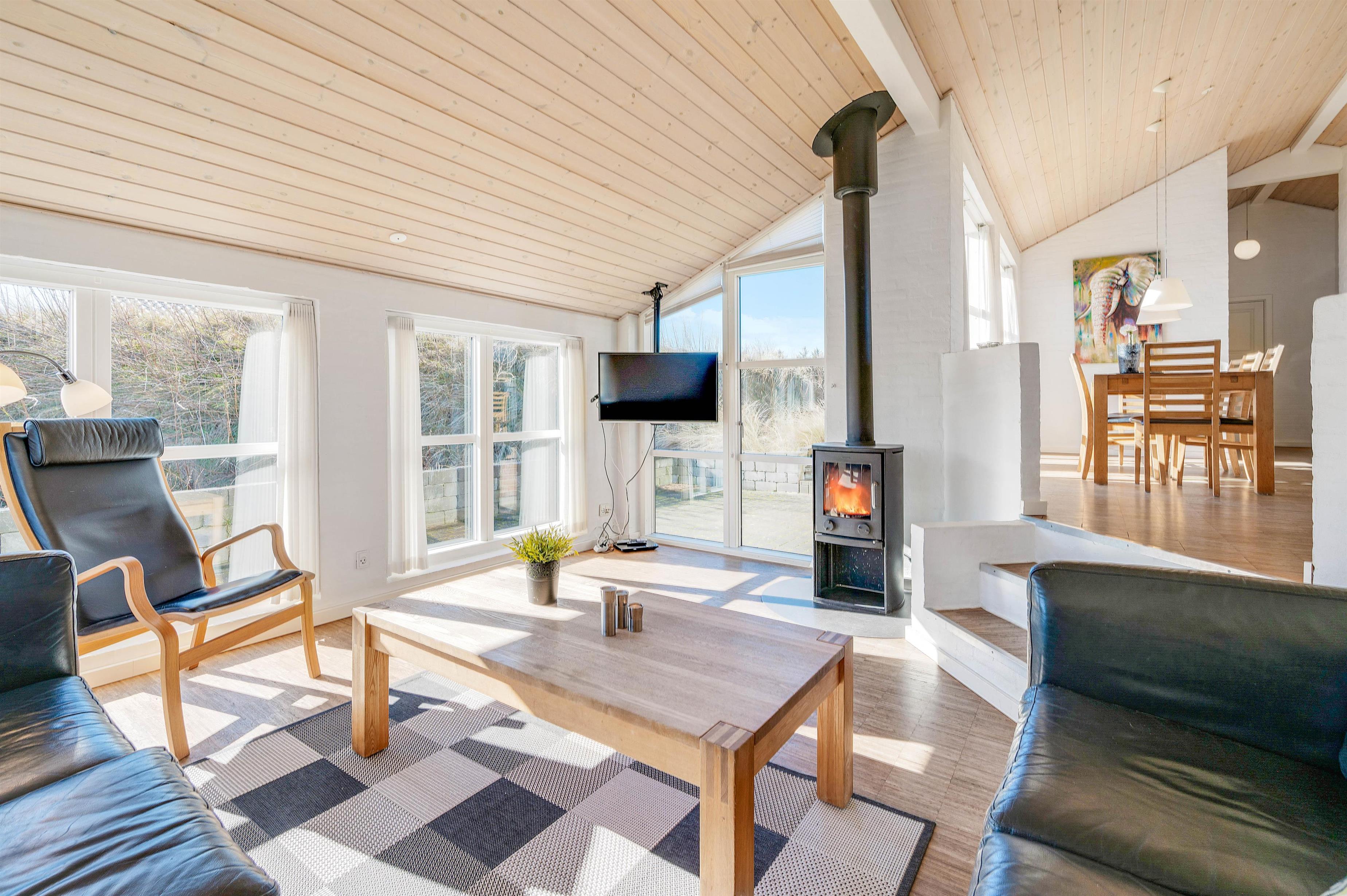 The holiday home offers ample space for all 7 guests with sleeping arrangements across 4 bedrooms. The living room is the perfect spot for cosy holiday moments. Here you can gather on the sofas to watch a good film or play games together. The wood-burning stove provides wonderful warmth and creates that typical holiday home atmosphere.
