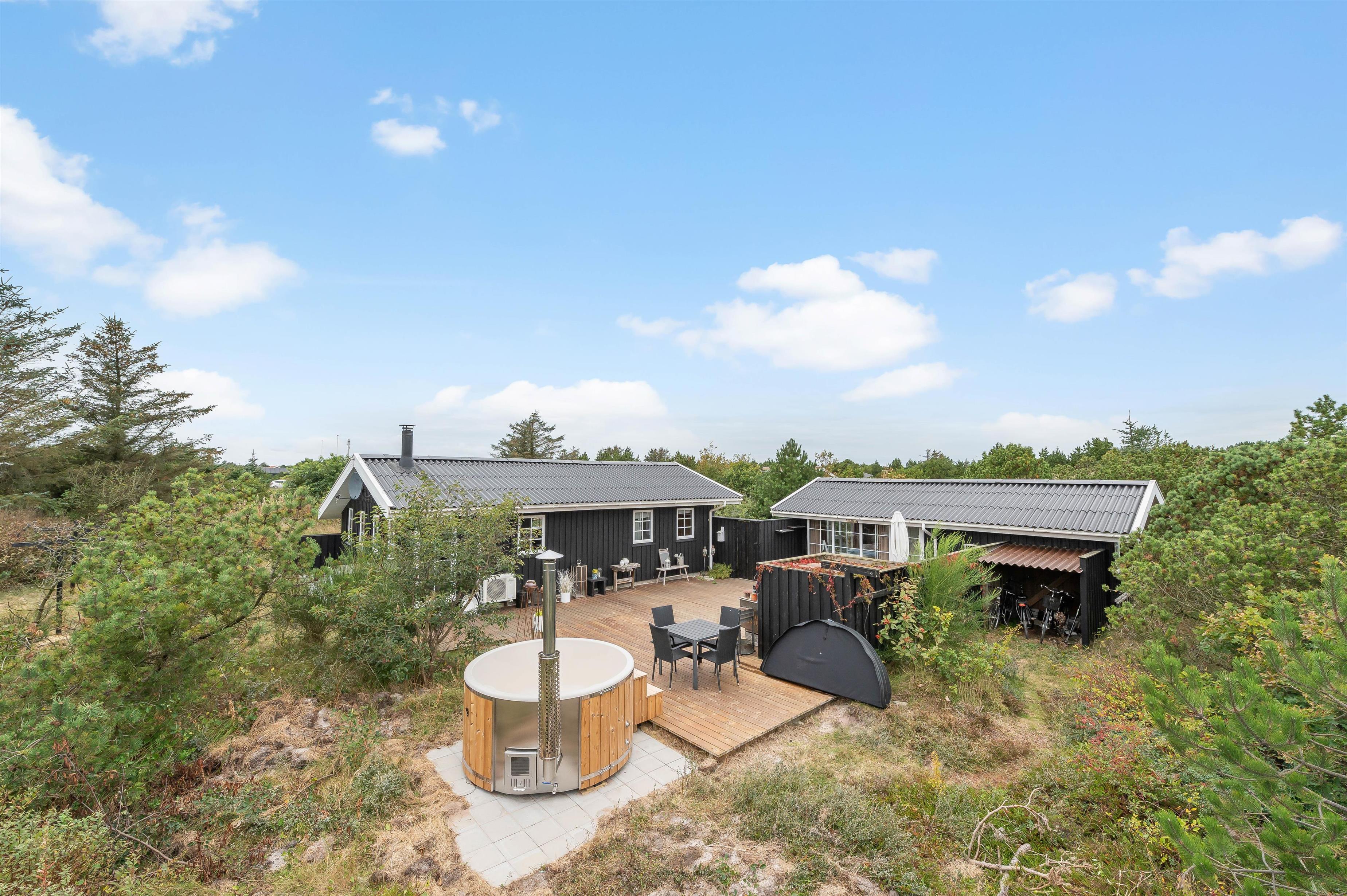 This well-maintained, charming wooden house, furnished with attention to detail, awaits you in a peaceful, secluded corner at P. Snejkers Vej 19. Here you can rent a holiday home that accommodates up to 6 people. The holiday home in Søndervig is conveniently located near the seaside resort of Søndervig and the small harbour town of Hvide Sande, where you'll find shopping and leisure facilities. The beach and North Sea are within walking distance. A lovely, spacious terrace with hot tub is available for sunny days outdoors, and your dog is warmly welcome here.