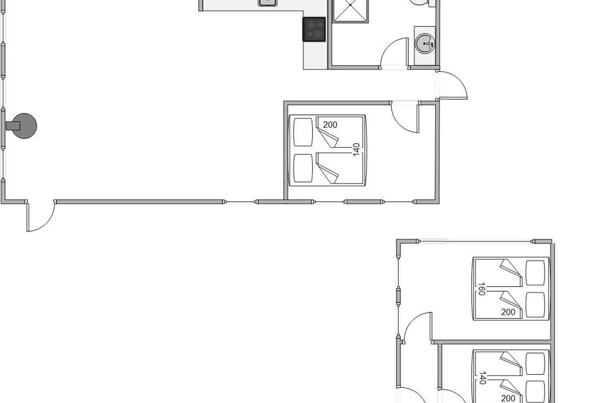 The attractive kitchen-living area comes equipped with a fridge (20-litre freezer compartment), microwave and dishwasher. The main house has two bedrooms, one with a double bed and one with a sofa bed. Two additional bedrooms and a separate bathroom are located in the spacious annexe. The bathroom in the main house features underfloor heating, while the bathroom in the annexe does not.