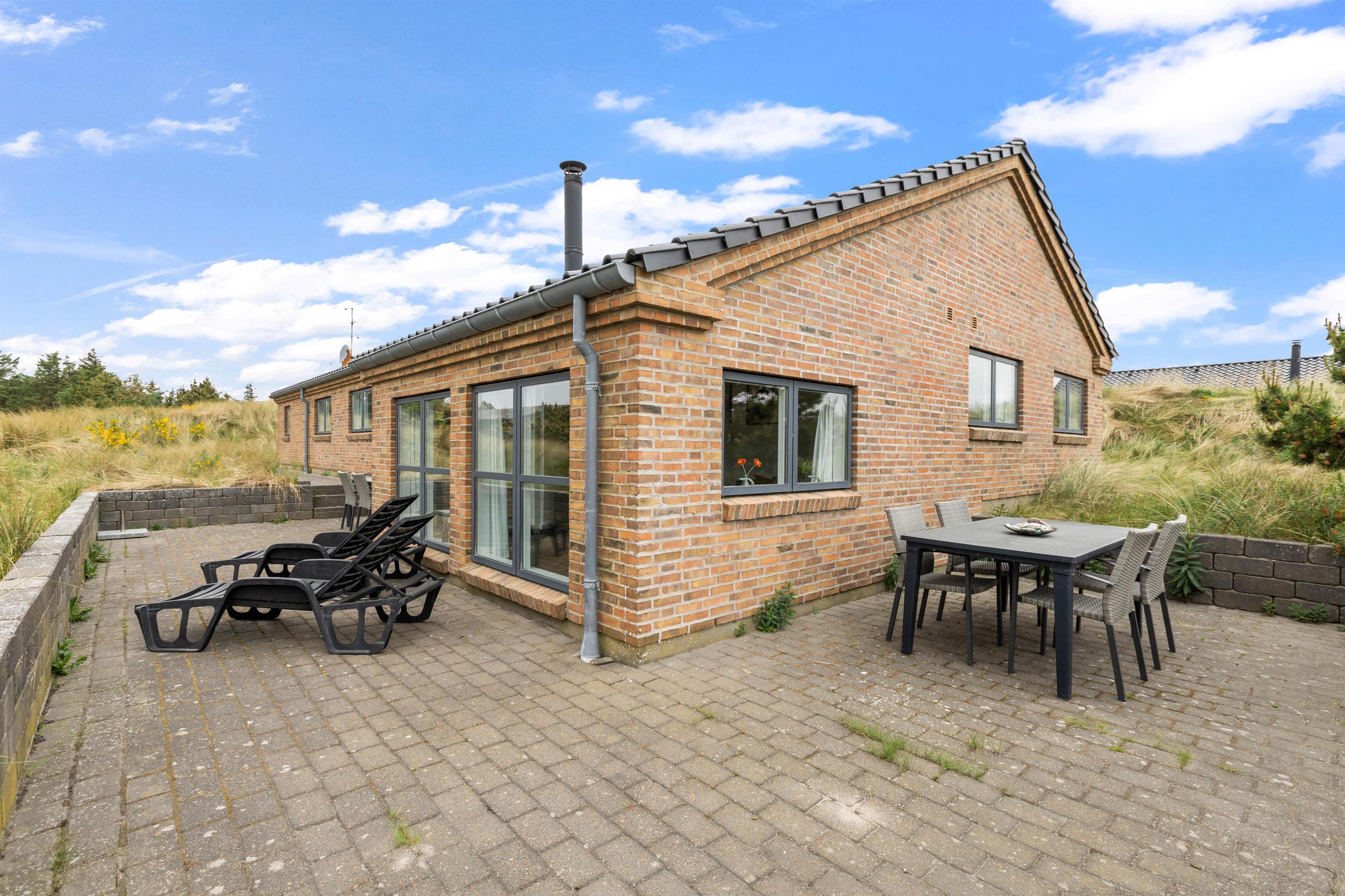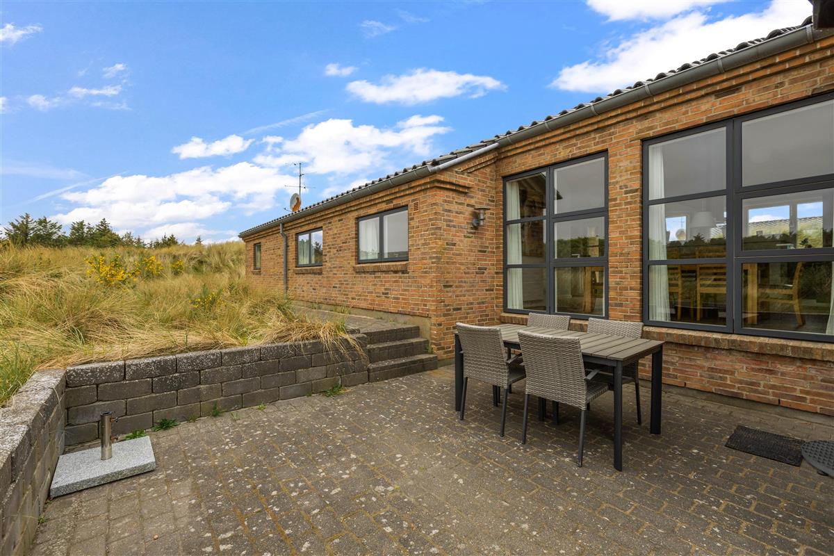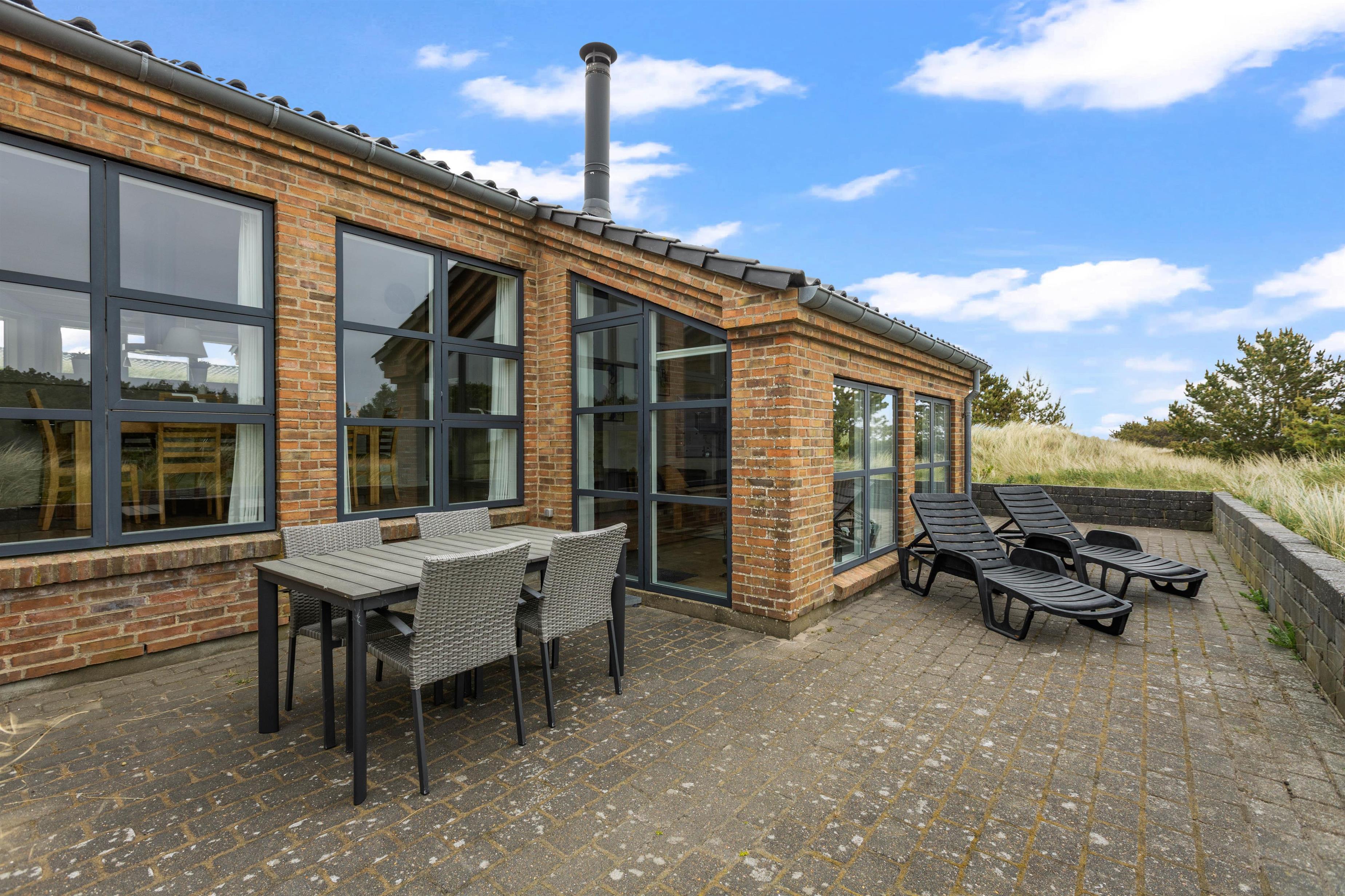 An exceptional holiday home built from stone and premium materials. It is beautifully furnished in a classic, timeless style. From the sunken living room, you'll enjoy impressive views across Ringkøbing Fjord.