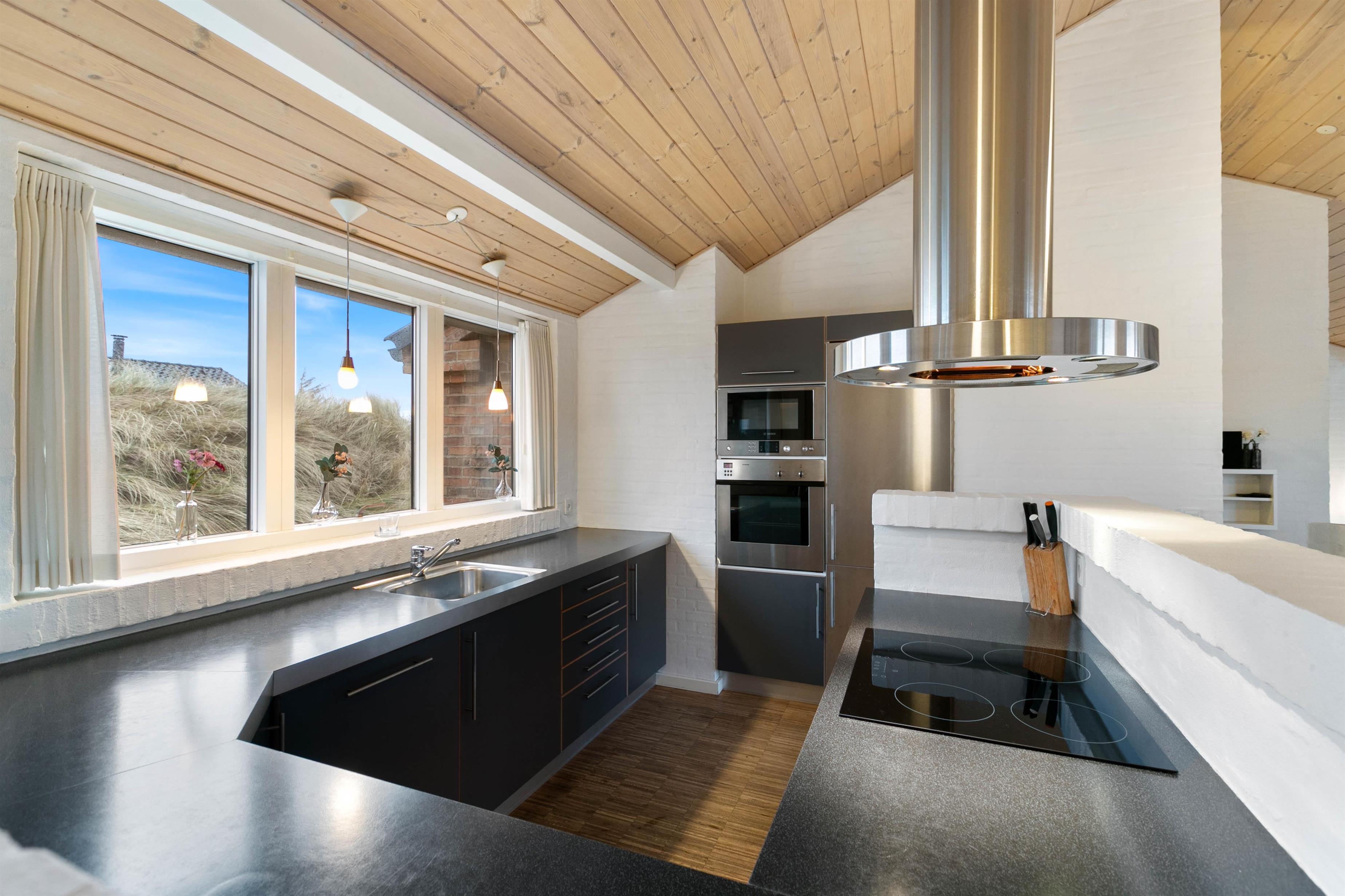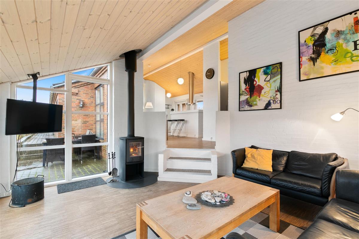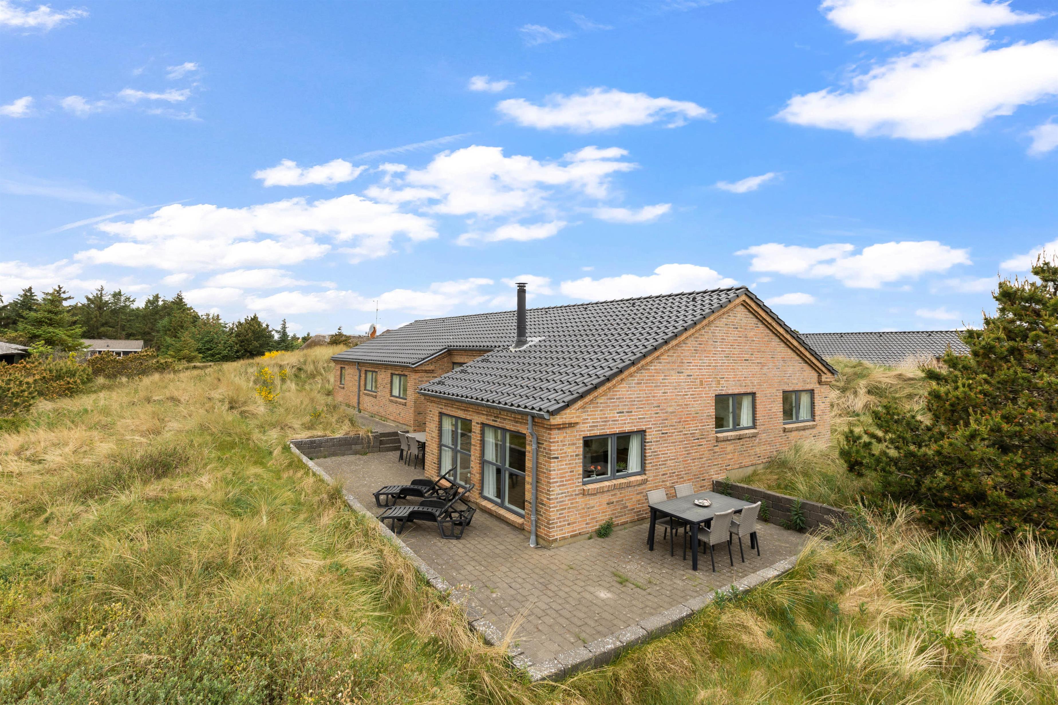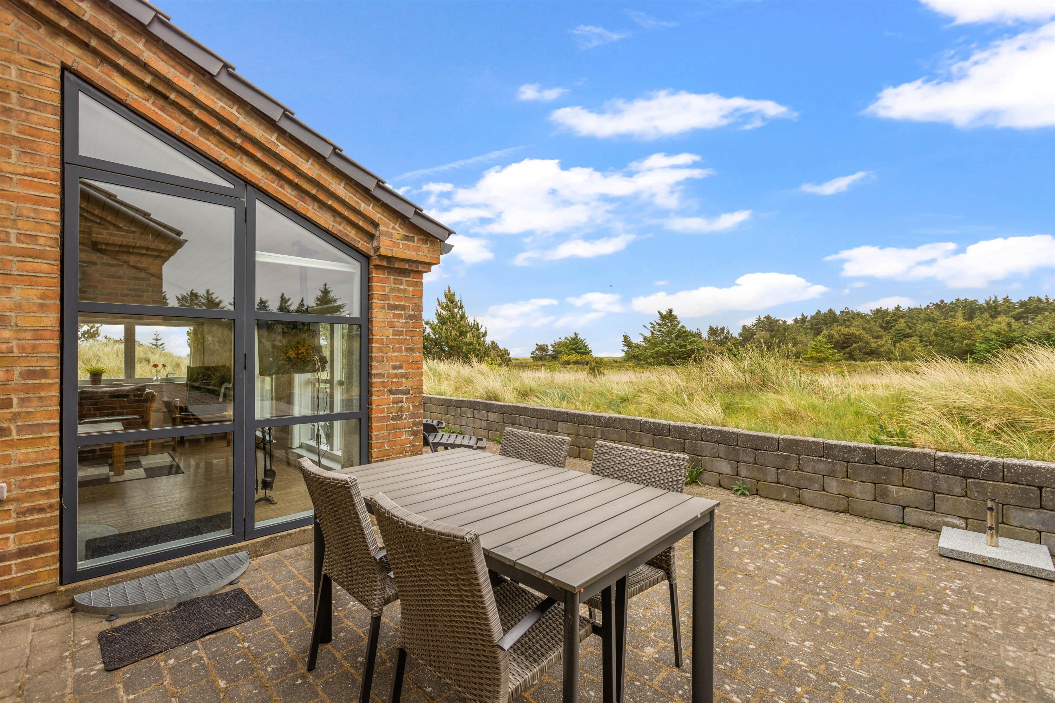 An exceptional holiday home built from stone and premium materials. It is beautifully furnished in a classic, timeless style. From the sunken living room, you'll enjoy impressive views across Ringkøbing Fjord.