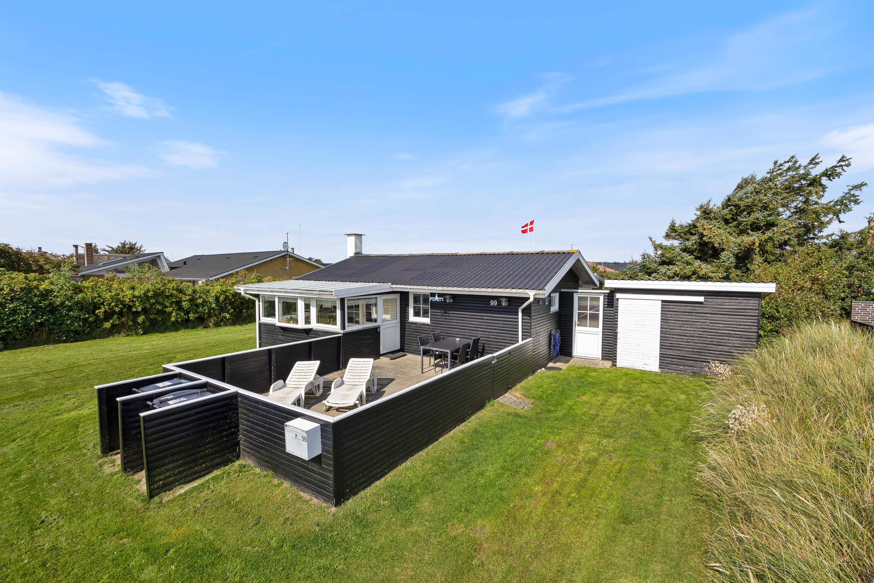 Located at Nordsøvej 99 in Søndervig, this charming holiday home awaits to provide a beautiful setting for your holiday. The bright holiday home features a modern kitchen, an energy-efficient air-to-air heat pump, two enclosed terraces and is situated just 600 metres from the beach.
