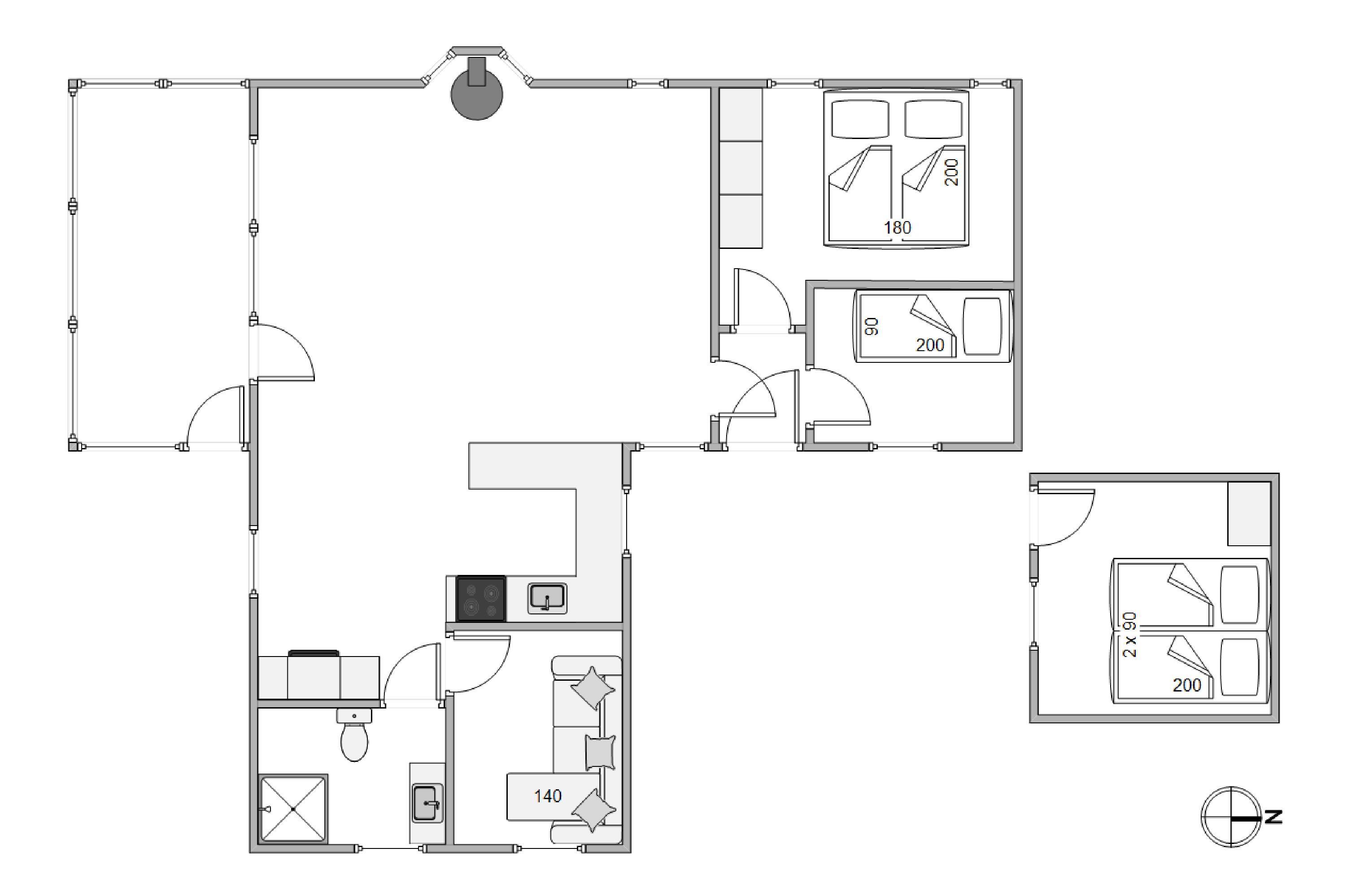 The holiday home accommodates up to 4 people and one dog. Please note that one of the four bedrooms is located in an annexe. The holiday home features one bathroom equipped with underfloor heating, ensuring no cold feet in the morning.