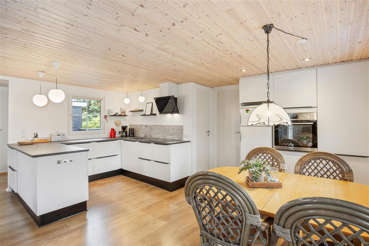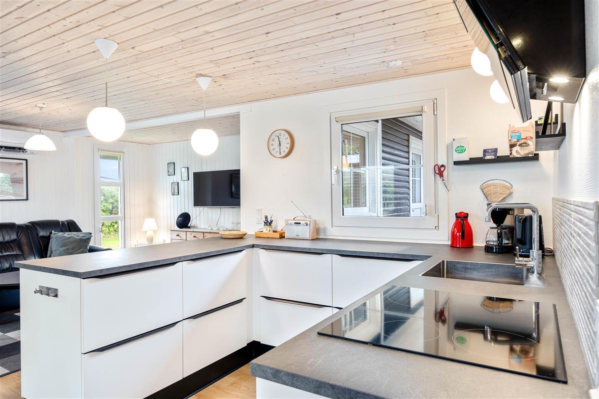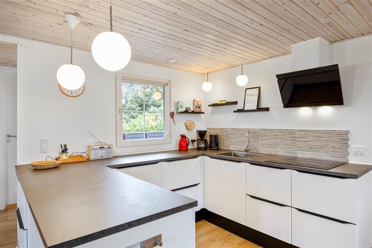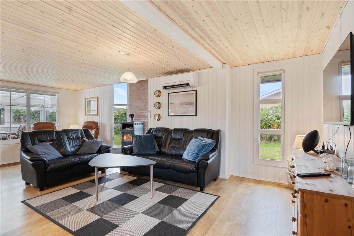 Upon arrival, you'll find bright, typically Danish furnishings. The open-plan living concept ensures plenty of quality time together. Whether you're cooking together or enjoying fun game nights, you're sure to cherish your time here. When the weather turns cooler, you can extend summer in the conservatory. Alternatively, light up the wood-burning stove for that perfect holiday home atmosphere. An energy-efficient air-to-air heat pump maintains a pleasant and consistent room temperature.