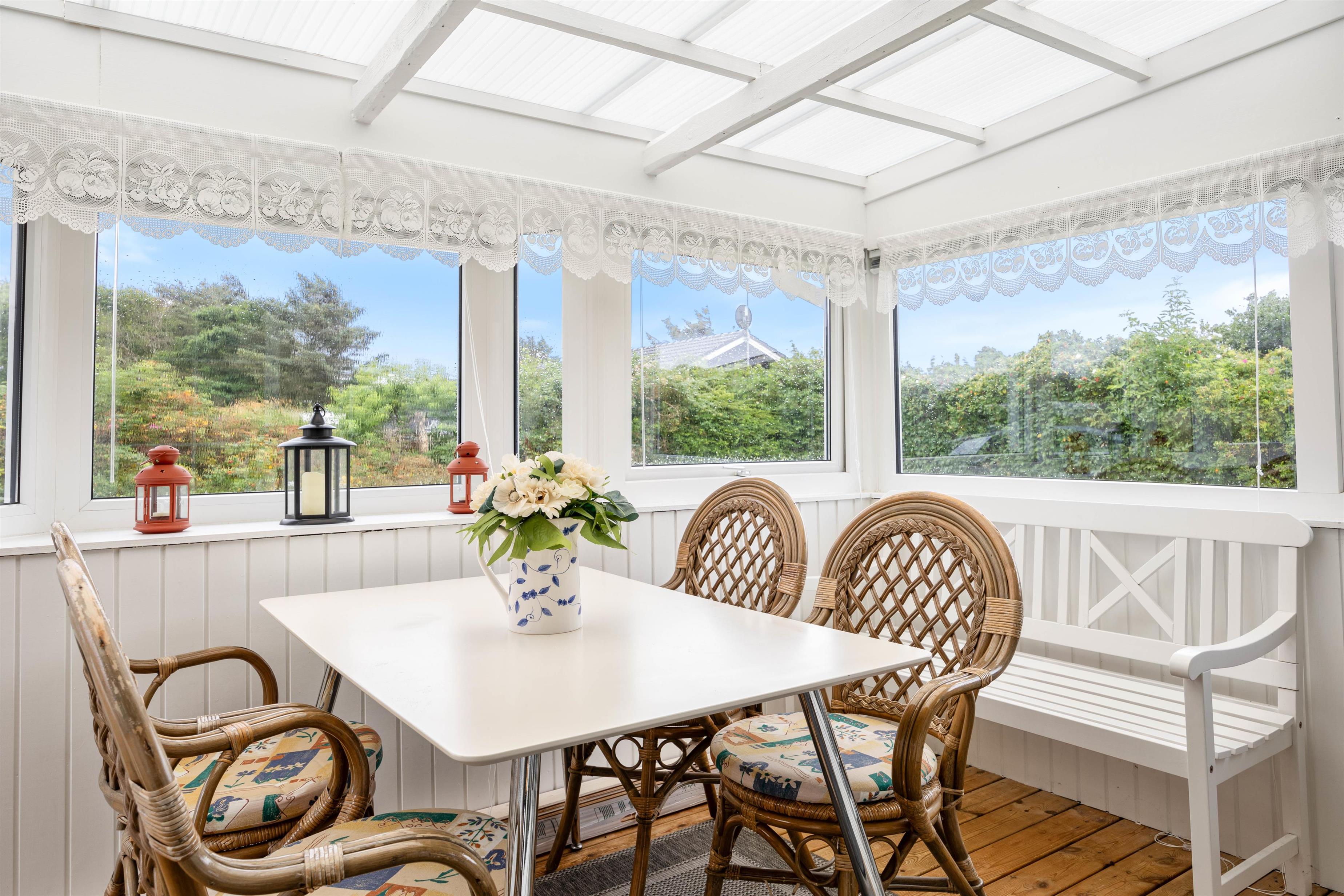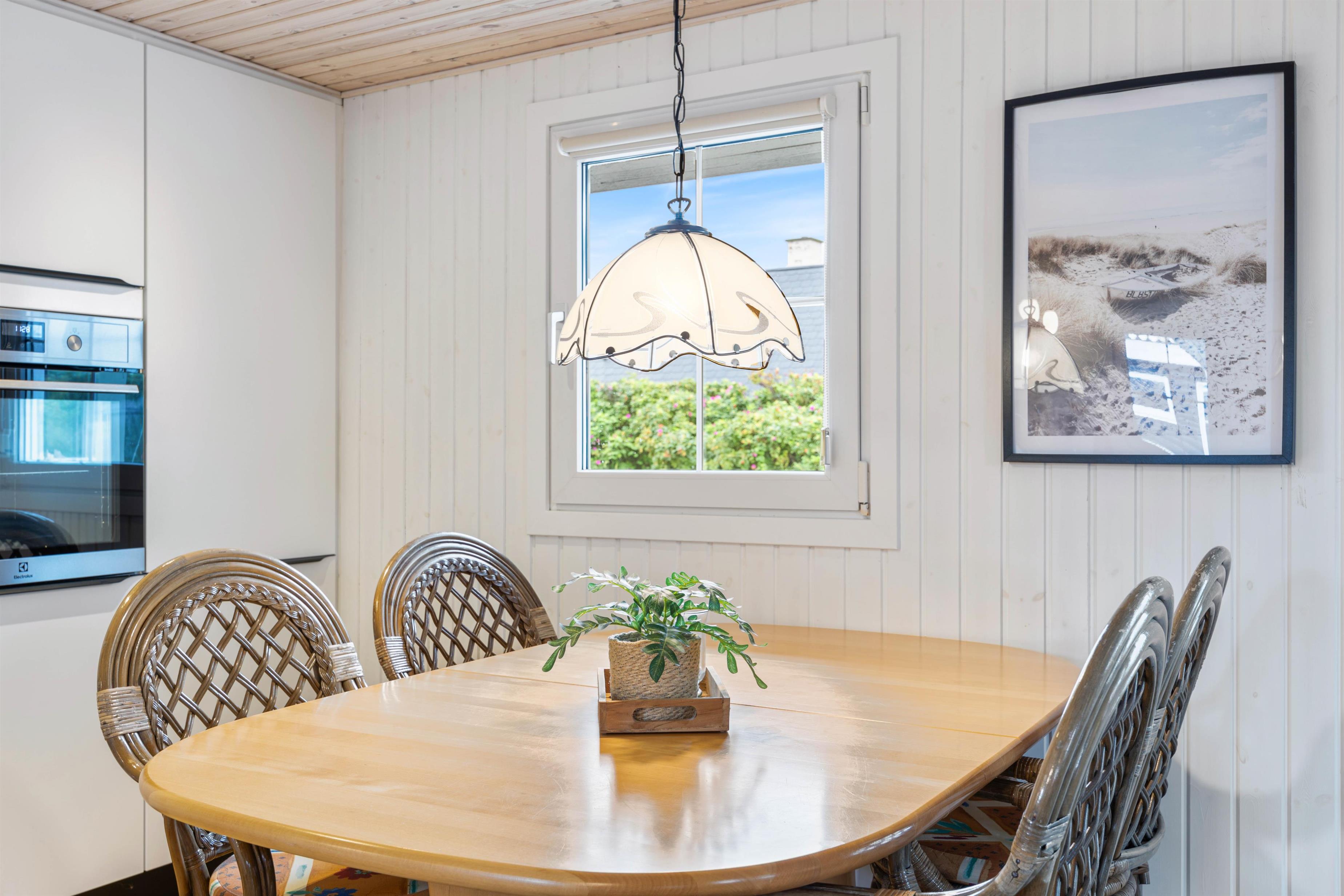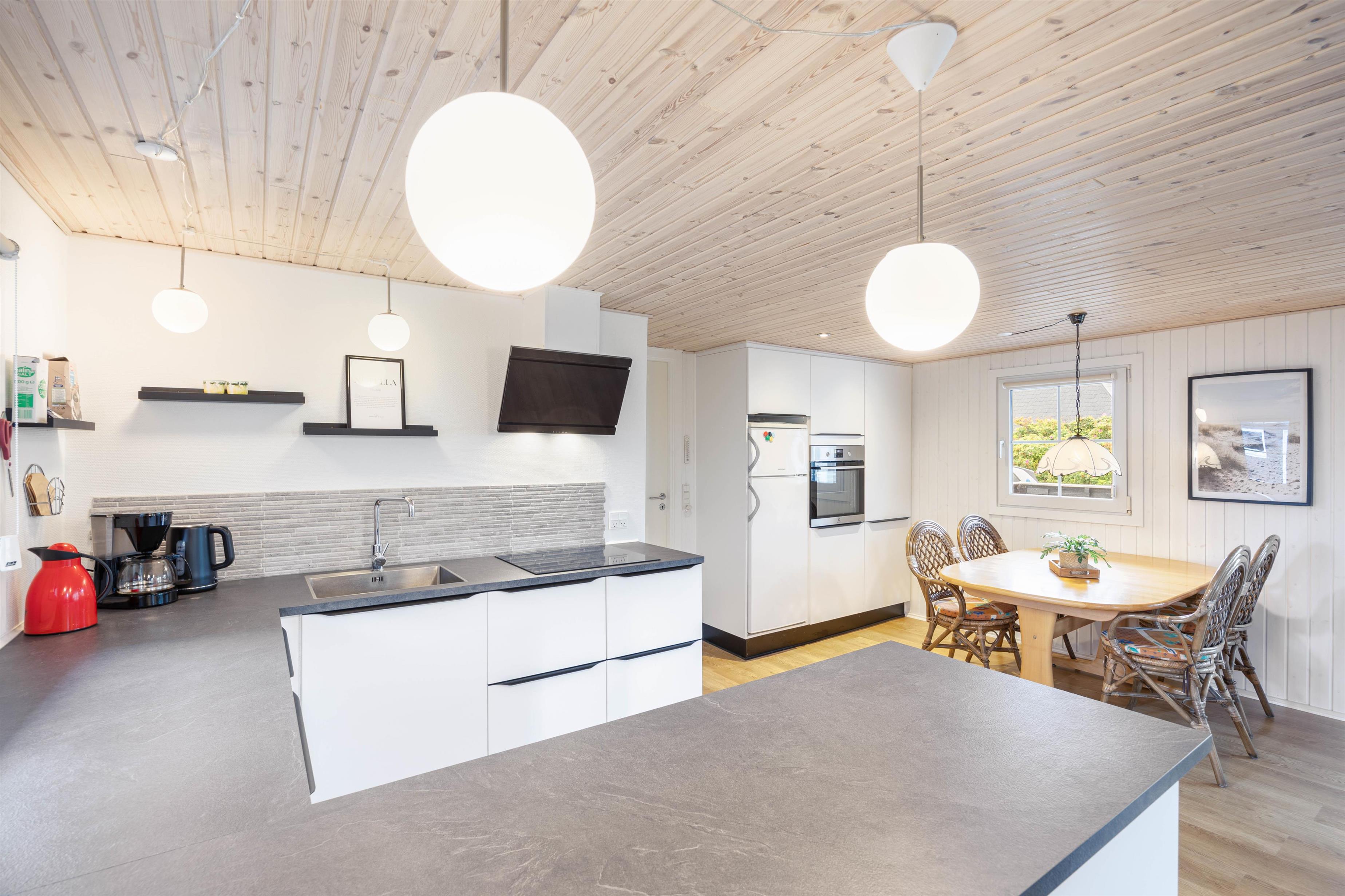 Upon arrival, you'll find bright, typically Danish furnishings. The open-plan living concept ensures plenty of quality time together. Whether you're cooking together or enjoying fun game nights, you're sure to cherish your time here. When the weather turns cooler, you can extend summer in the conservatory. Alternatively, light up the wood-burning stove for that perfect holiday home atmosphere. An energy-efficient air-to-air heat pump maintains a pleasant and consistent room temperature.