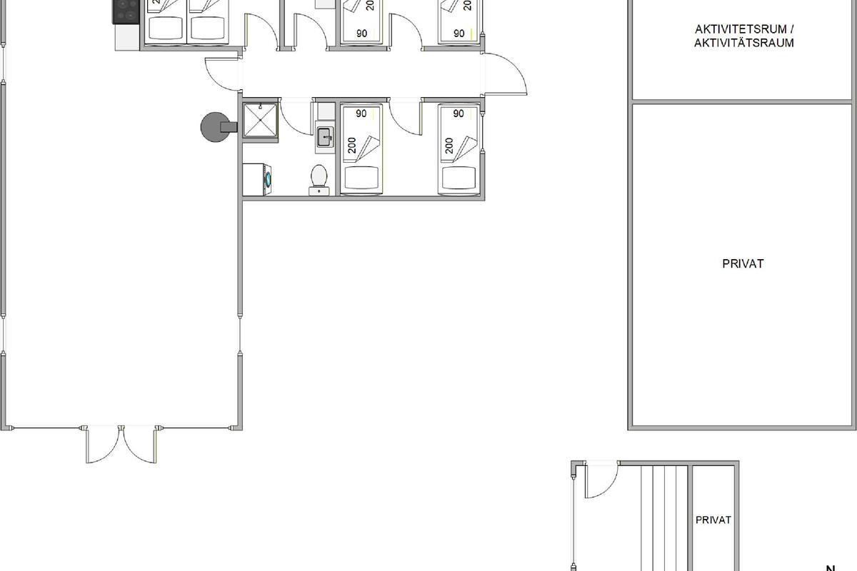 The Søndervig holiday home has three bedrooms ensuring restful nights. Each bedroom is furnished with two comfortable single beds, providing everyone with their own personal space. The bathroom features not only a shower but also underfloor heating, offering welcome warmth on chilly days. A washing machine is available for longer stays.