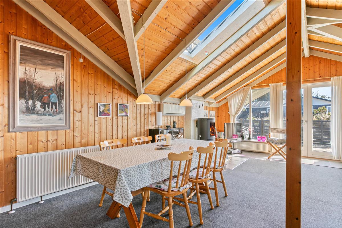 A cosy, well-maintained holiday home with an enclosed terrace, just 400 metres from the sea. The holiday home sits on a large natural plot where heather blooms beautifully at summer's end. An energy-efficient heat pump has been installed, which can serve as air conditioning in summer. The wood-burning stove completes the typical Danish holiday home feel.