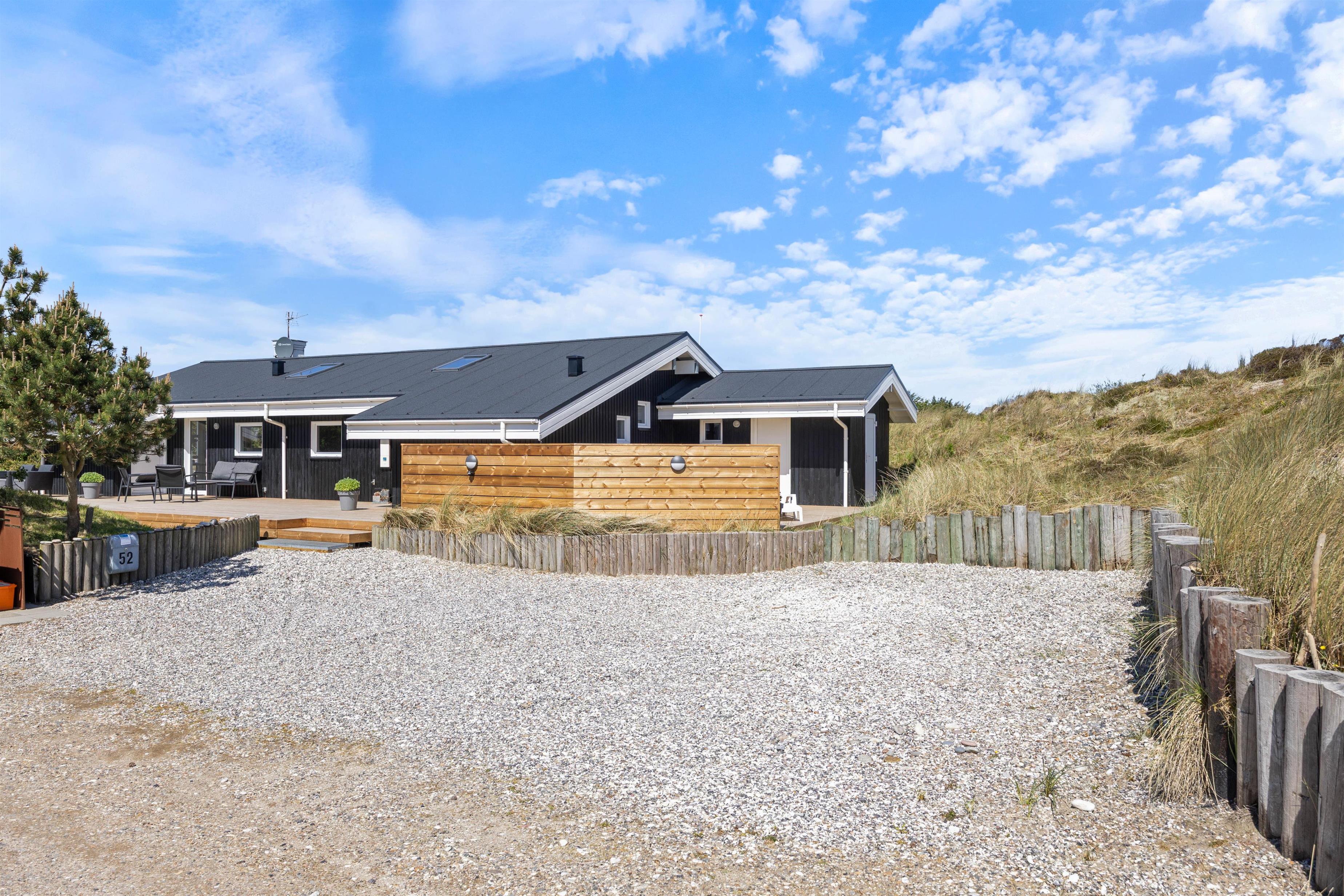 Welcome to Marehalmen 52 - the perfect location for your next holiday, whether travelling as a family or with a group of friends. The holiday home sits on a natural plot surrounded by dune grass, spans 110 square metres and accommodates up to 6 people. The location is superb, just 300 metres from the sea and endless beach walks. Listen to the waves whilst relaxing on the terrace, or unwind in the sauna and hot tub, enjoying the cosy Danish 'hygge' atmosphere by the fireplace.