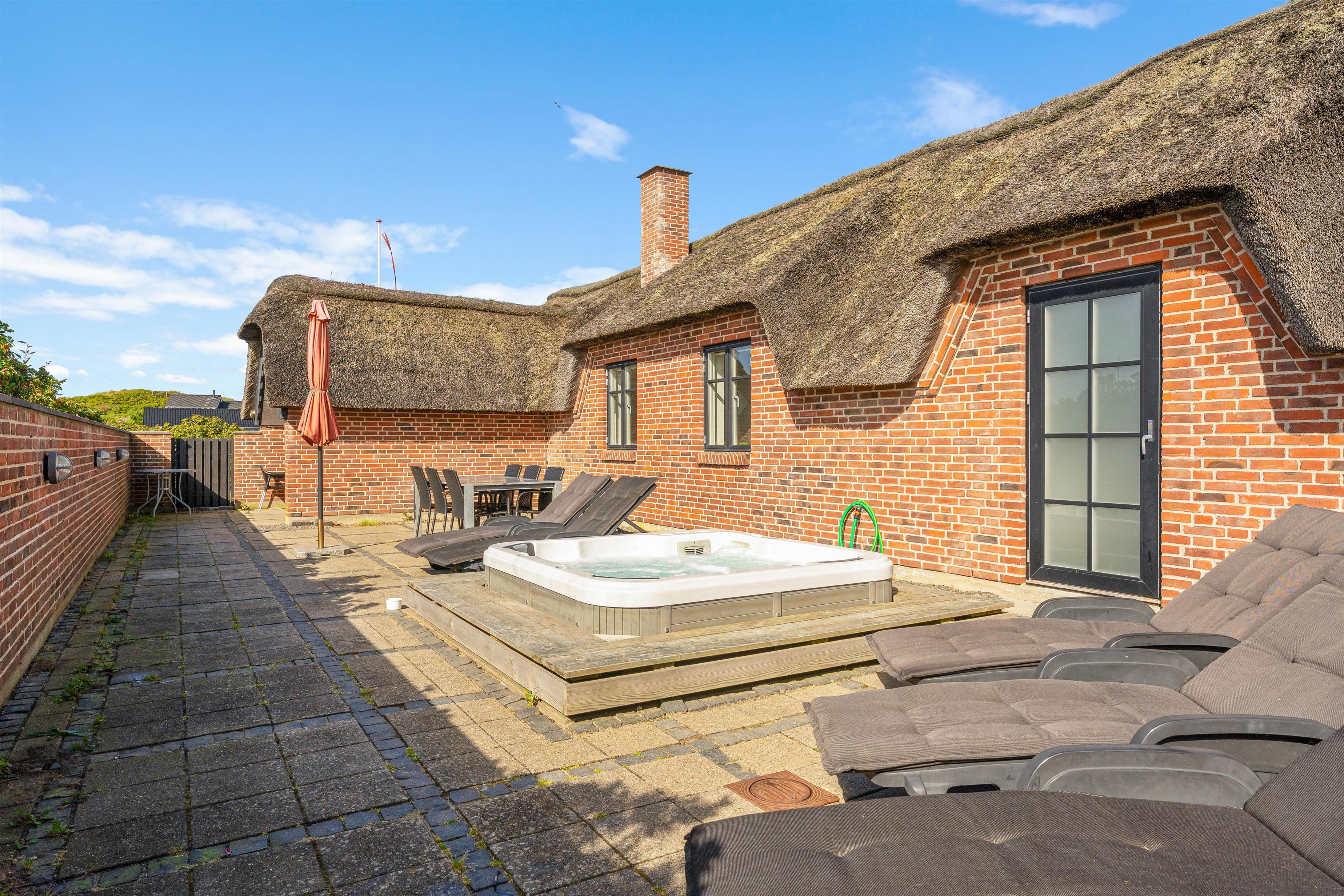 The enclosed south-facing terrace is ideal for outdoor activities, where children and dogs can play freely. Here you can enjoy the sun in a sheltered setting - and a dip in the outdoor hot tub is delightful in any season. On mild summer evenings, you can watch the sunset from here and later admire the vast, beautiful starlit sky - you'll love it, with the sound of waves in the background.