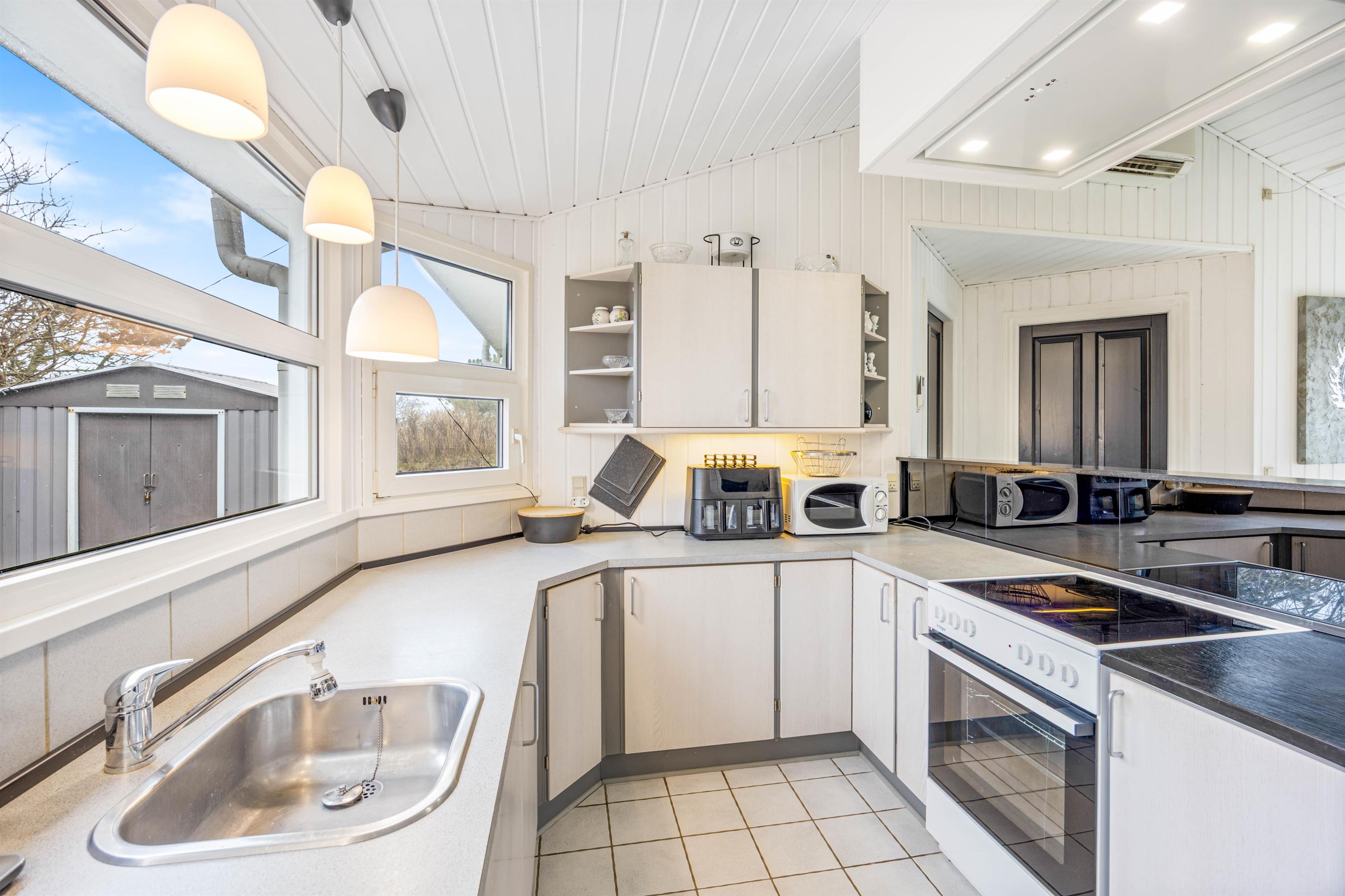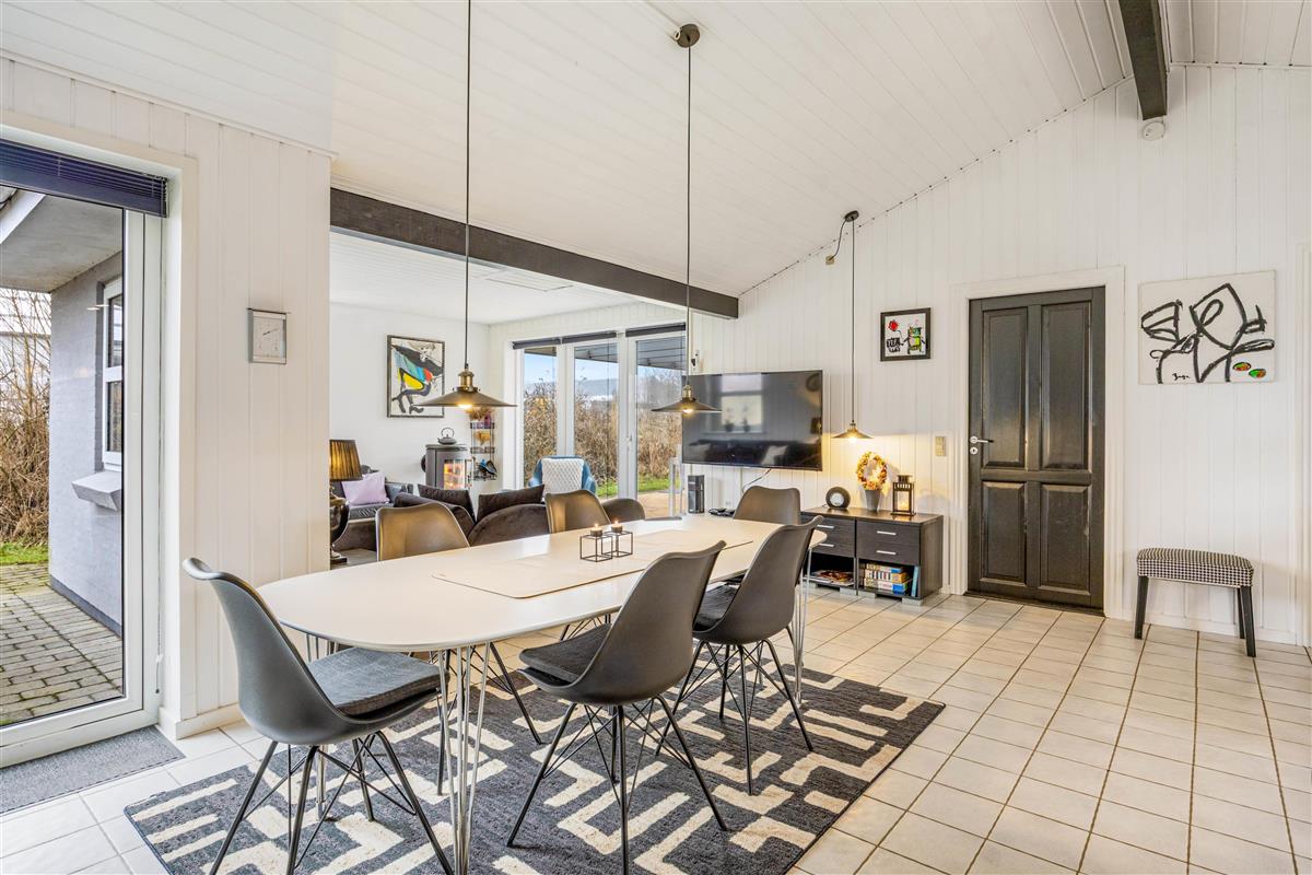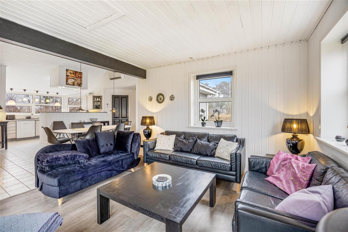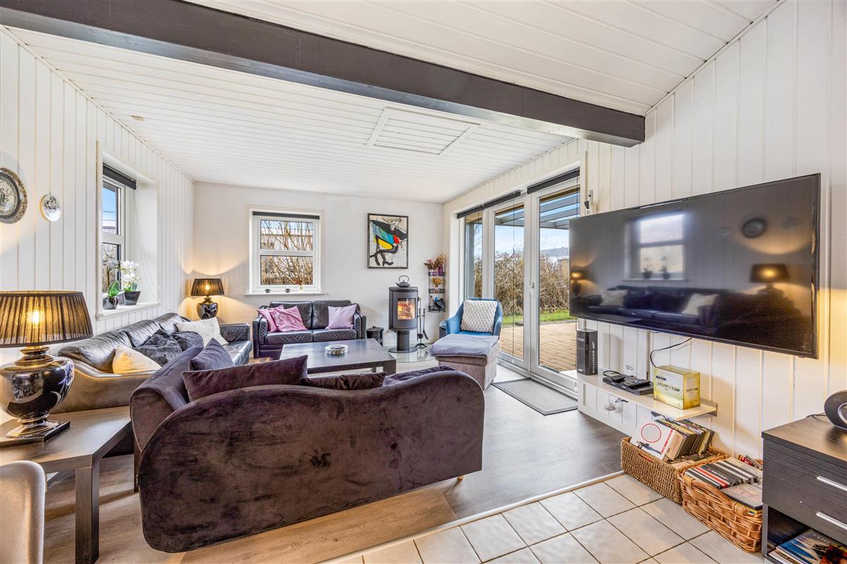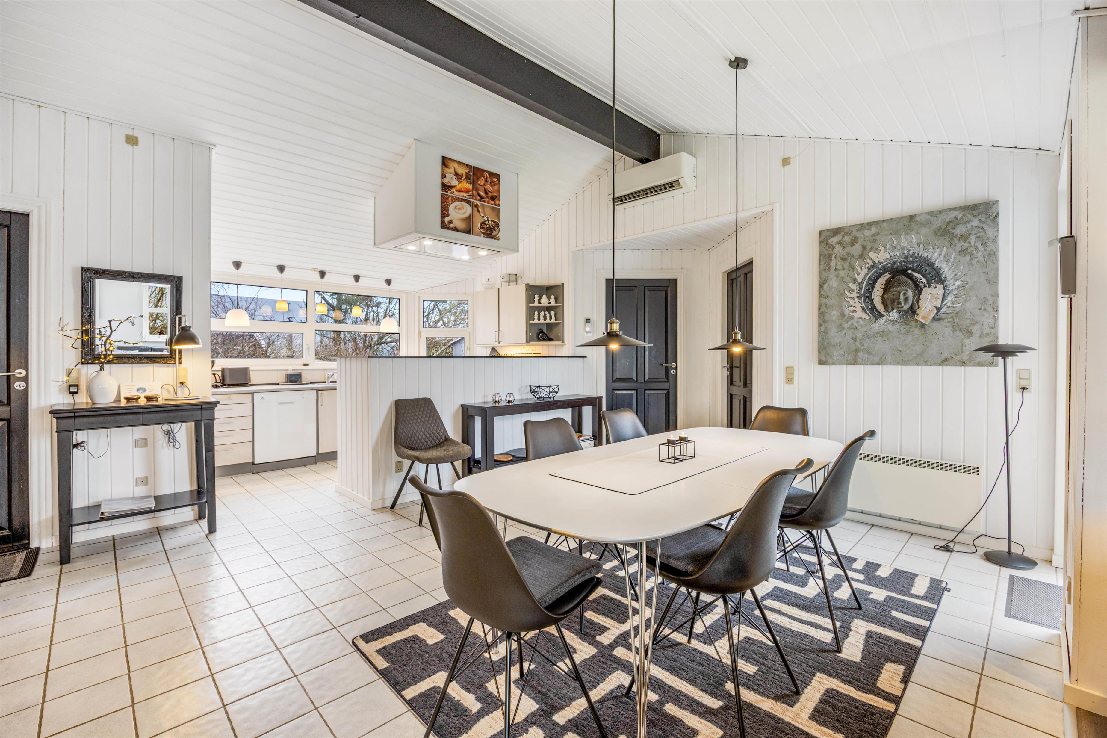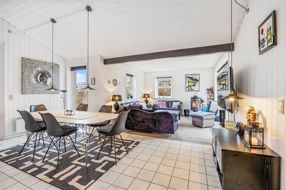 You'll feel at home straight away in this beautiful holiday home. The holiday home is modern and furnished to a high standard. The spacious open-plan living and dining area provides the perfect space for quality time together. During cooler weather, the wood-burning stove adds extra cosiness. An energy-efficient air-to-air heat pump ensures comfortable temperatures throughout.