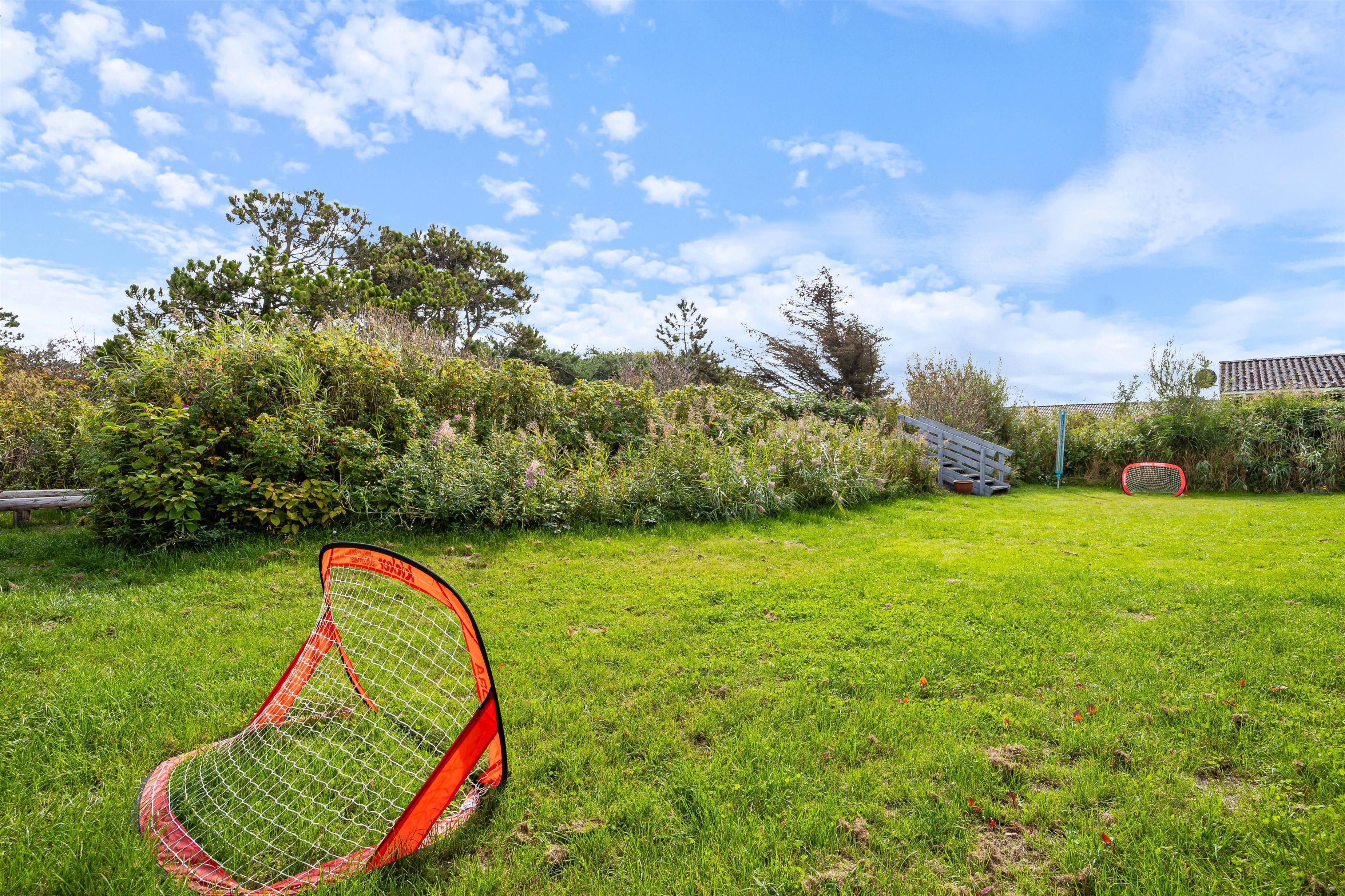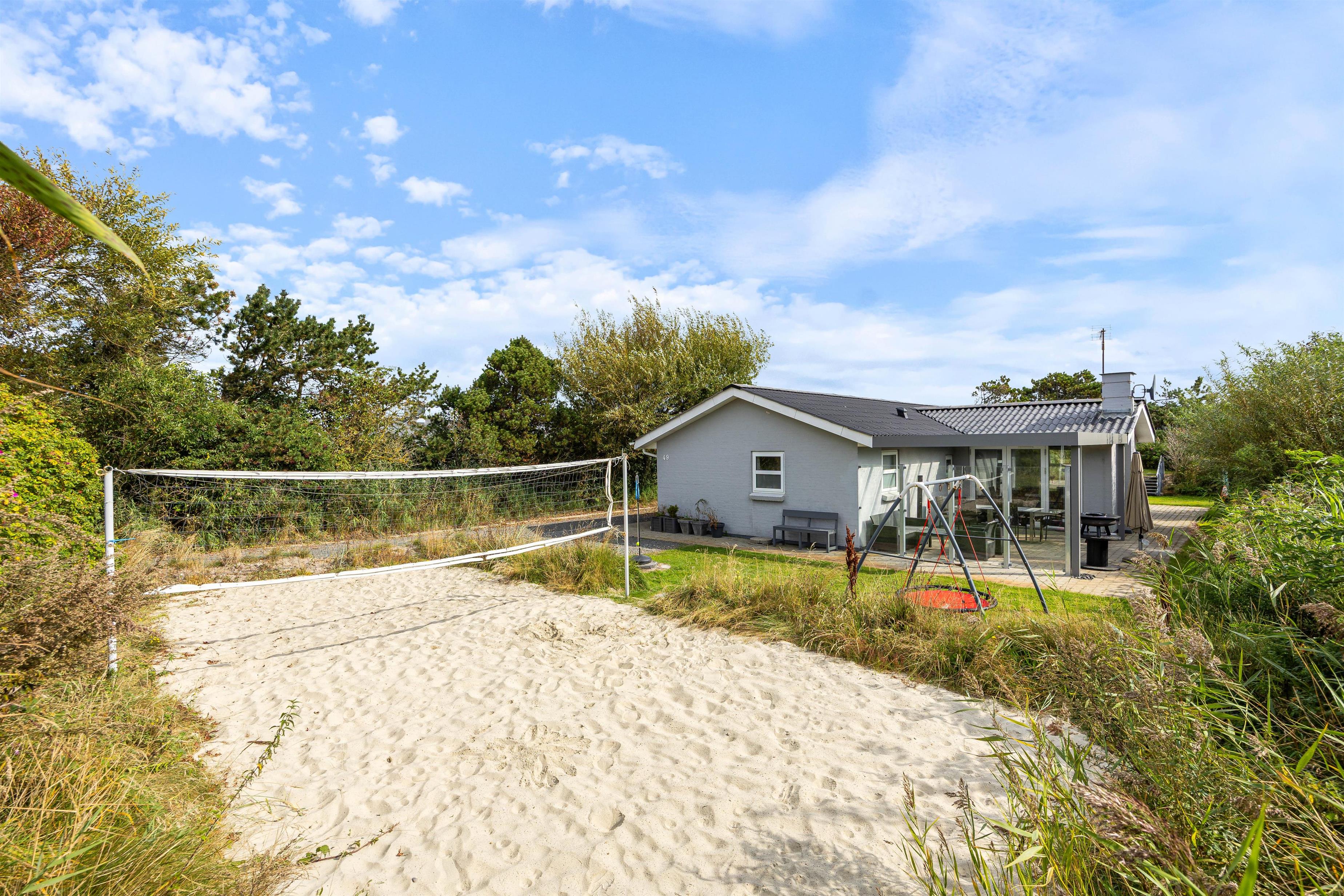The holiday home sits on a 1,200-square-metre plot, mostly surrounded by lawn. Here you'll find your private volleyball court where you can burn off energy - perfect for hosting a small volleyball tournament.