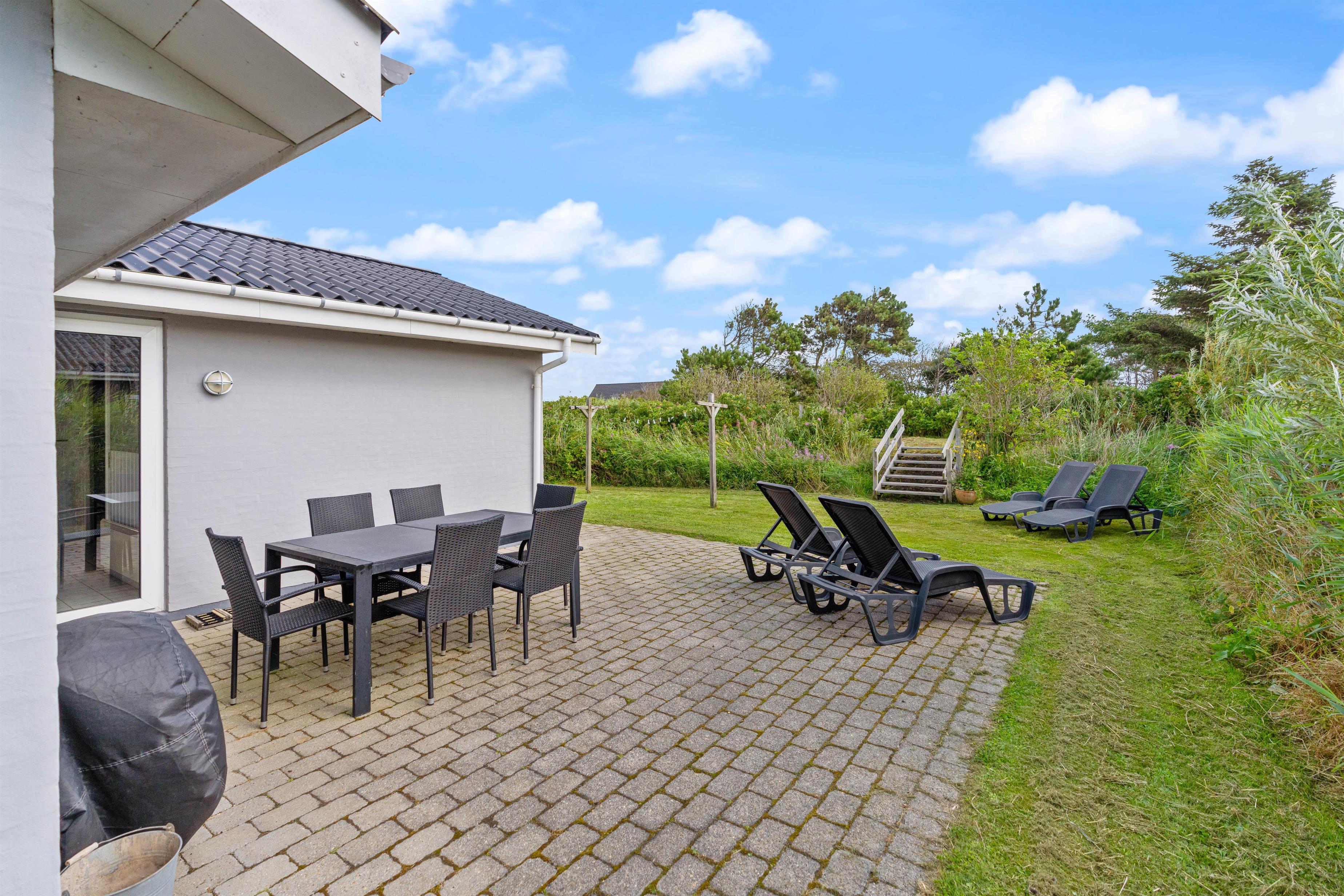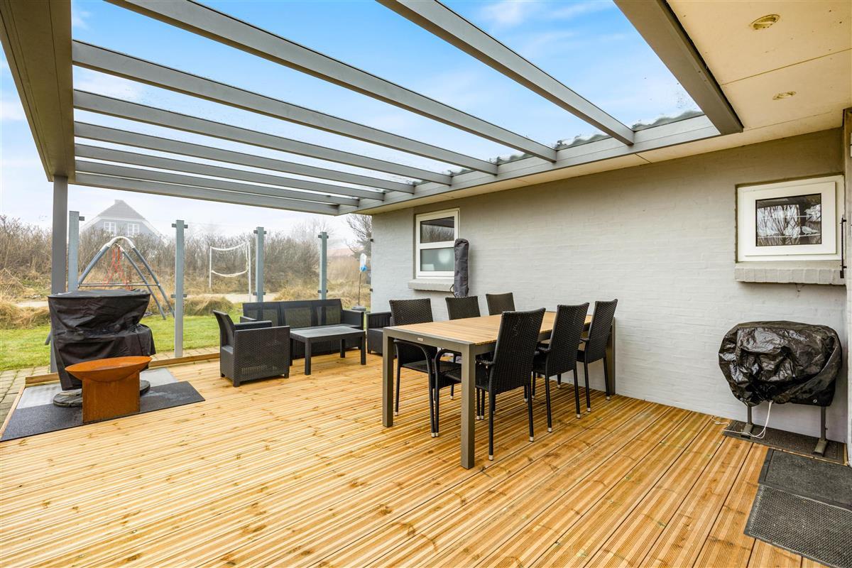 The terrace wraps around the house, allowing you to follow the sun throughout the day. The garden furniture provides excellent spots for relaxation. The terrace is ideal for sun-drenched dinners prepared on the holiday home's barbecue. The house also features a cosy eastern-facing corner, perfect for enjoying your morning coffee.