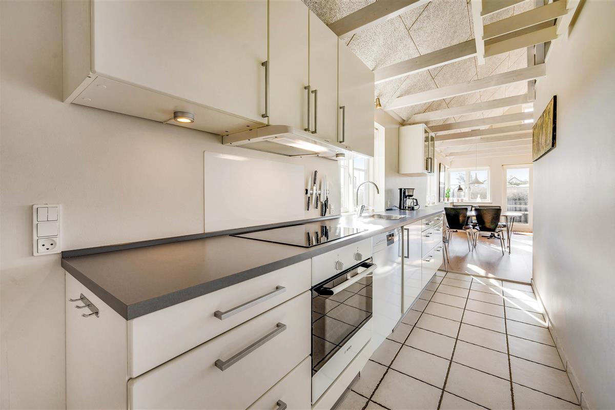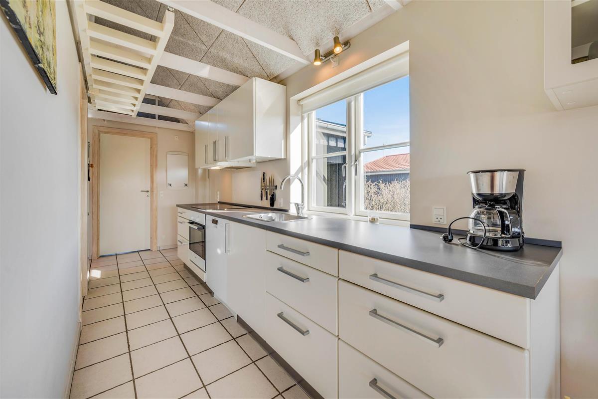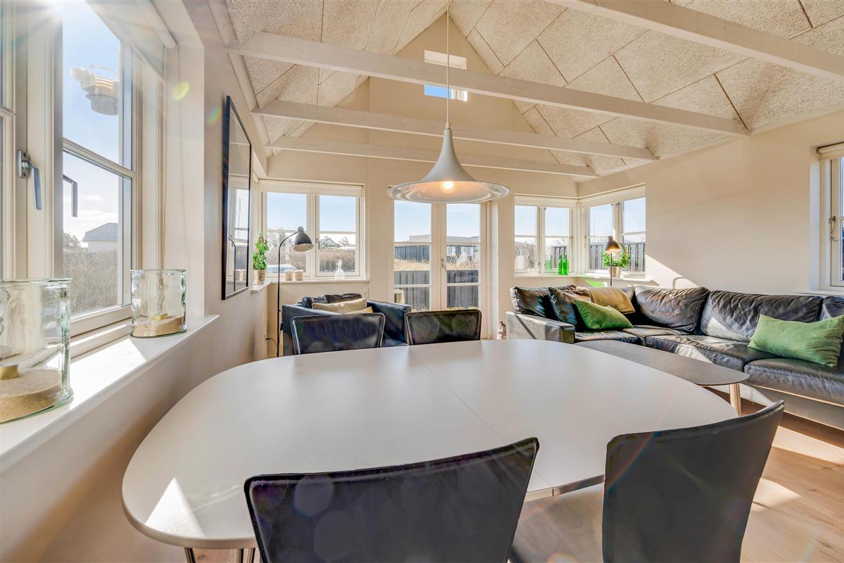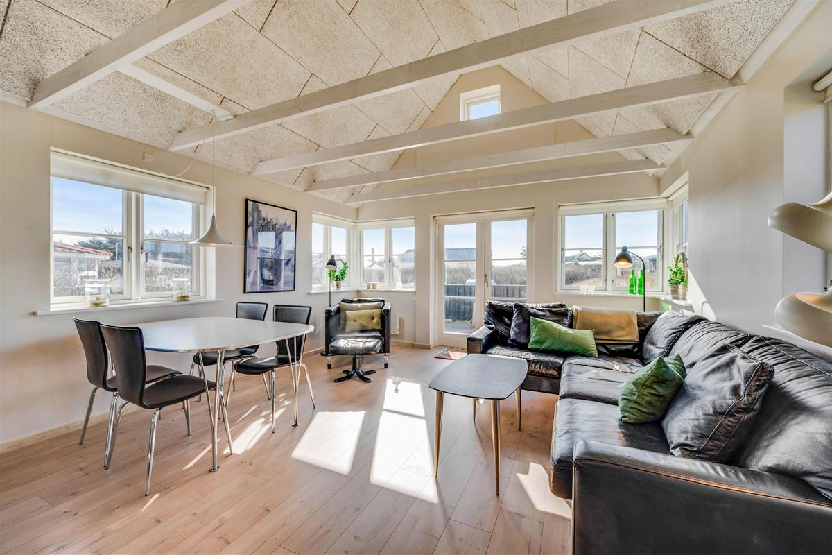 The holiday home features a large terrace that wraps around the southern part of the house. It's perfect for relaxing on a sun lounger. Being south-facing, you can enjoy sunshine throughout the day. For most people, holidays are synonymous with good food and comfort. You can easily meet these expectations with a lovely dinner prepared on the holiday home's barbecue. Even on breezy days, you can enjoy West Jutland's nature as the terrace is partially sheltered, whilst still allowing you to hear the sound of the North Sea.