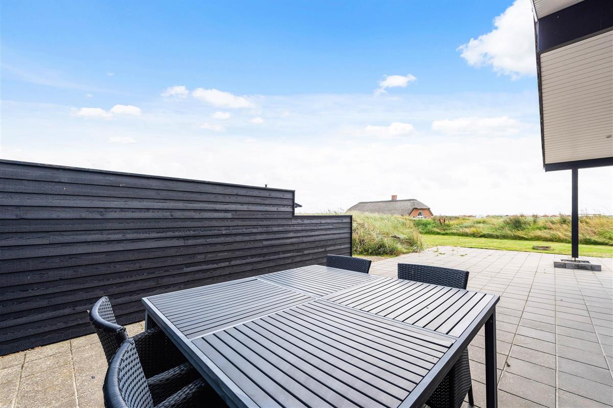 To the west, there's a large fully-fenced terrace, with an open terrace to the south and a partially screened and covered terrace to the east. The plot features earth banks to the south, east and west, without compromising views of the golf course or dune landscape.