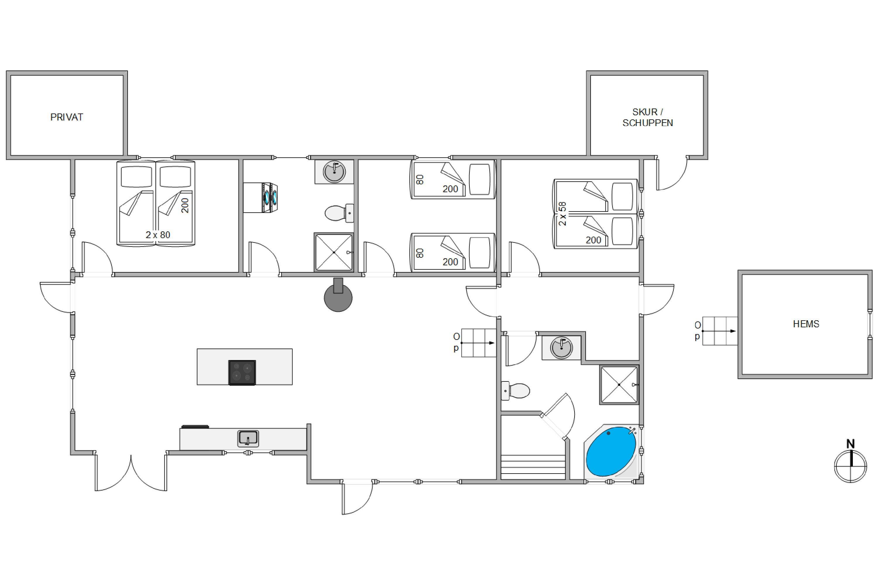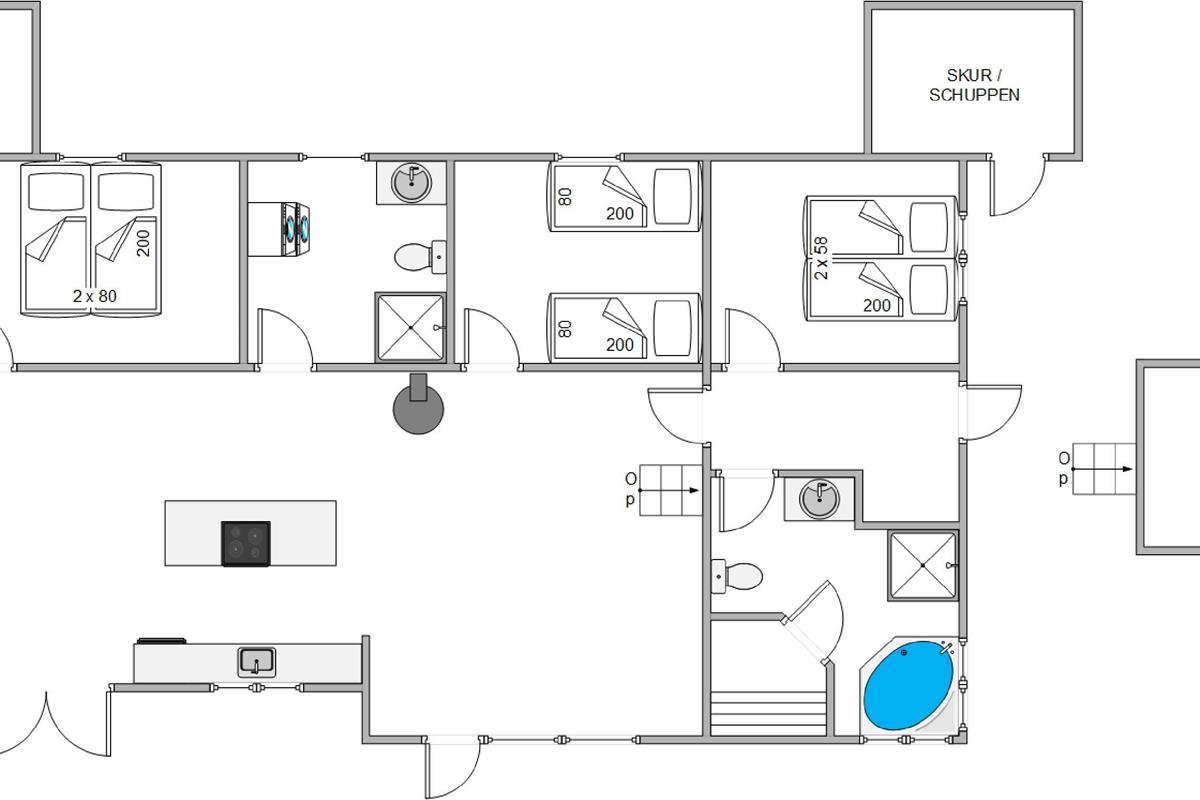 Søndervig centre is only about 1,500 metres from the house, while the North Sea is approximately 300 metres away. For golf enthusiasts, the 18-hole golf course is just 100 metres from the holiday home.