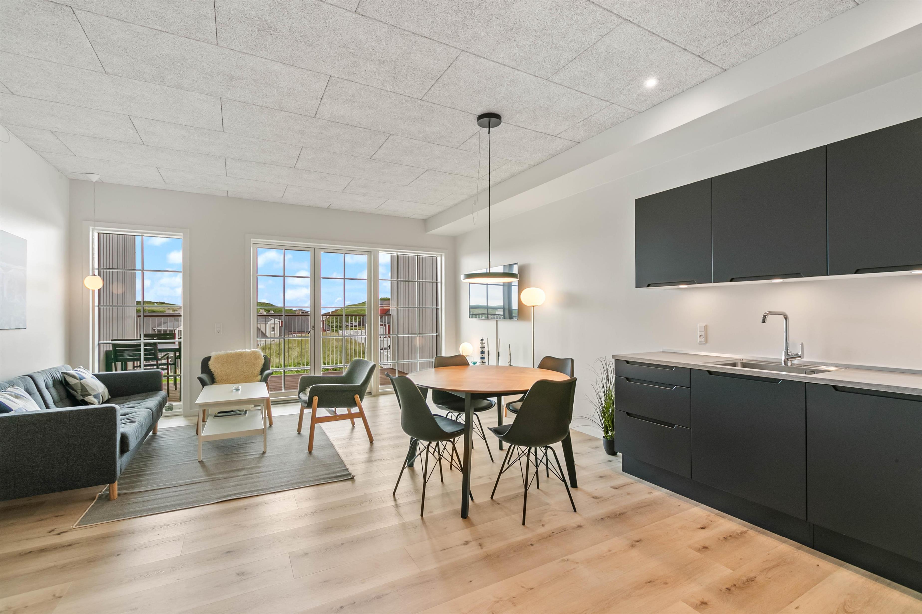 The holiday apartment at Badevej 18N in Søndervig offers a balcony on one side and a terrace on the other. Here you can enjoy the sunshine and relax on the outdoor furniture. Watch the sunset behind the dunes and observe life in this seaside resort - everything is possible from this apartment.