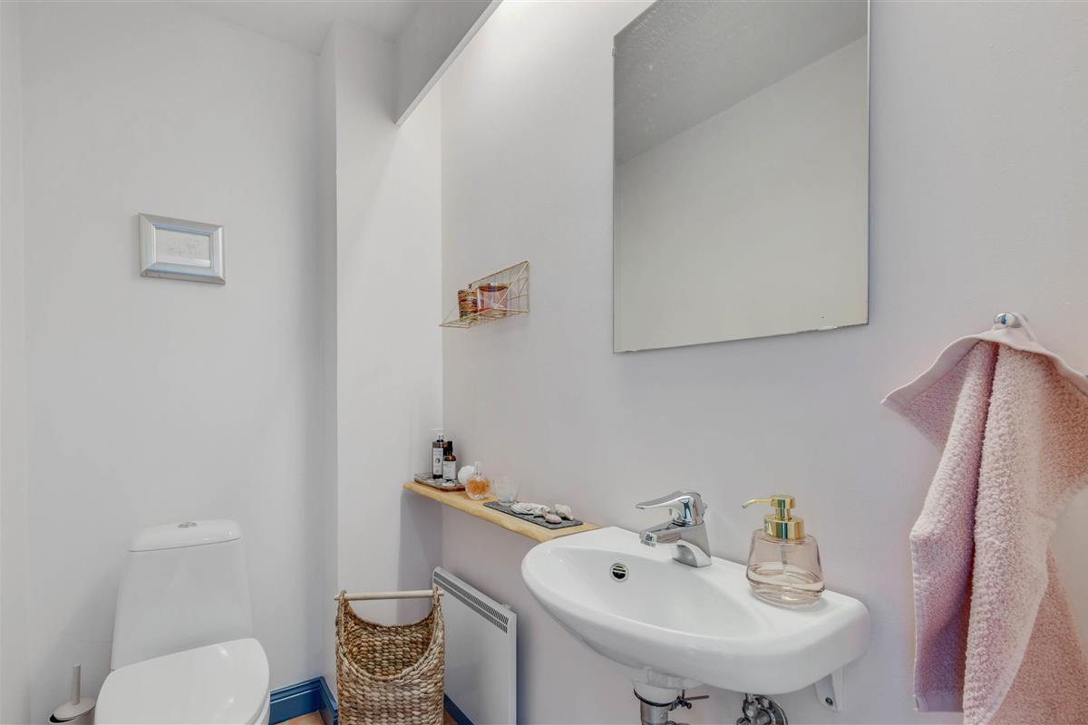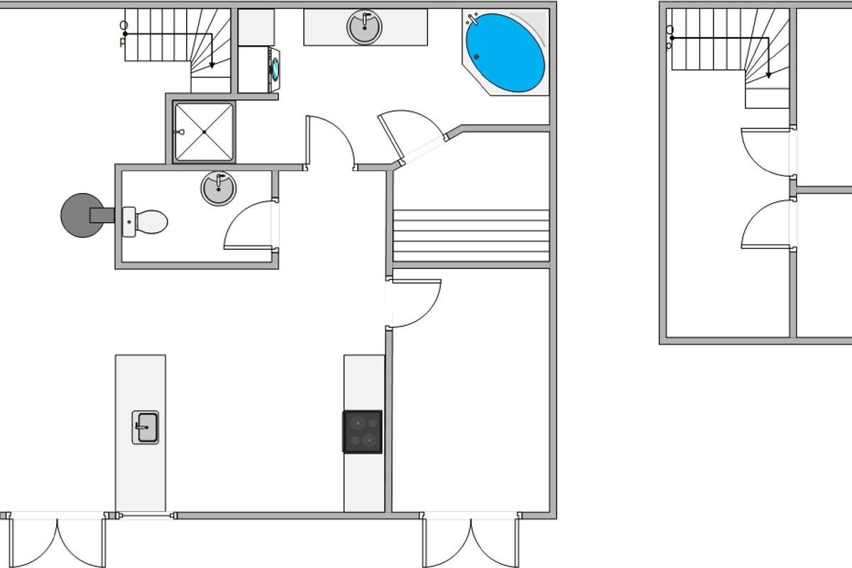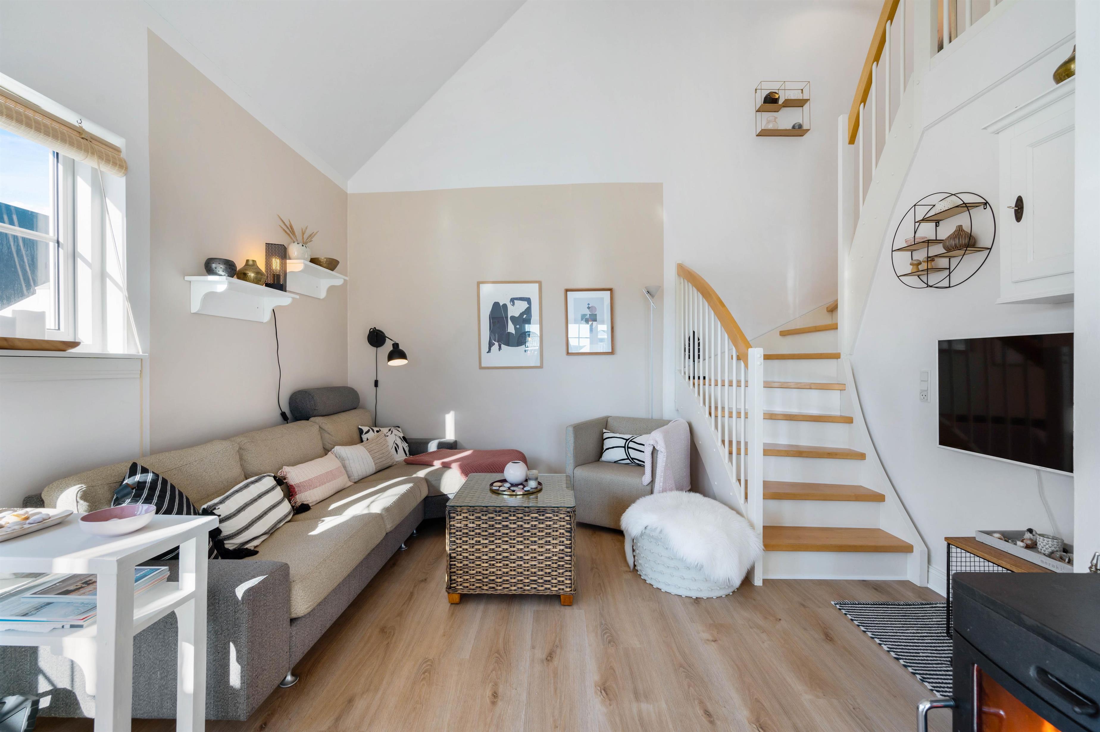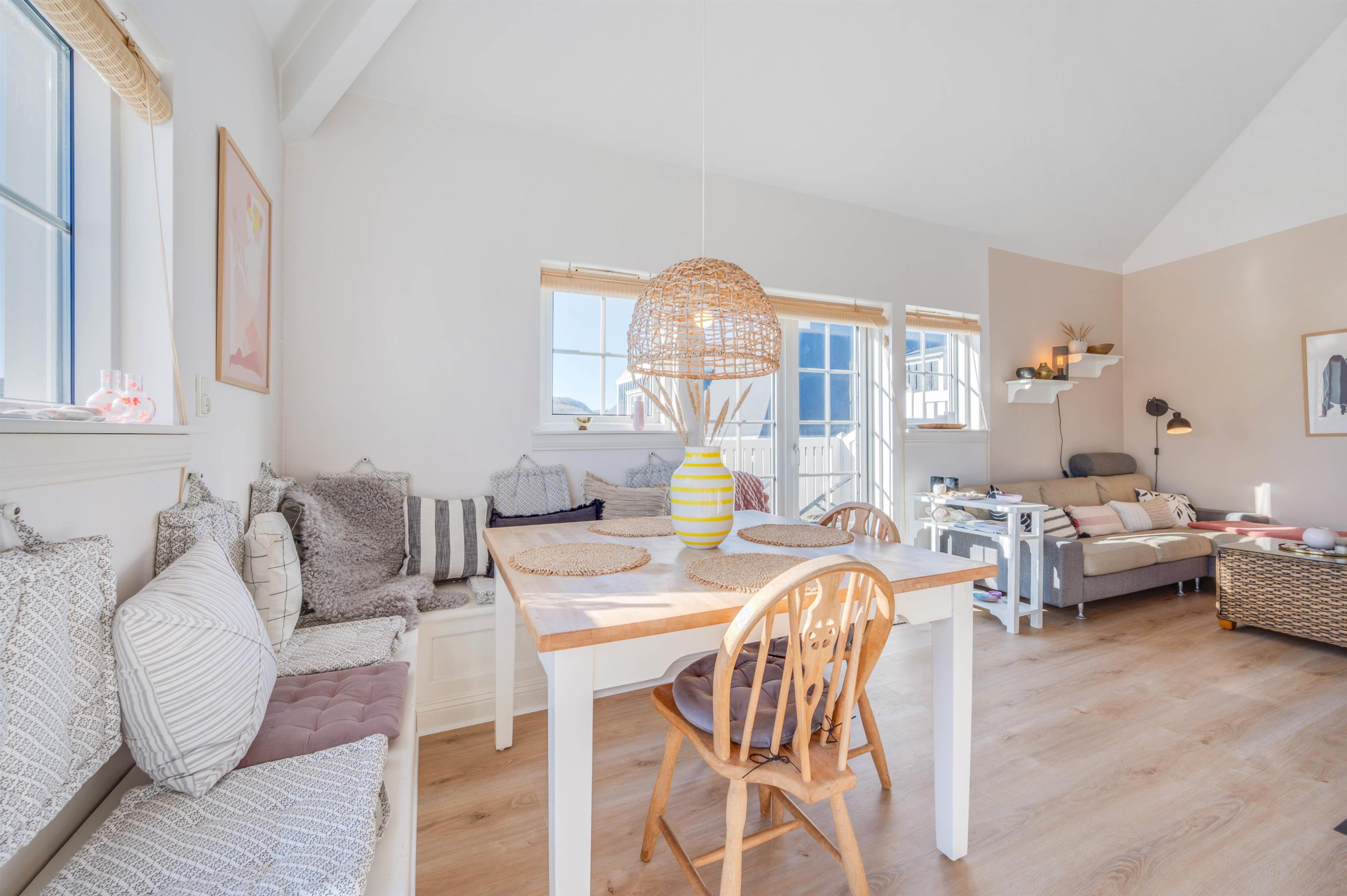 Upon entering your holiday apartment at Badevej 20, you'll notice the thoughtful interior design and decoration. The tasteful furnishings create a cohesive theme throughout the apartment. You'll feel at home straight away. The 90-square-metre apartment is spread across two floors. The living area with open-plan kitchen and bathroom with separate WC are on the ground floor. The two bedrooms, each with double beds, are located upstairs.