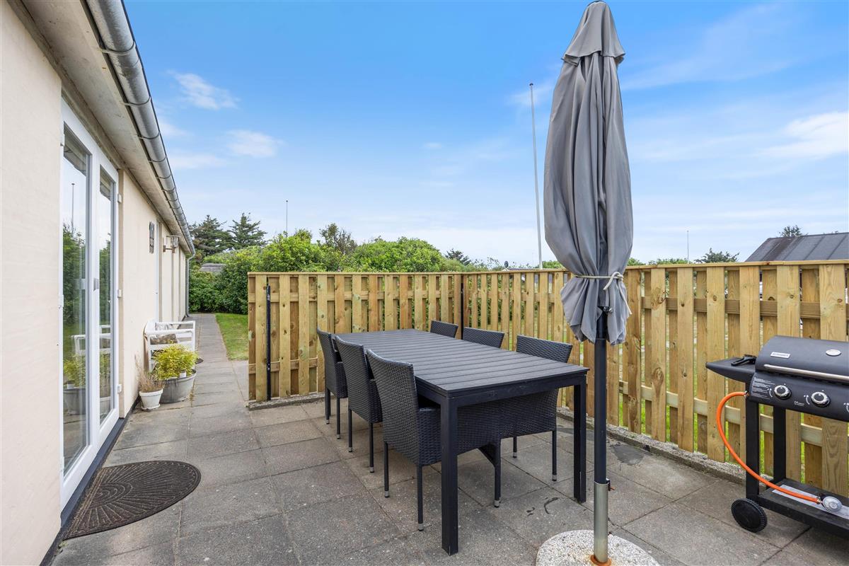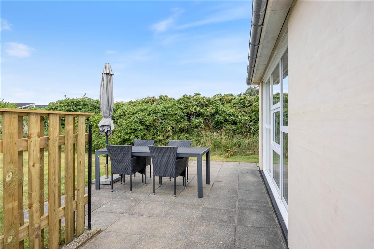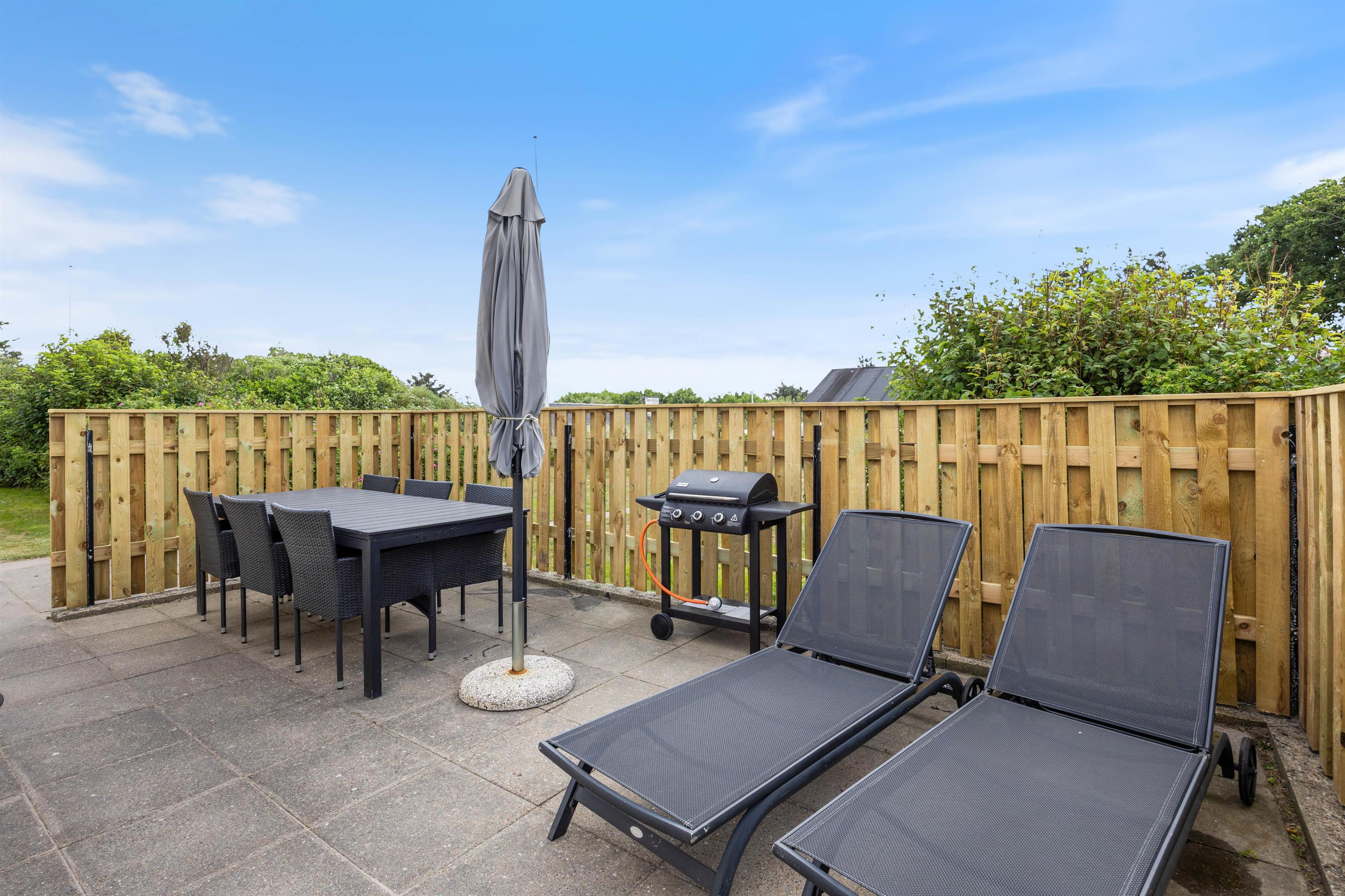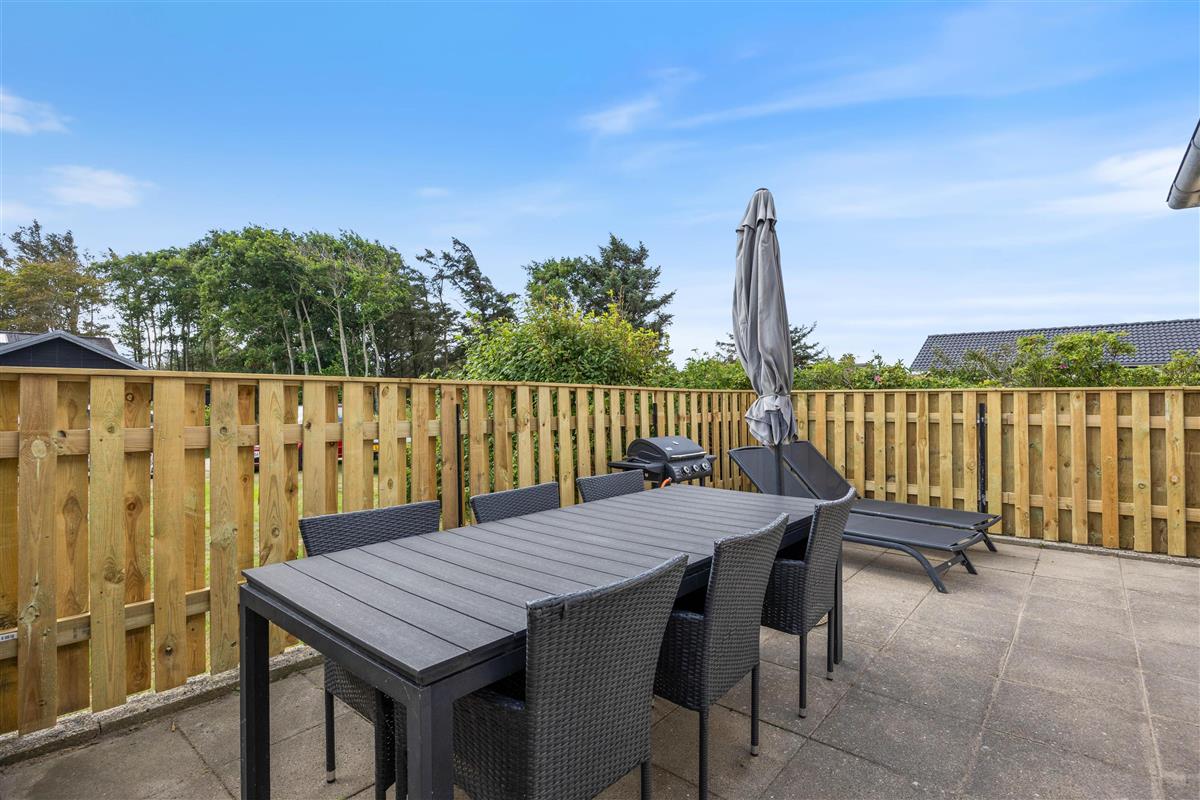 Relax on your terrace with a barbecue evening or admire the North Sea sunset while enjoying a cool drink. Children and your dog can run freely in the grounds, and the fantastic endless white sandy beach is just 600 metres away. Even on breezy days, you can enjoy sunbathing on your sheltered terrace.