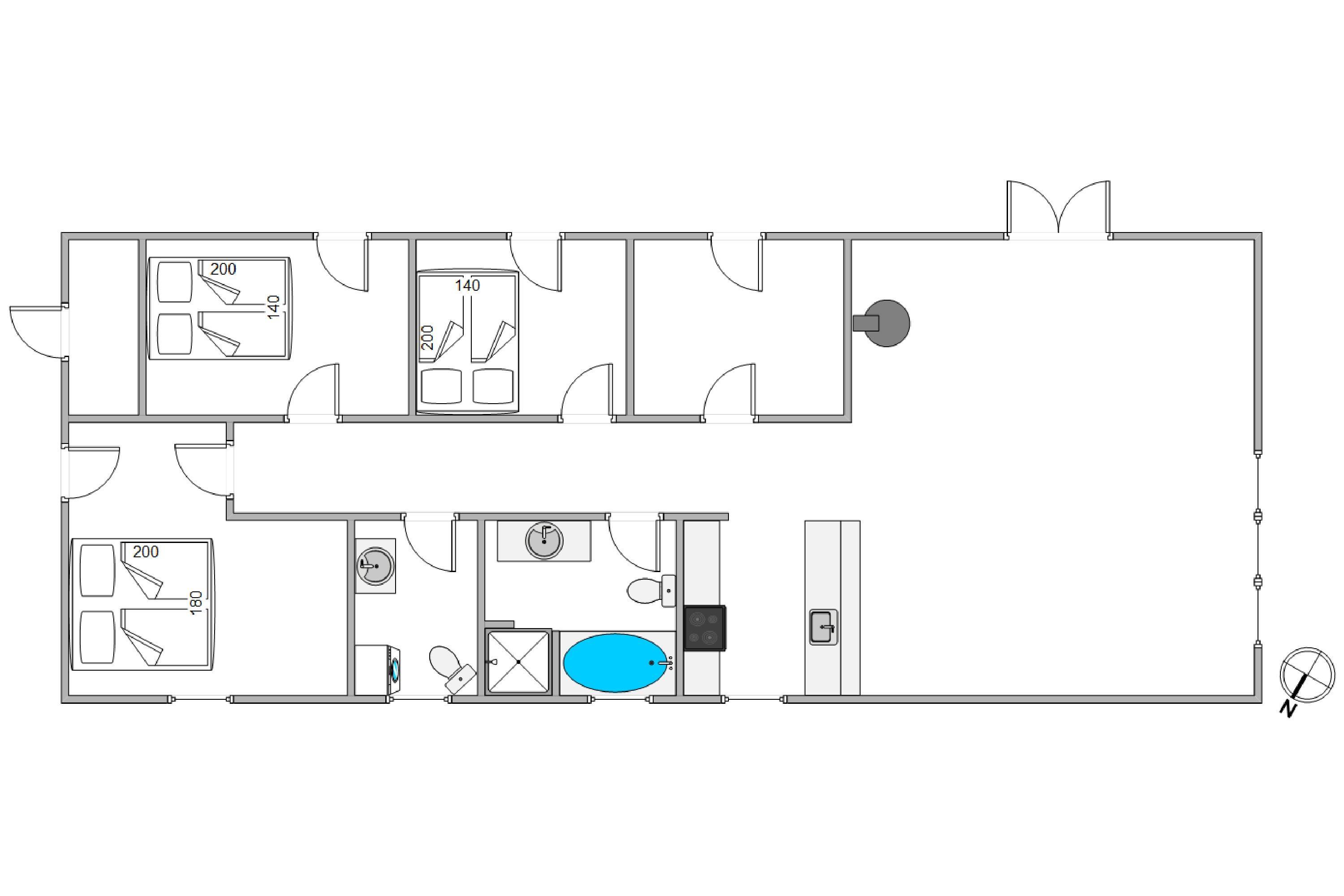 The 119 square metres of this holiday home comprise one bathroom, a guest toilet, three bedrooms, an open-plan living and dining area, and an open-plan kitchen. The well-equipped kitchen makes cooking a pleasure, as the open-plan design keeps you connected to family activities while preparing your meals. The shared evening meal tastes even better in this atmosphere, and the wood-burning stove adds extra cosiness for the evening. You can also enjoy film nights with access to German TV channels.