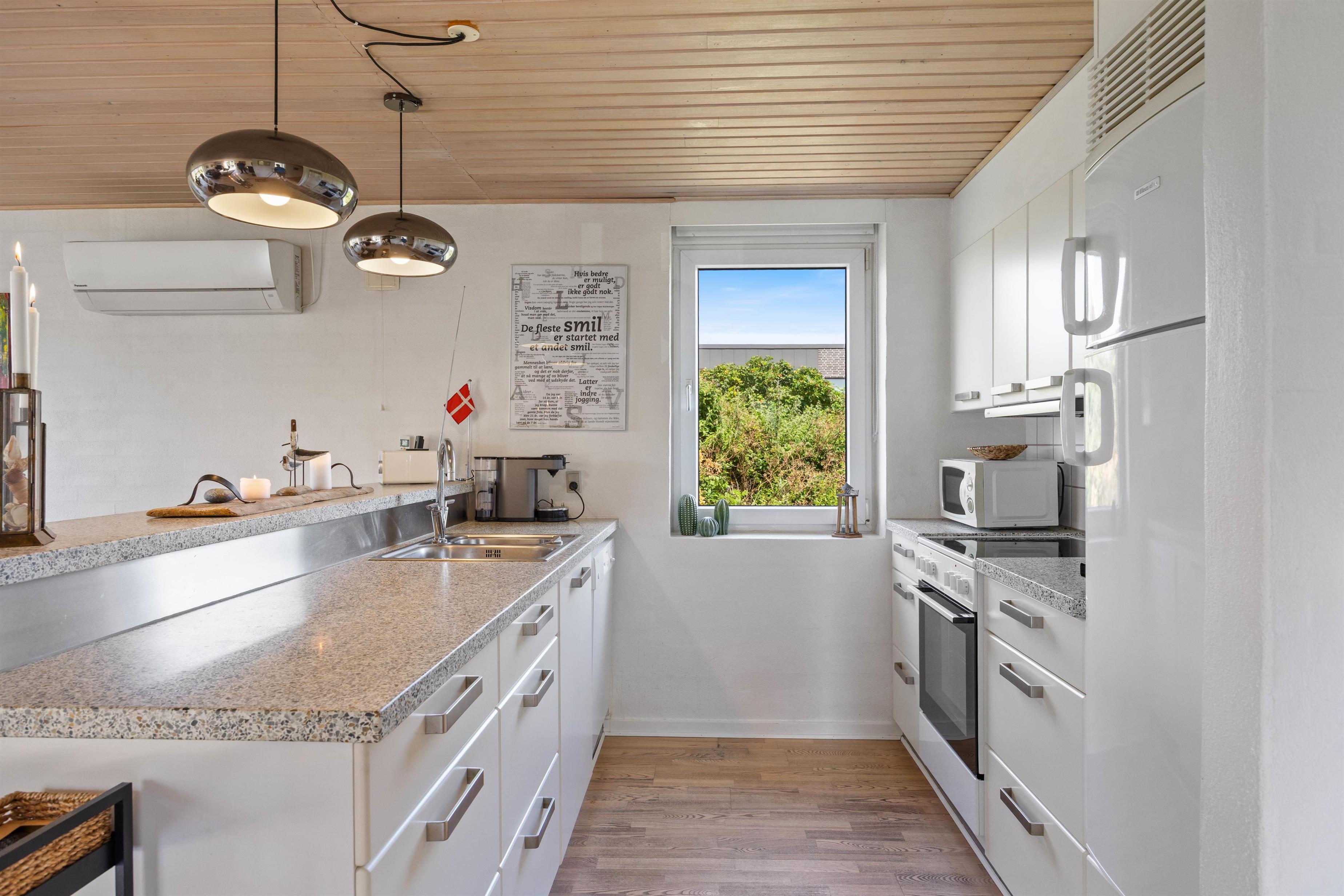 Søndervig's centre is conveniently close. Here you'll find a well-stocked supermarket and many shops and cafés perfect for leisurely visits. Marvel at the artworks at the Sand Sculpture Festival in Søndervig or take a trip to the beautiful merchant town of Ringkøbing. For a longer day out, visit Thyborøn, where the North Sea meets the Limfjord. Here you can admire beautiful ice sculptures all year round or visit the beautifully designed aquarium, where you can even pet a shark.