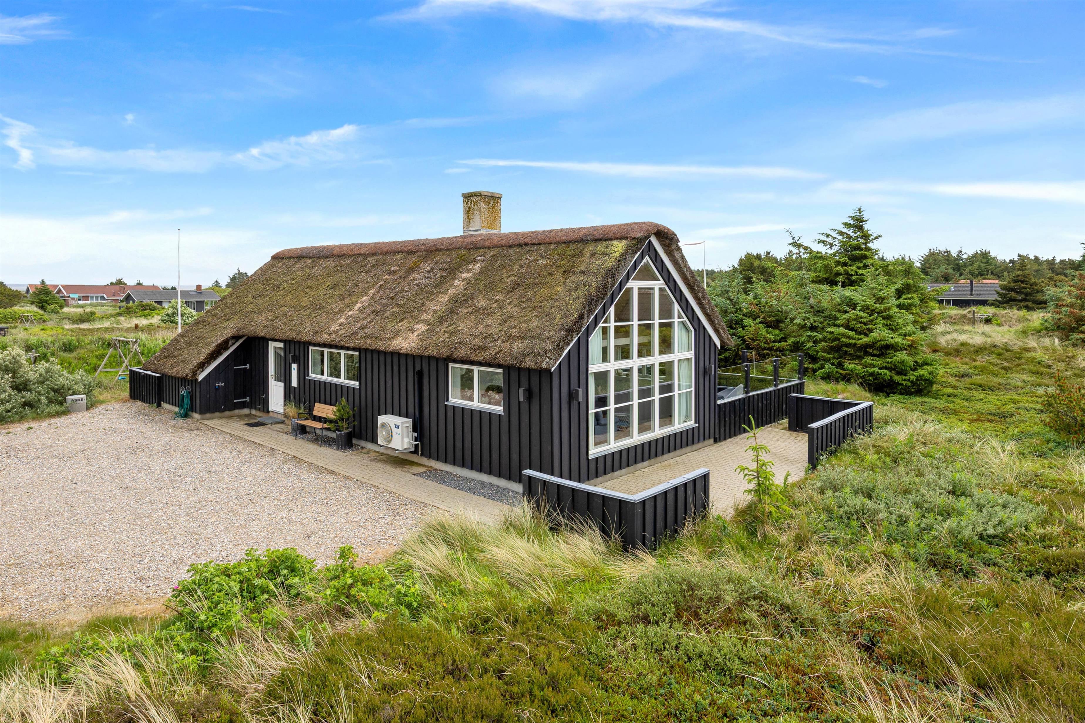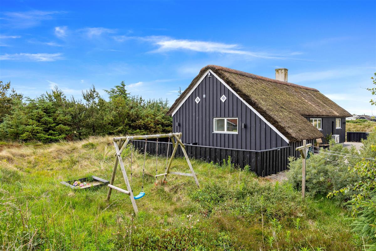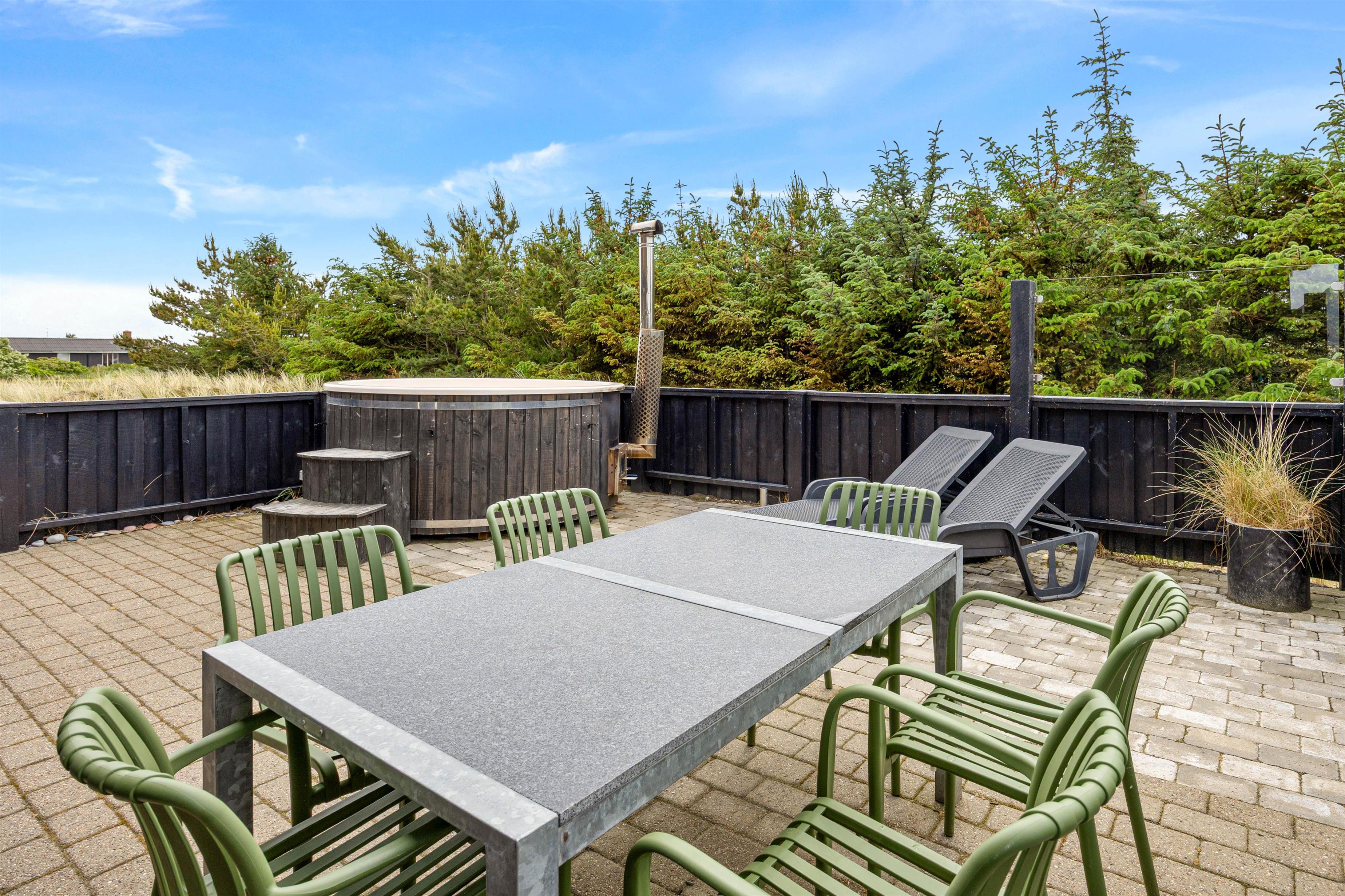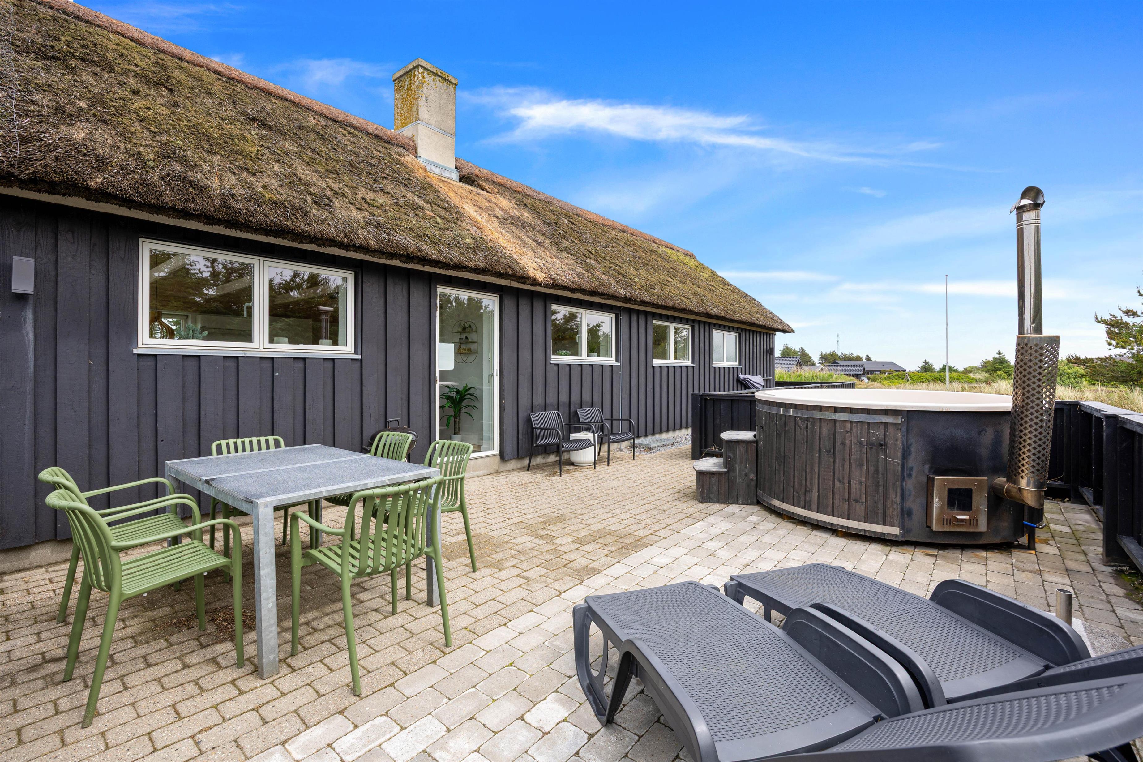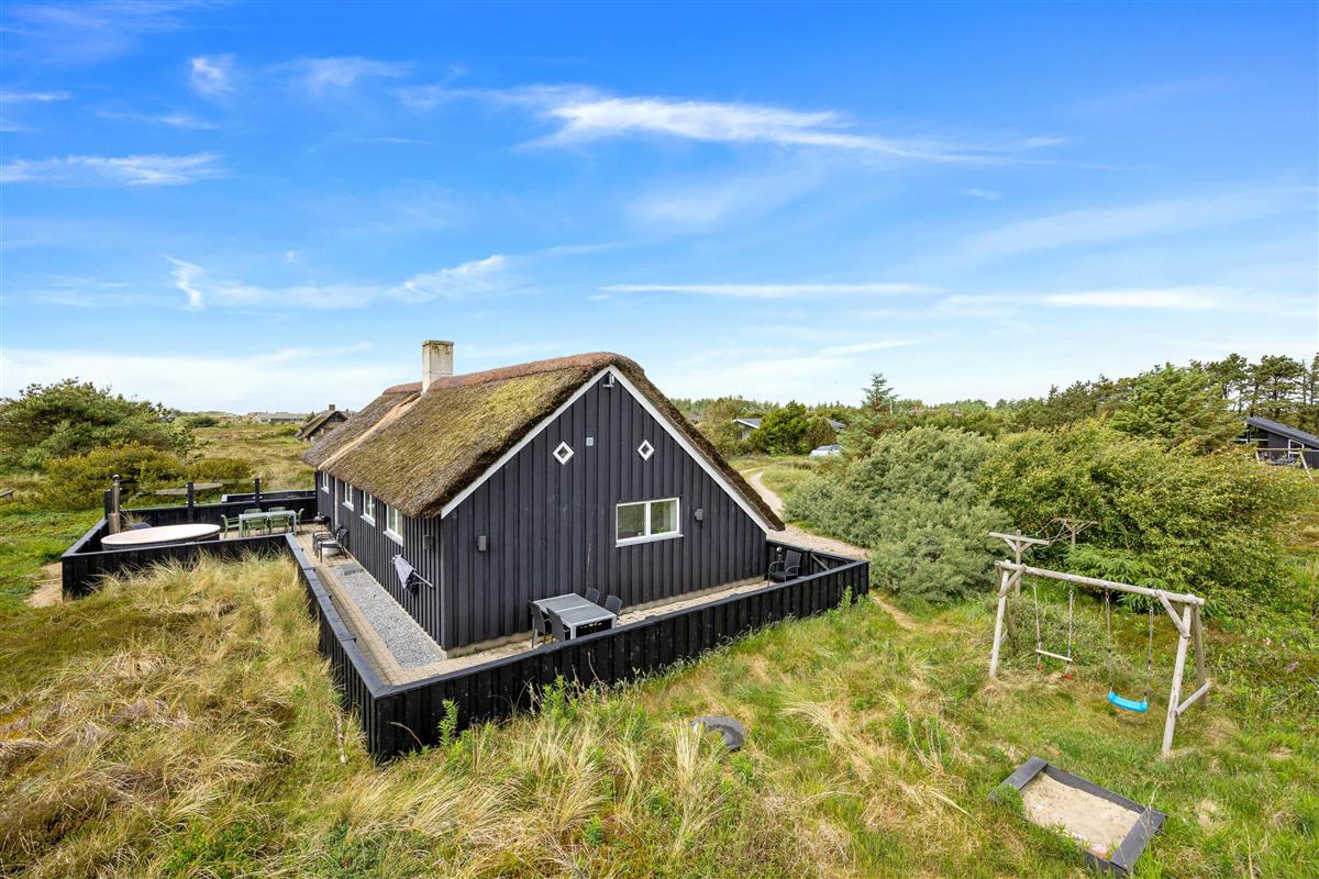The 2,463-square-metre plot is situated in the beautiful natural dunes of Søndervig. After a long day in the fresh air, you can put your feet up in the sauna or whirlpool to recharge. For those who prefer outdoor relaxation, the hot tub allows you to enjoy wonderfully warm water while breathing in the fresh North Sea air. The hot tub features LED lighting and a massage system with 12 air jets - certainly a special highlight for ultimate relaxation.