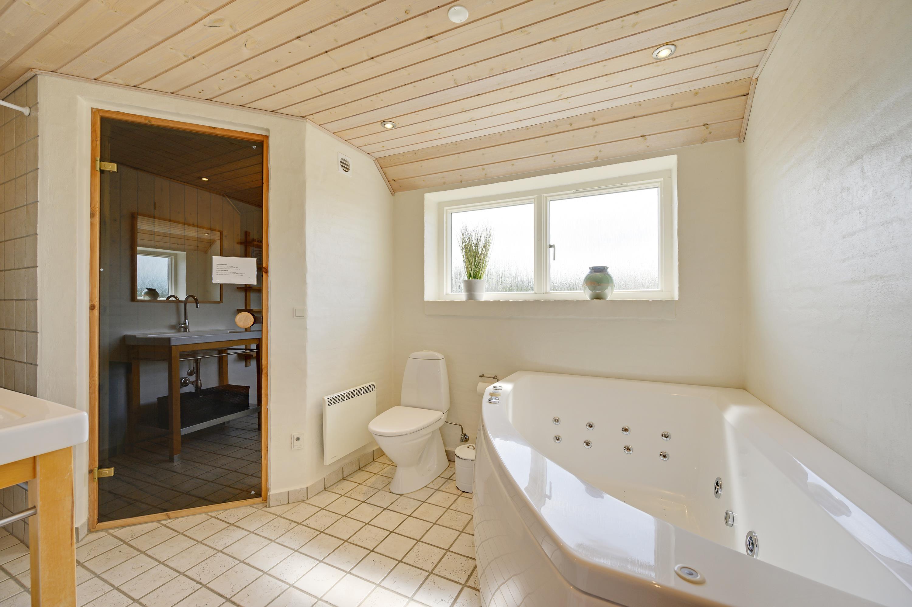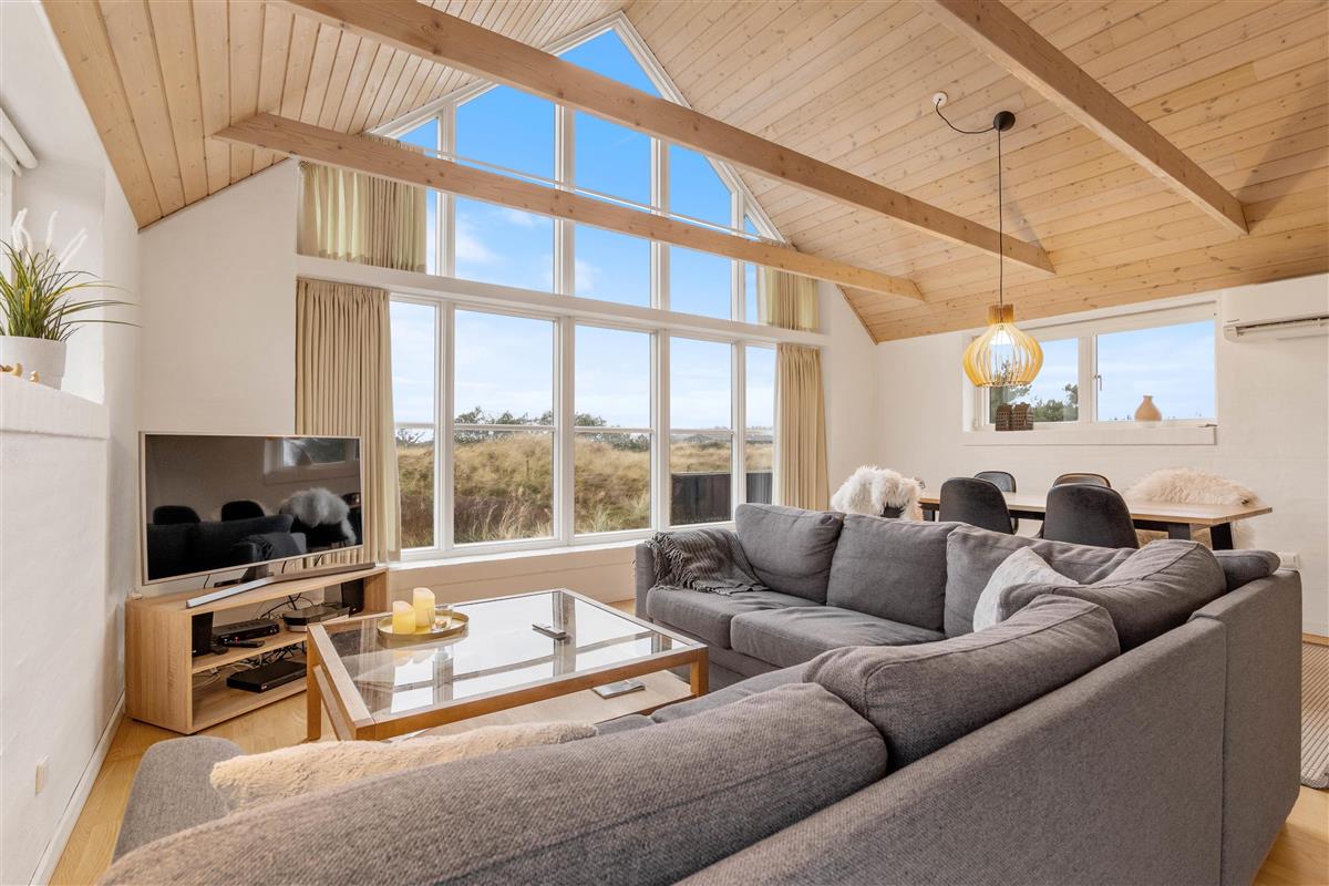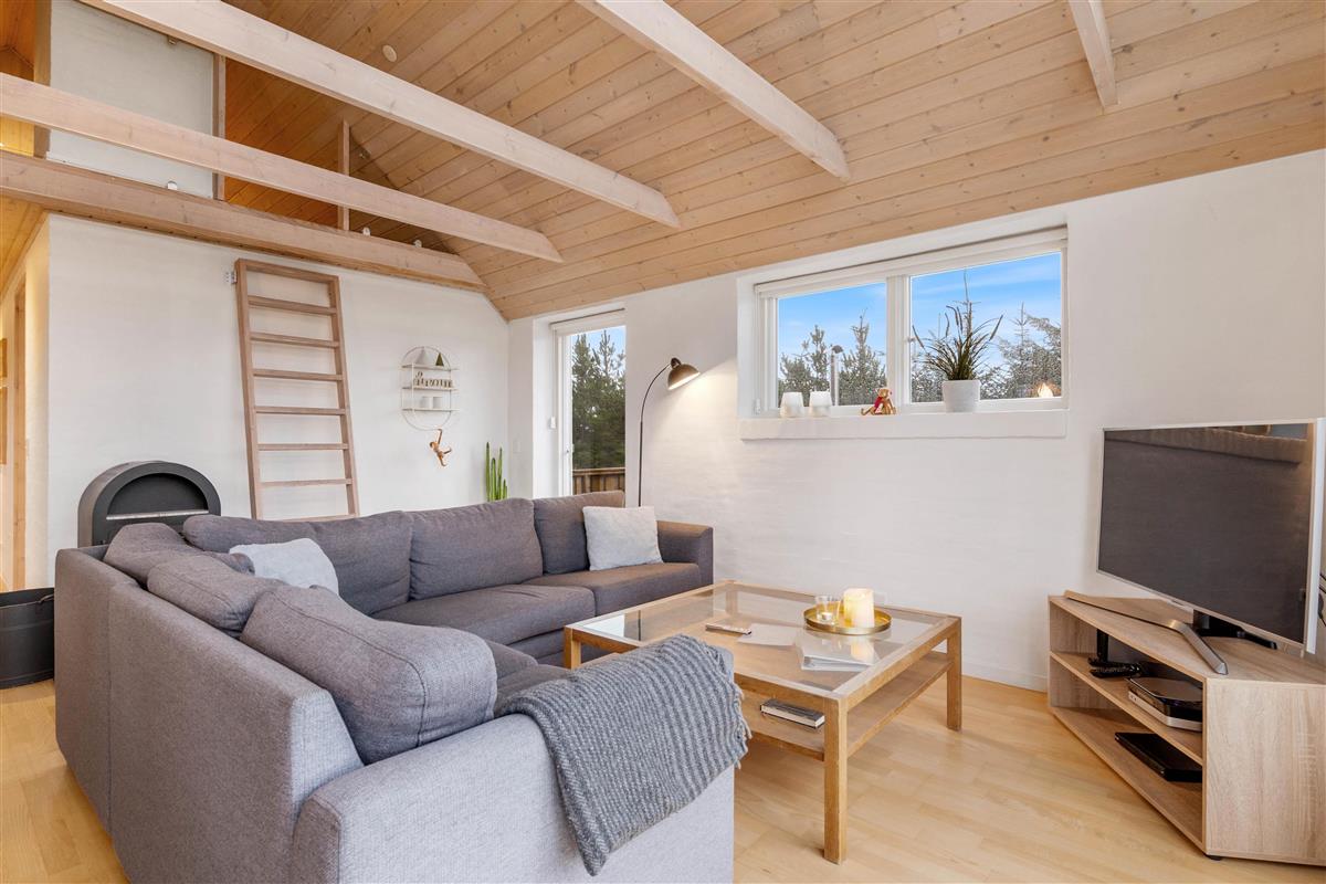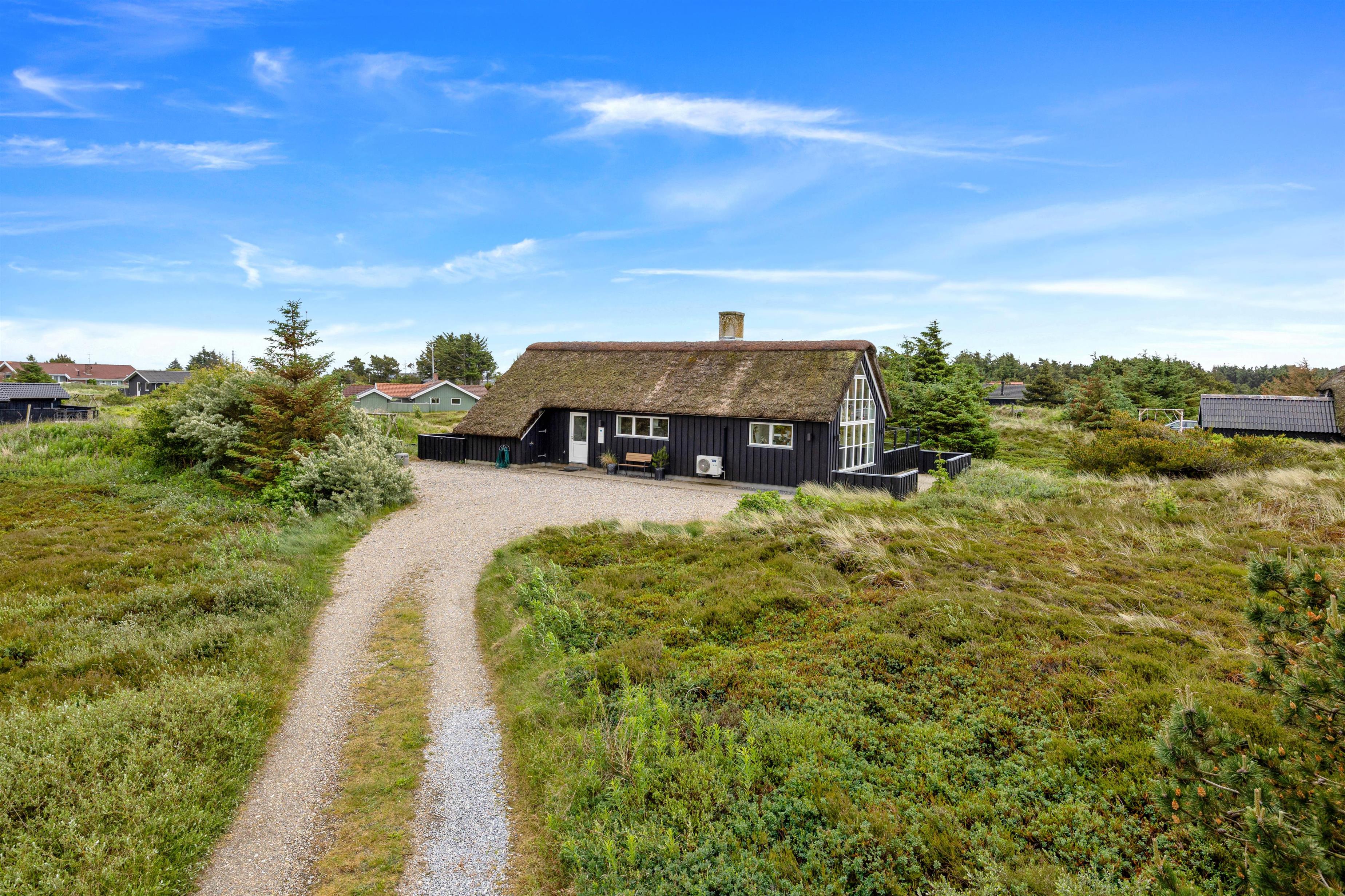 The 2,463-square-metre plot is situated in the beautiful natural dunes of Søndervig. After a long day in the fresh air, you can put your feet up in the sauna or whirlpool to recharge. For those who prefer outdoor relaxation, the hot tub allows you to enjoy wonderfully warm water while breathing in the fresh North Sea air. The hot tub features LED lighting and a massage system with 12 air jets - certainly a special highlight for ultimate relaxation.