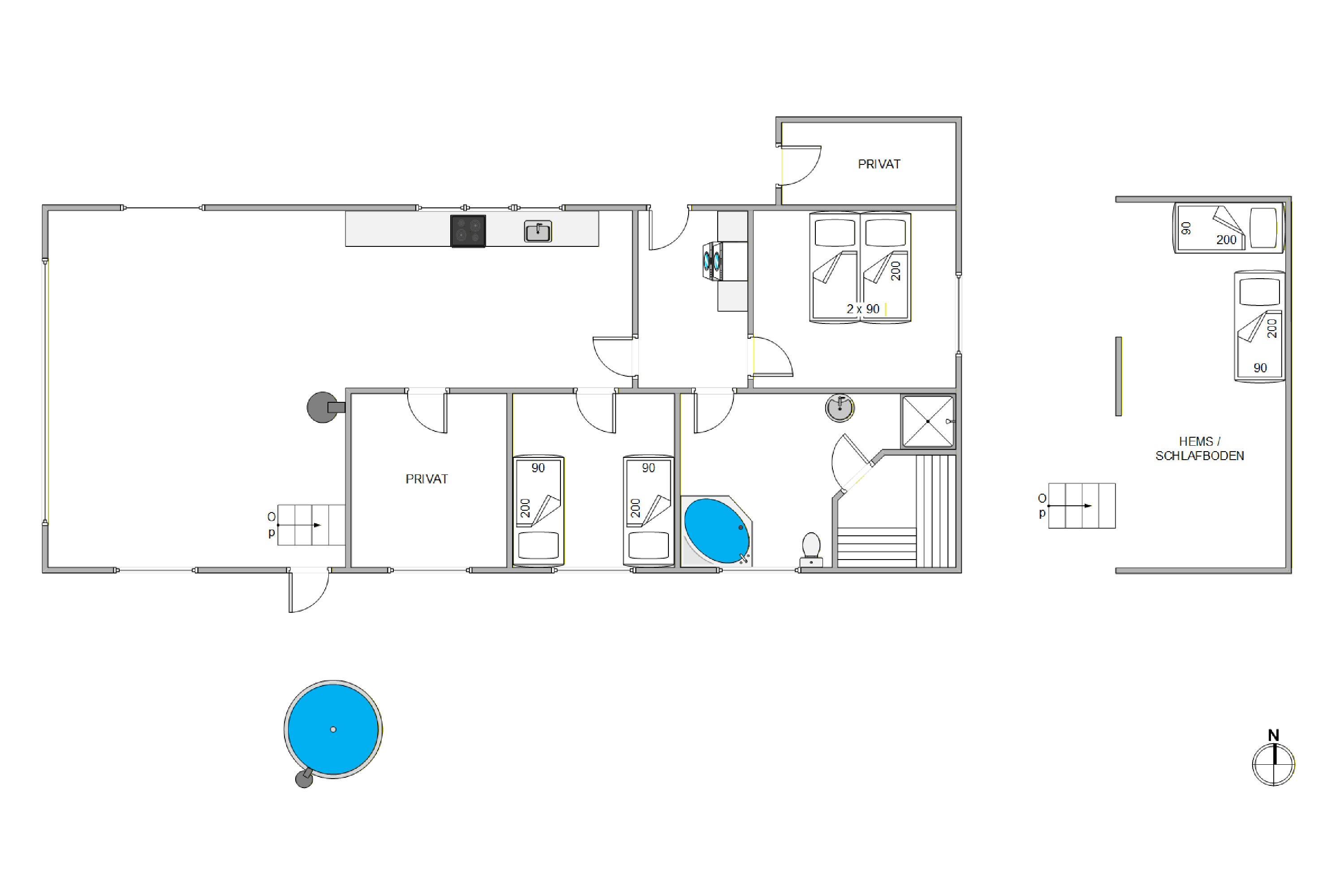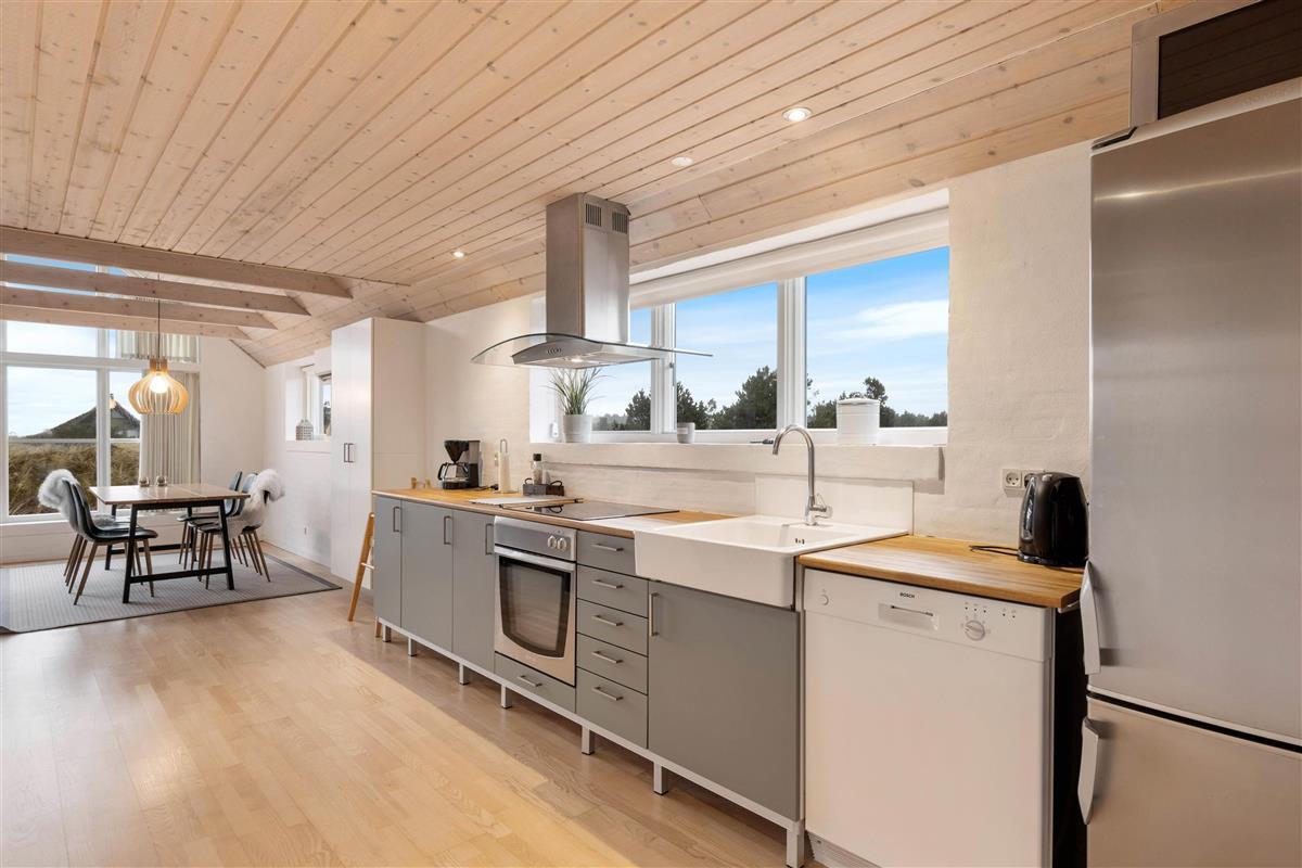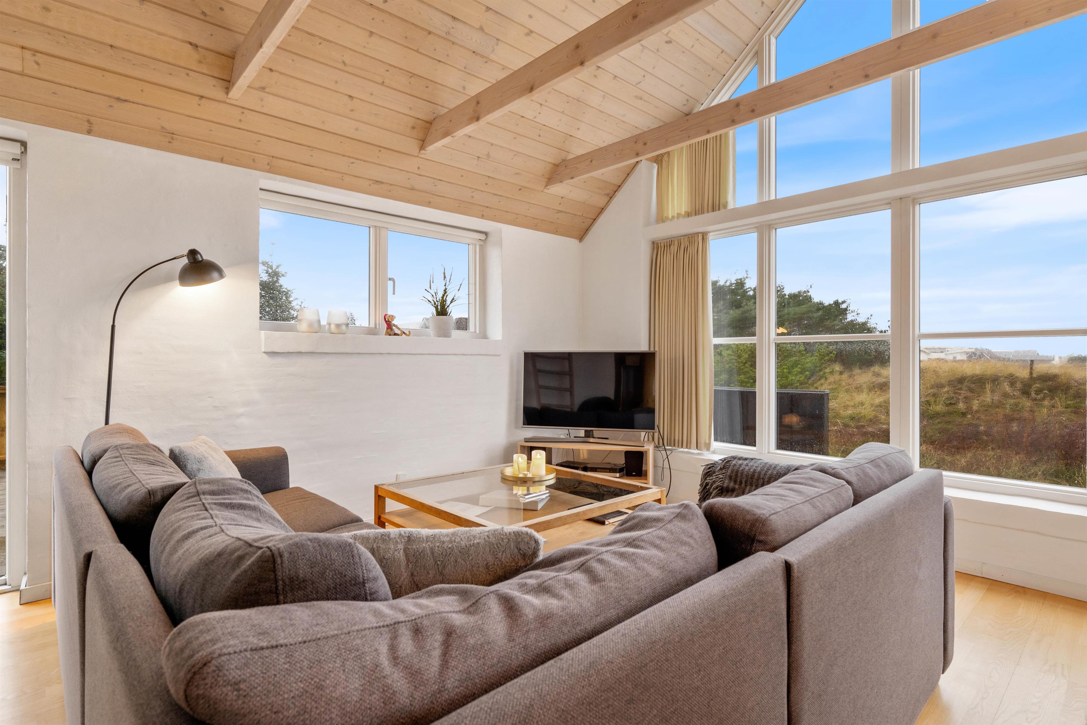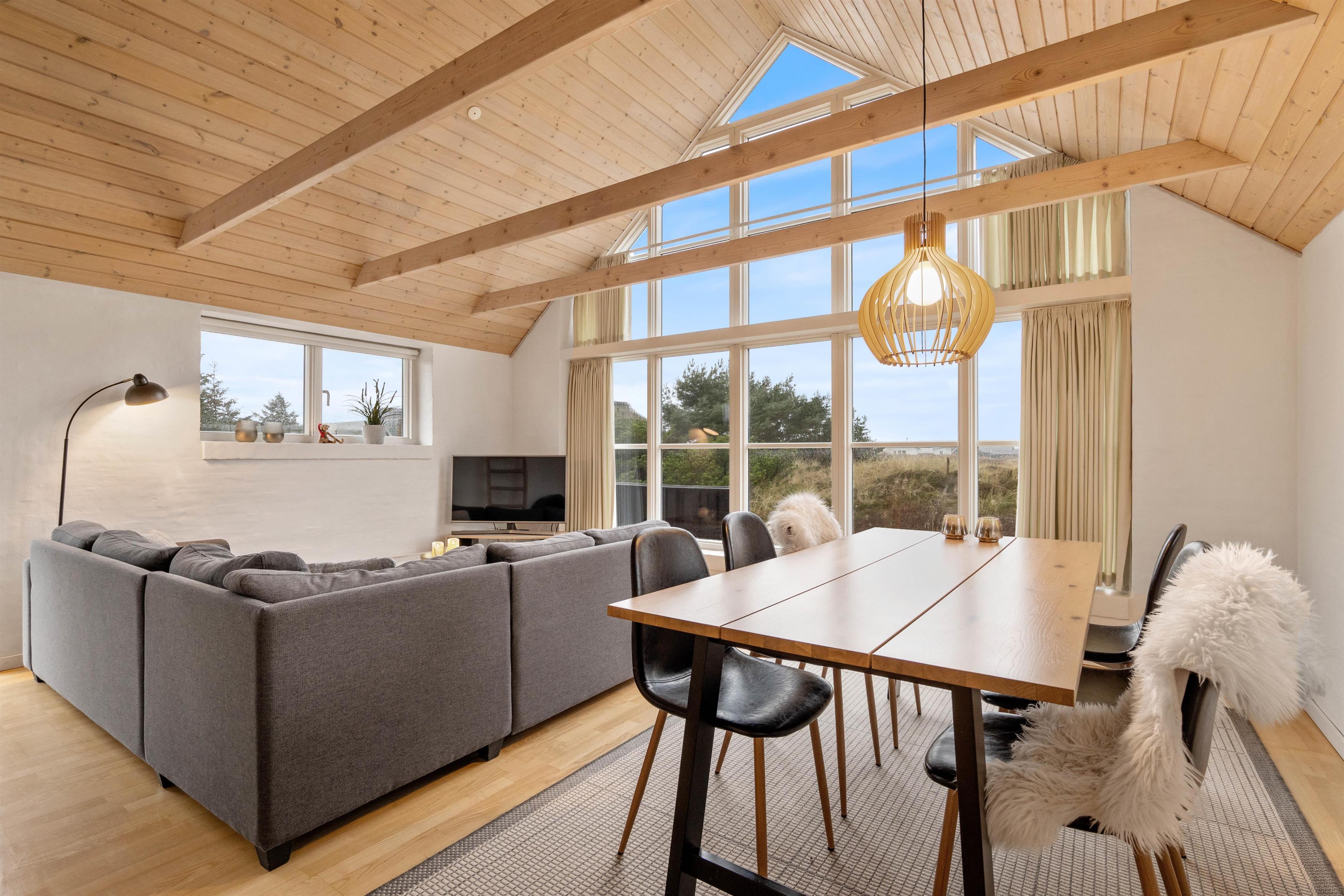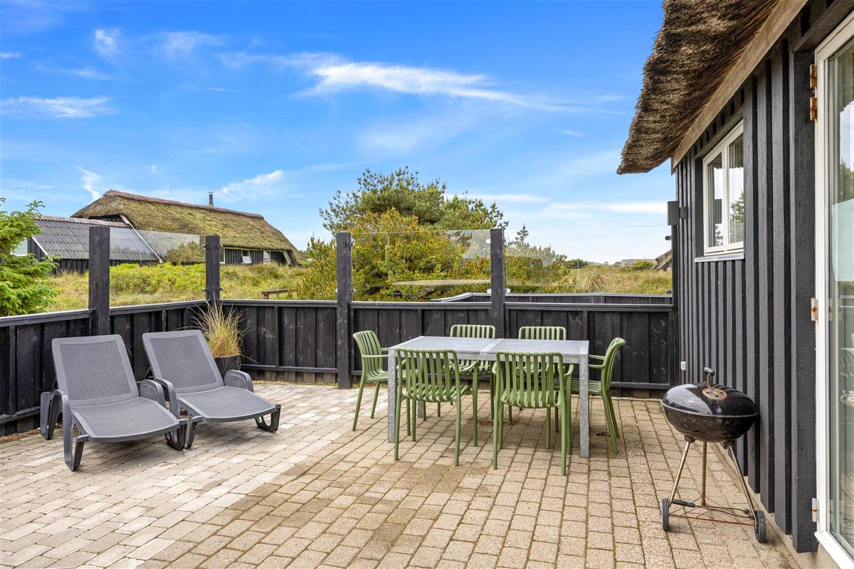 The 2,463-square-metre plot is situated in the beautiful natural dunes of Søndervig. After a long day in the fresh air, you can put your feet up in the sauna or whirlpool to recharge. For those who prefer outdoor relaxation, the hot tub allows you to enjoy wonderfully warm water while breathing in the fresh North Sea air. The hot tub features LED lighting and a massage system with 12 air jets - certainly a special highlight for ultimate relaxation.