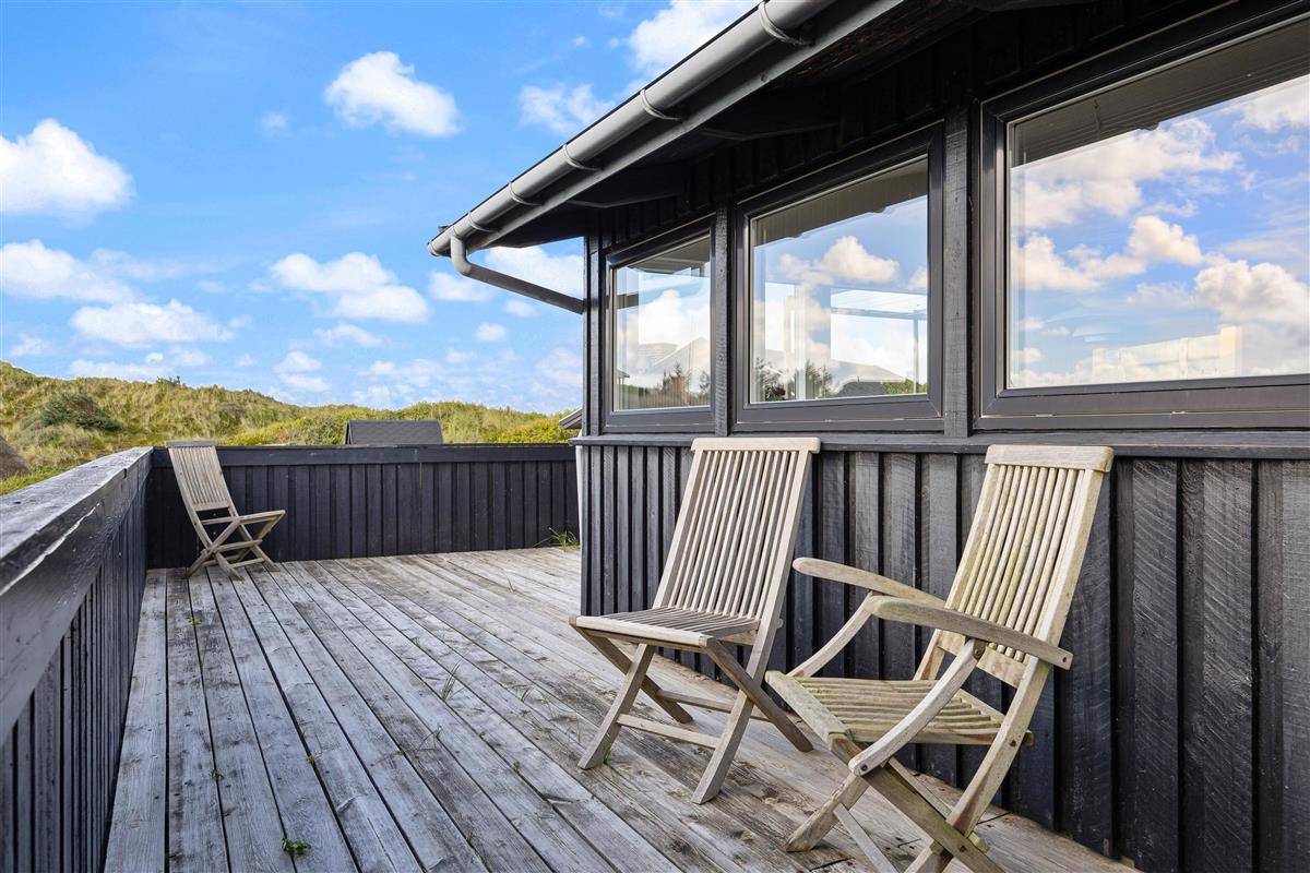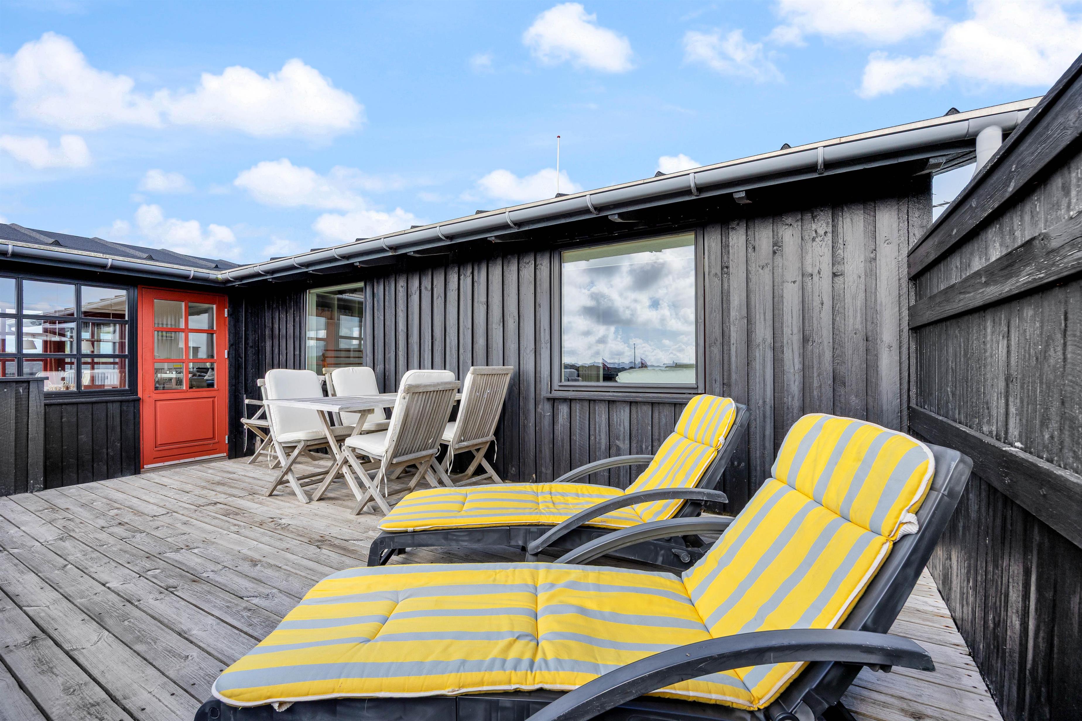 During your stay, you can enjoy the open yet enclosed wooden terrace. Relax on the sun loungers or make yourself comfortable in the garden chairs to enjoy the fine weather in peace. If you've brought a dog, you needn't worry about them wandering off, as the terrace is fully fenced.