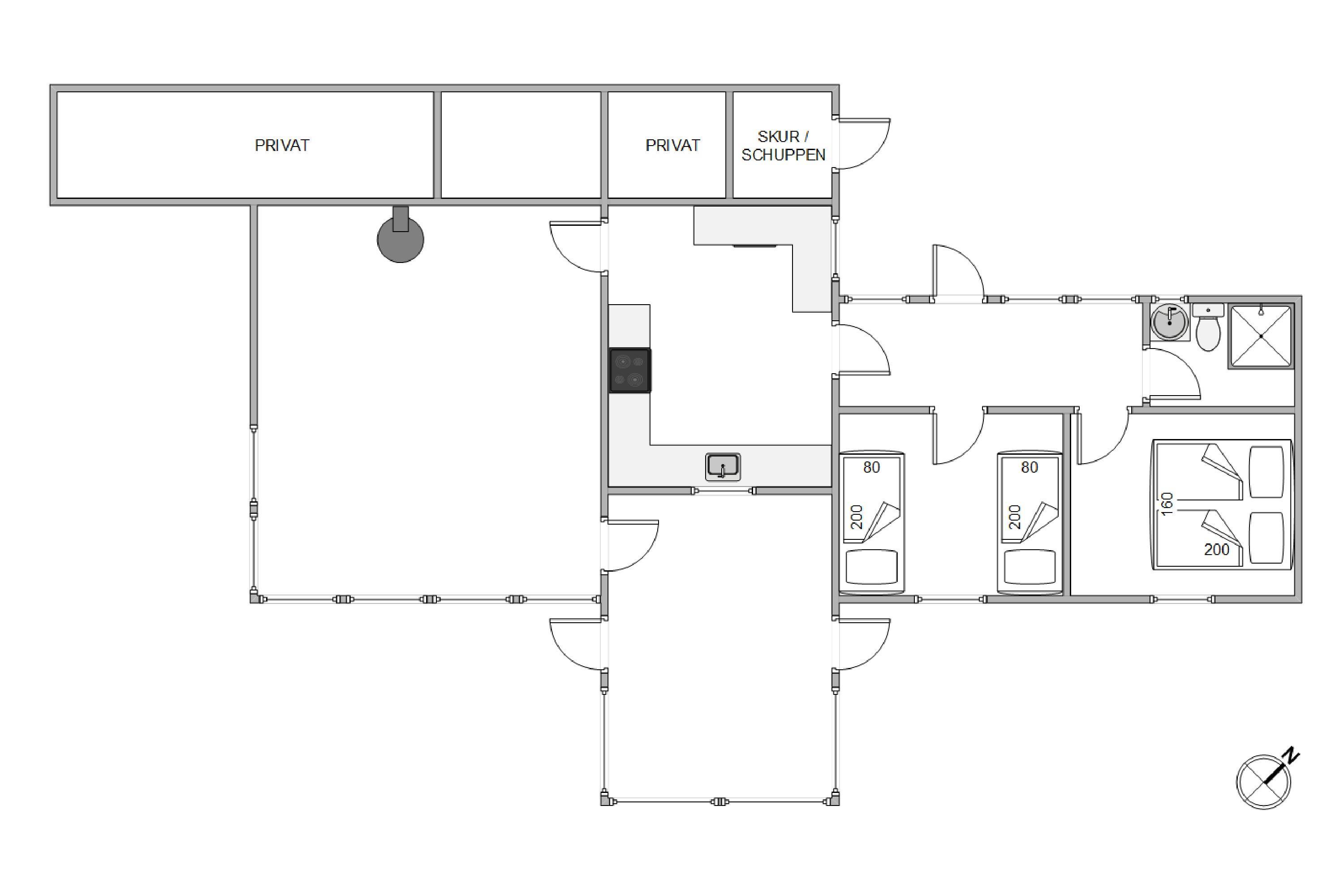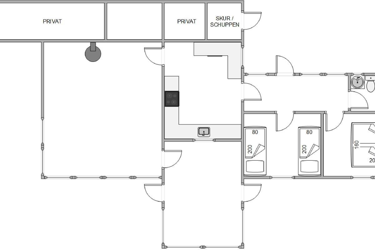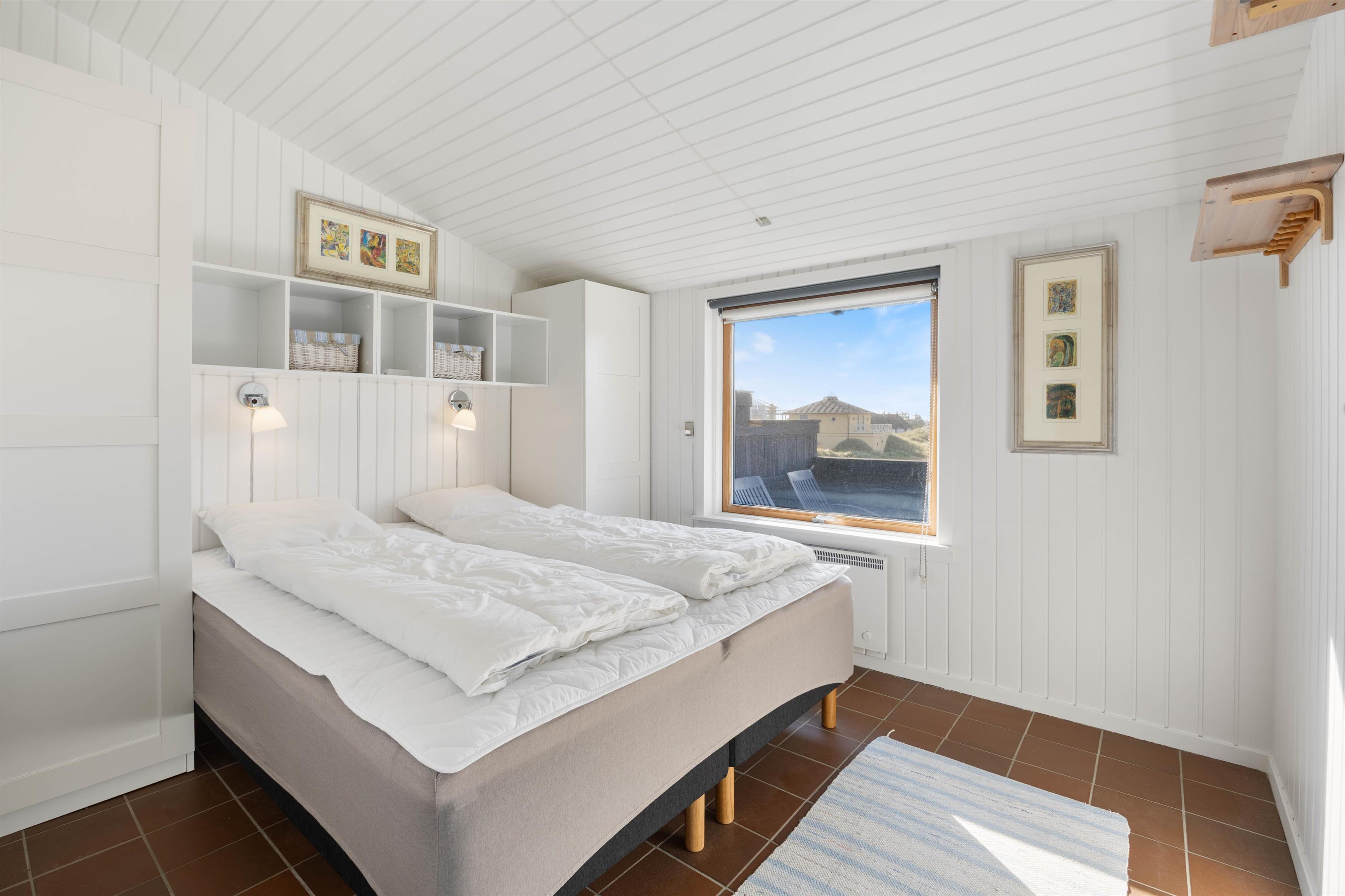 This 108-square-metre holiday home accommodates up to 4 people and offers numerous vantage points to enjoy the views, whether from the terrace or through the large windows. While preparing delicious meals in the kitchen or having a barbecue on the terrace, your family can enjoy board games at the large dining table or relax on the garden furniture on the terrace. After meals, the dishwasher takes care of the cleaning, giving you more time together. After a lovely day out, you can cosy up in the living room, enjoying the warmth and crackling of the wood-burning stove. End your evening with a film streamed directly from your mobile to the TV's built-in Chromecast (streaming service required). The holiday home has 2 bedrooms - one with a double bed and another with two single beds. The bathroom with shower is located adjacent to the bedrooms.