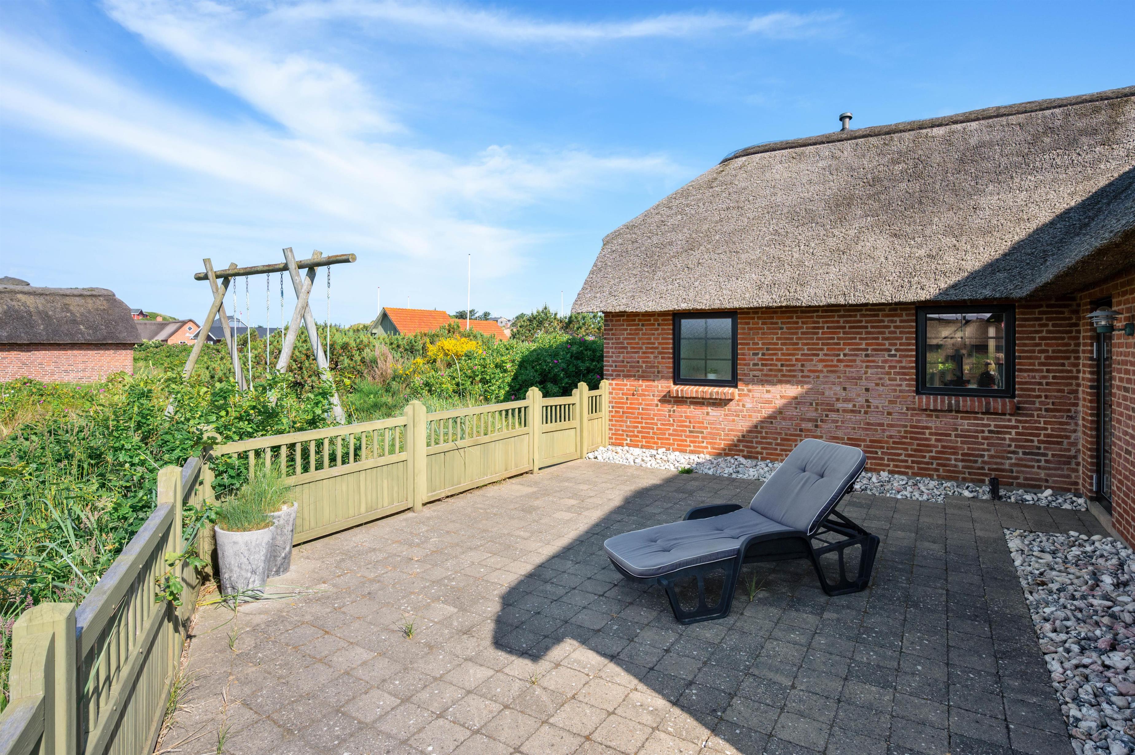 The outdoor area features a large enclosed terrace, ensuring little ones can't wander off on solo adventures. Relax on the garden furniture with a good book or simply enjoy the fresh air and sunshine. In the evening, host a delicious barbecue while listening to the sound of the North Sea. For older children, there's a sandbox and swing outside the terrace area. When returning from the beach, you can rinse off sandy feet at the outdoor shower, available from April to November.