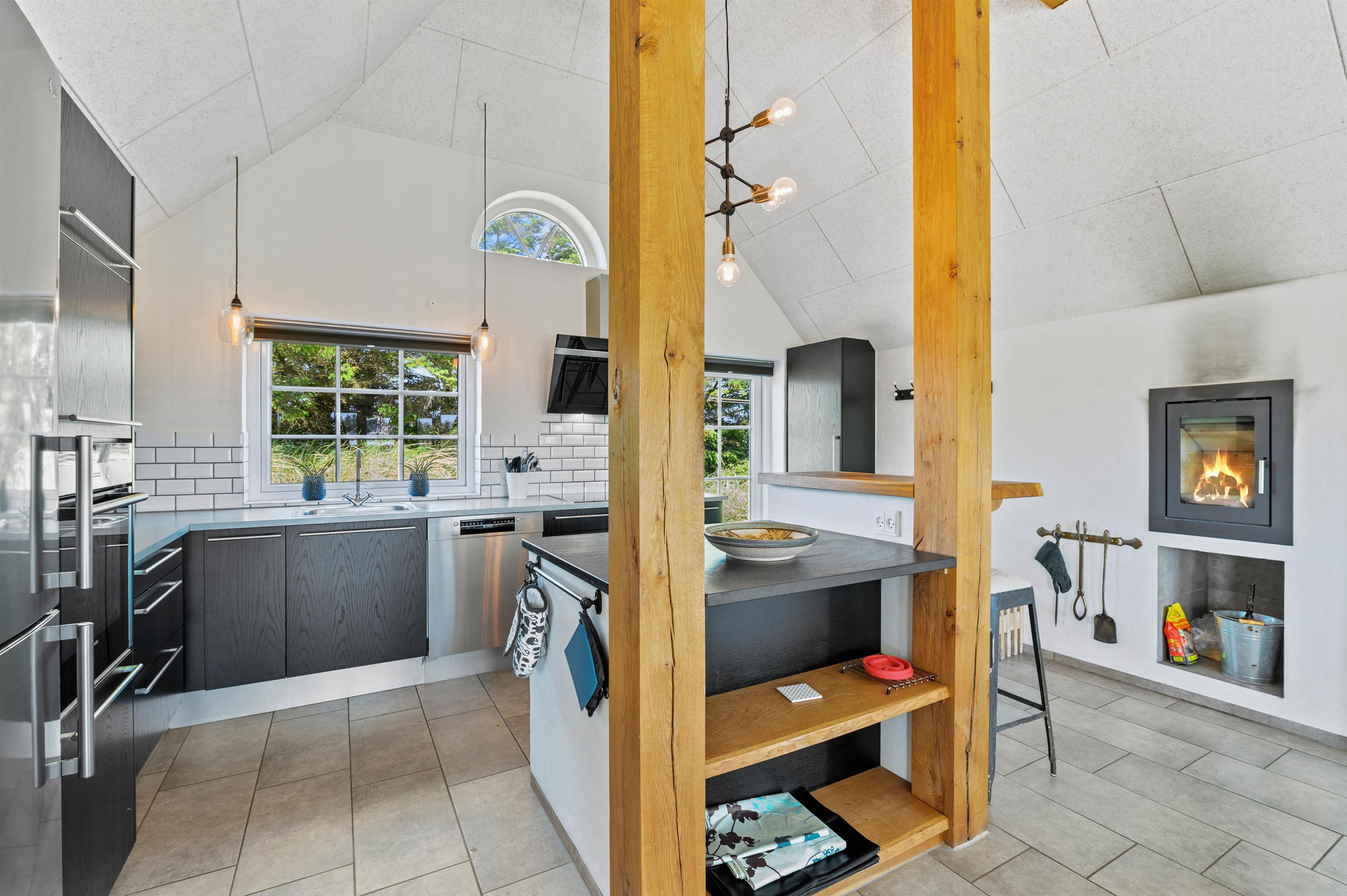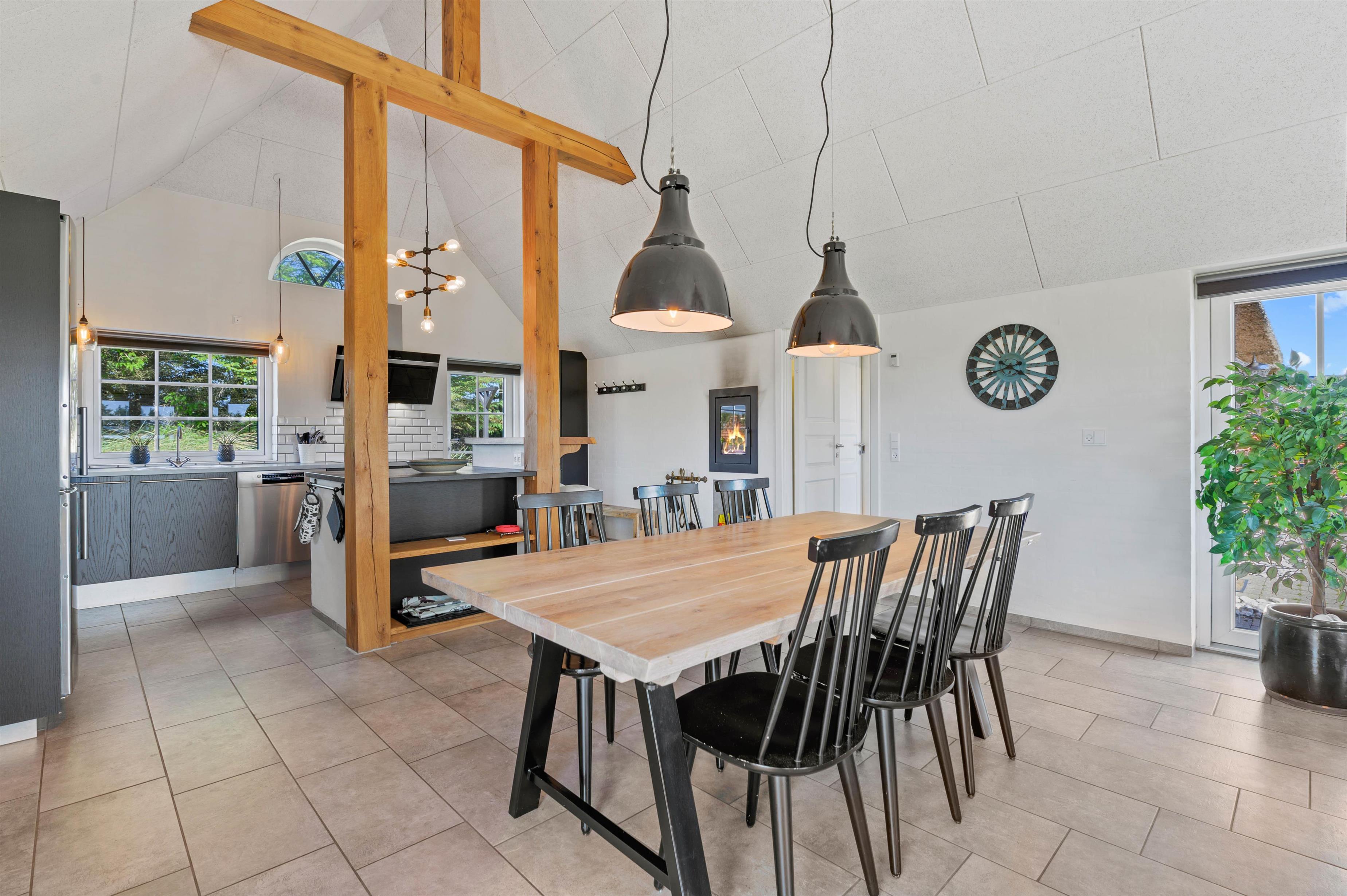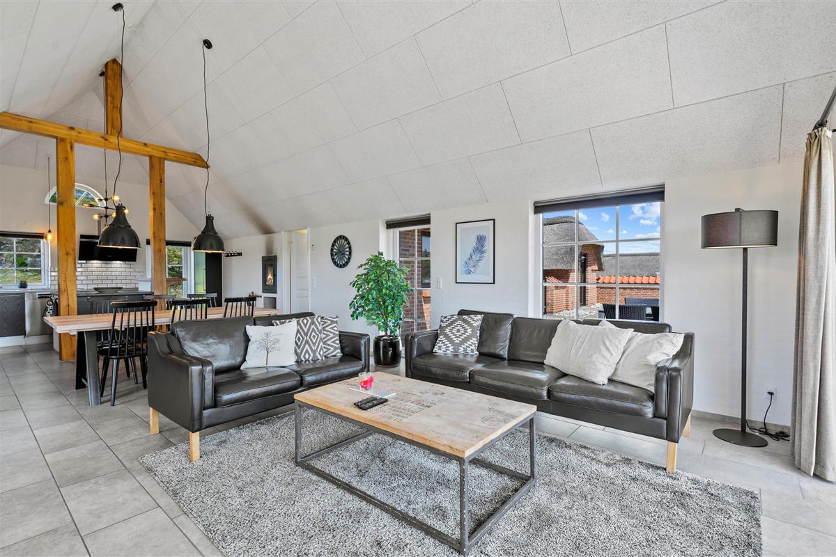 This Søndervig holiday home accommodates up to six people and 1 dog, perfect for families and friends. You'll appreciate the sociable atmosphere created by the open-plan design, ensuring nobody feels left out while the chef prepares delicious meals and the dishwasher handles the cleanup afterwards. The living area features underfloor heating powered by an air-to-water heat pump. On cooler days, the wood-burning stove provides cosy warmth and creates special moments. Here you can play cards together or relax on the sofa - everyone will find their perfect spot.
