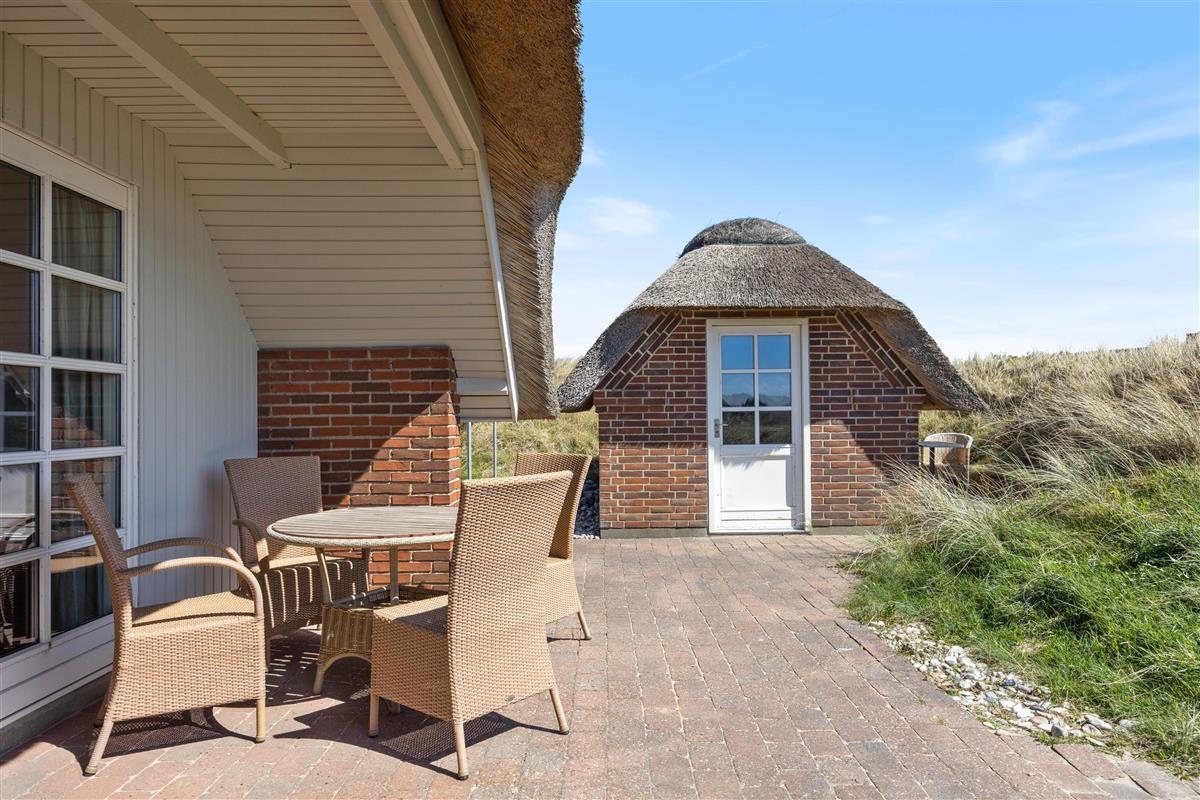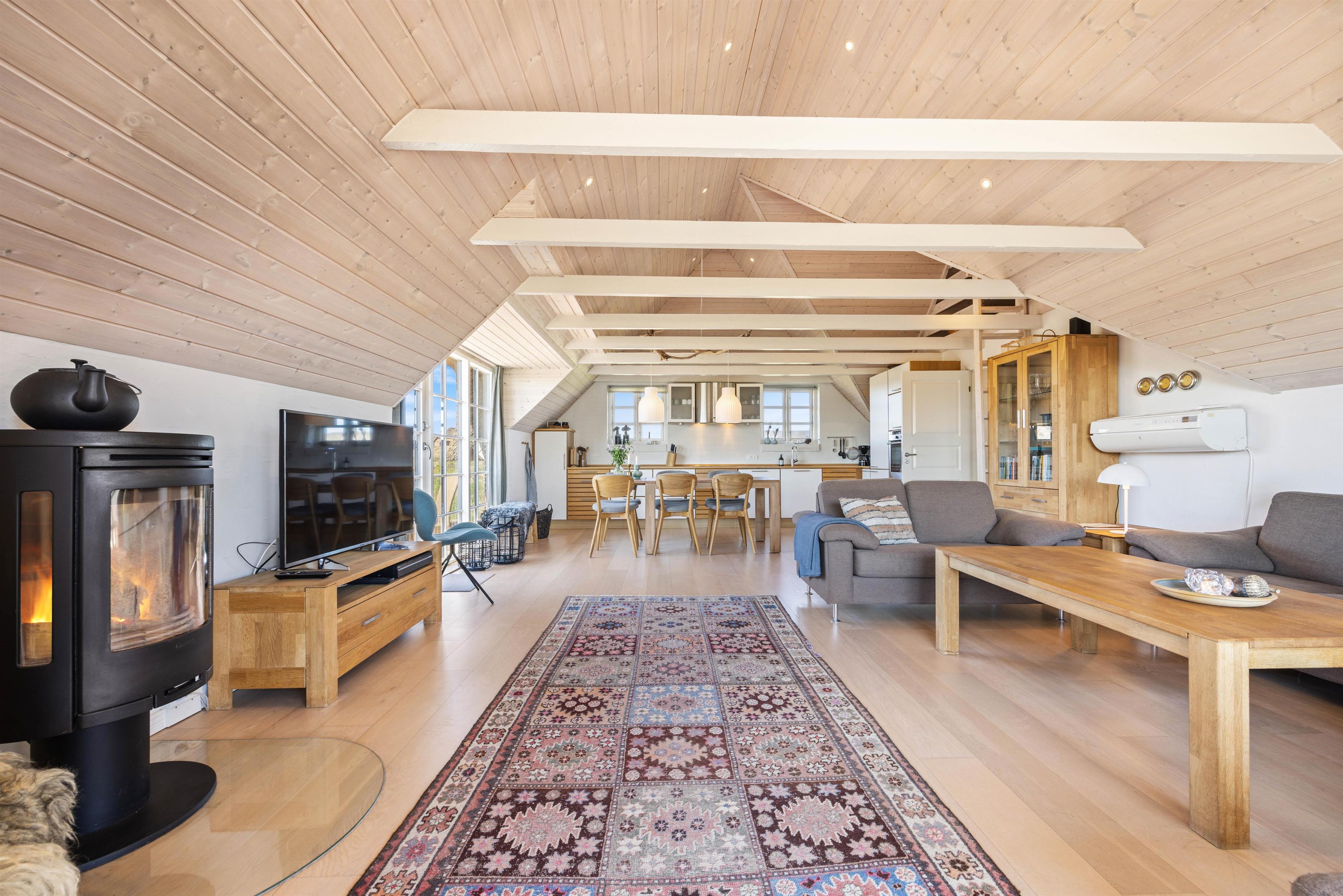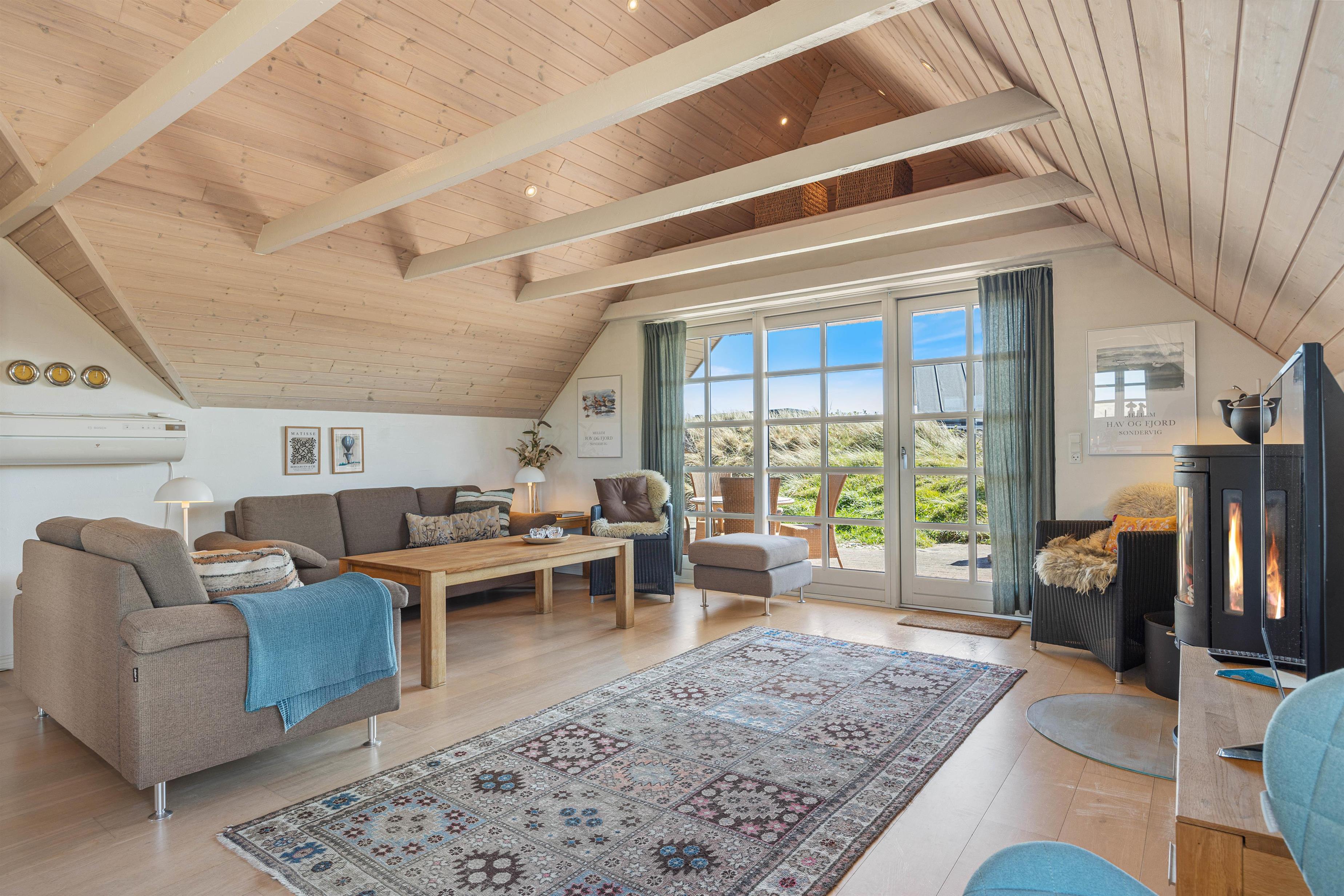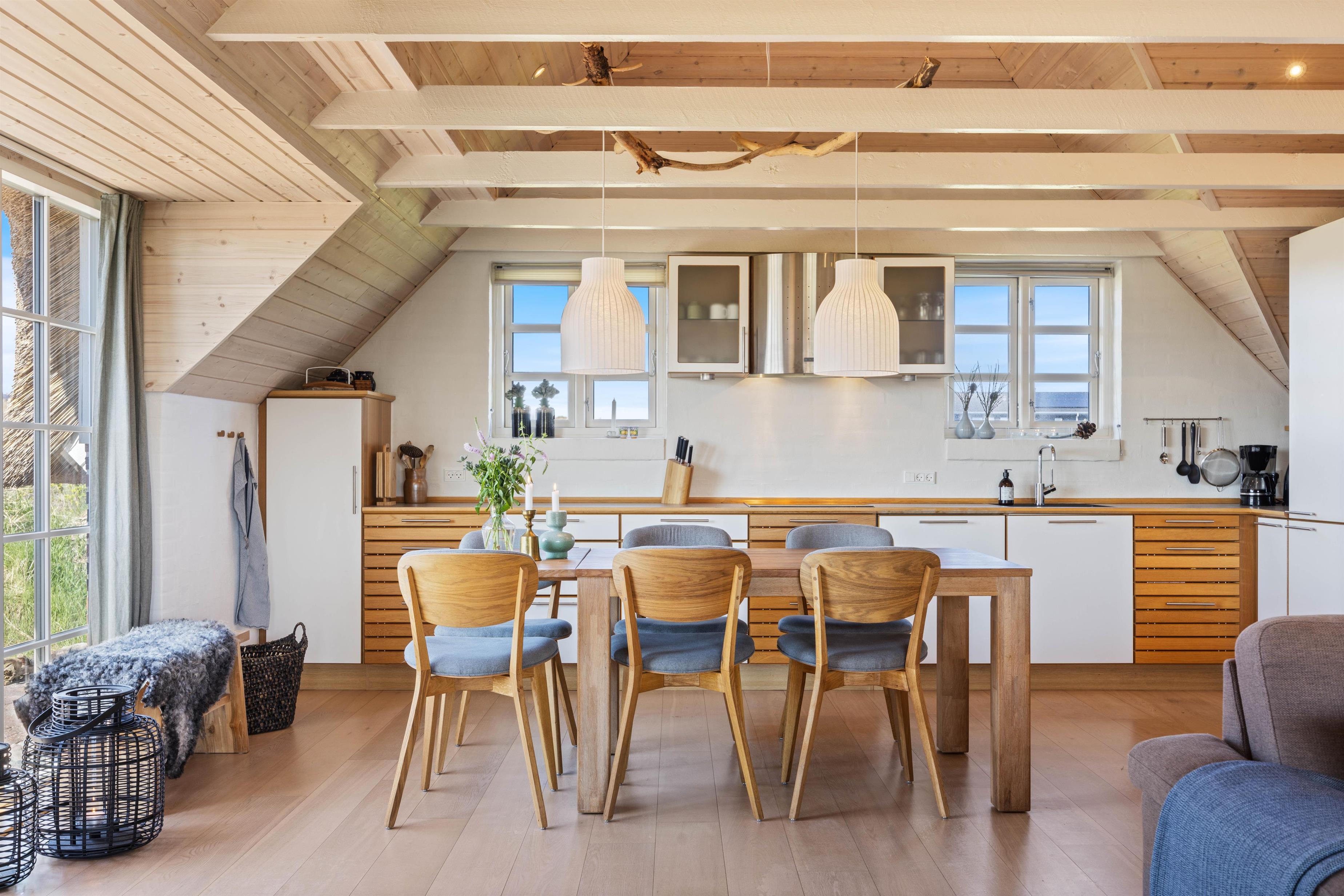 The holiday home nestles charmingly among the surrounding dunes - perfect for enjoying nature from the terrace. Inside, you'll be welcomed by high ceilings, light colours and modern furniture. The atmosphere is relaxed and pleasant, with thoughtful attention to detail adding a tasteful touch to the décor. The classic wood-burning stove provides warmth throughout the year, while the surrounding dunes offer natural shelter.