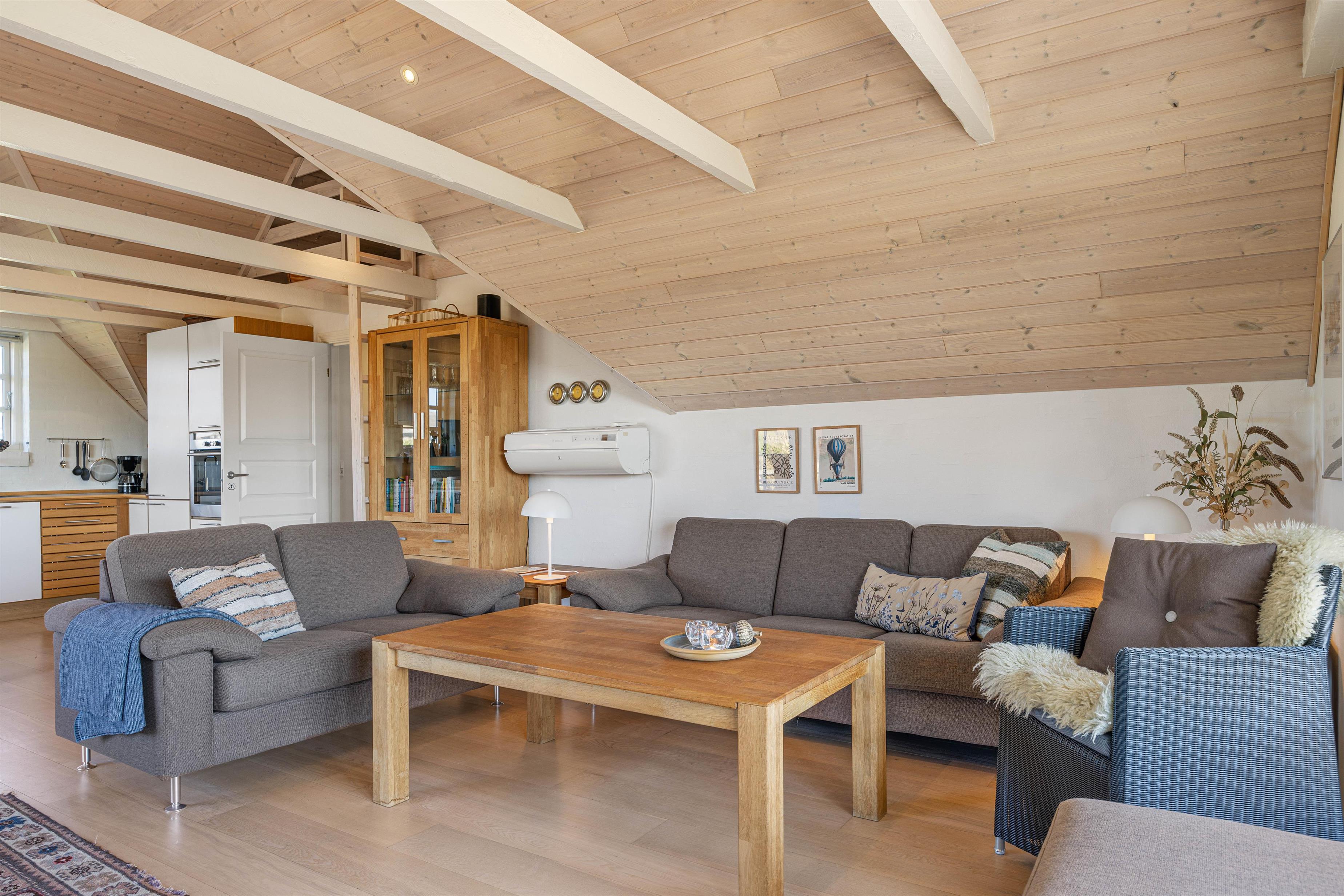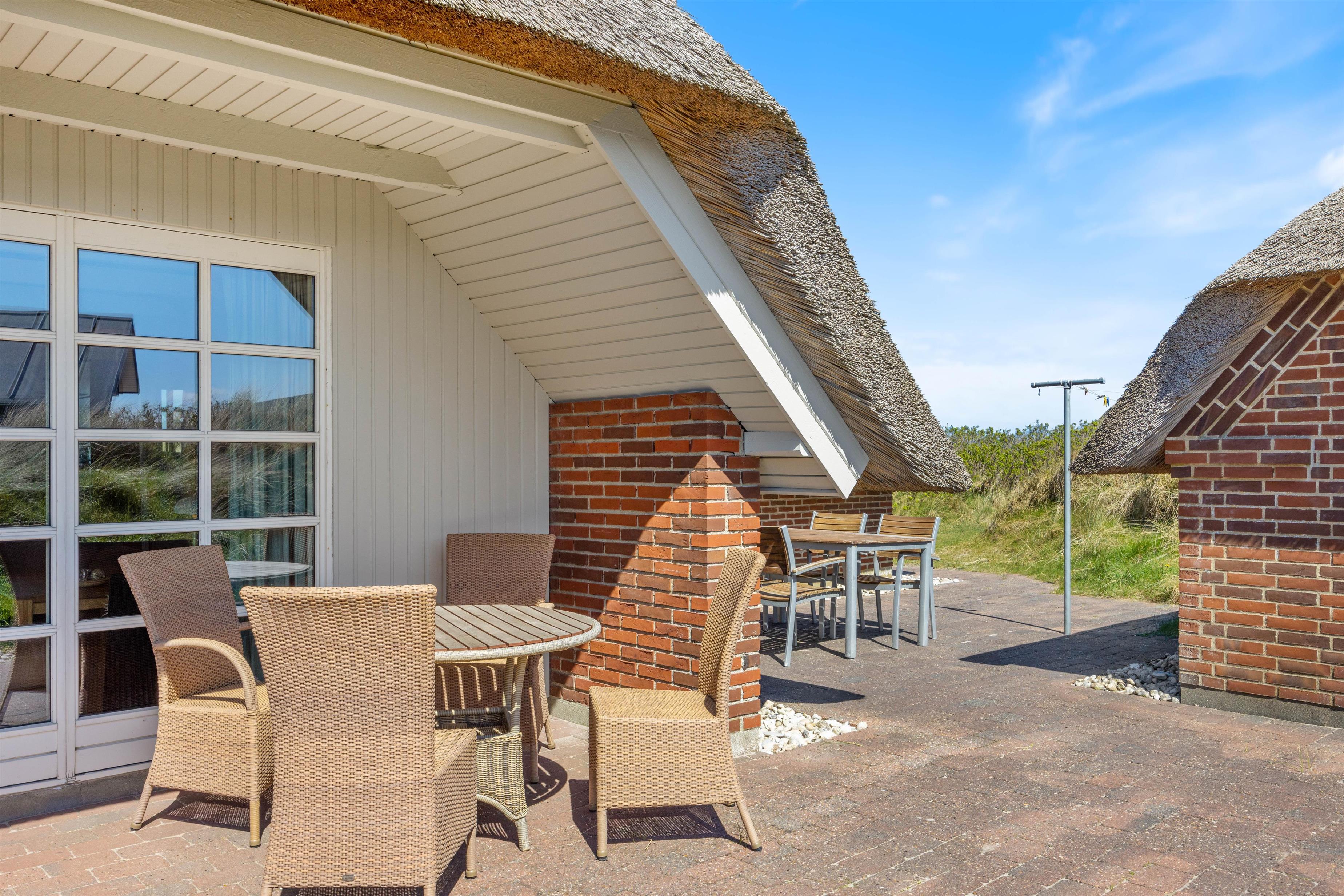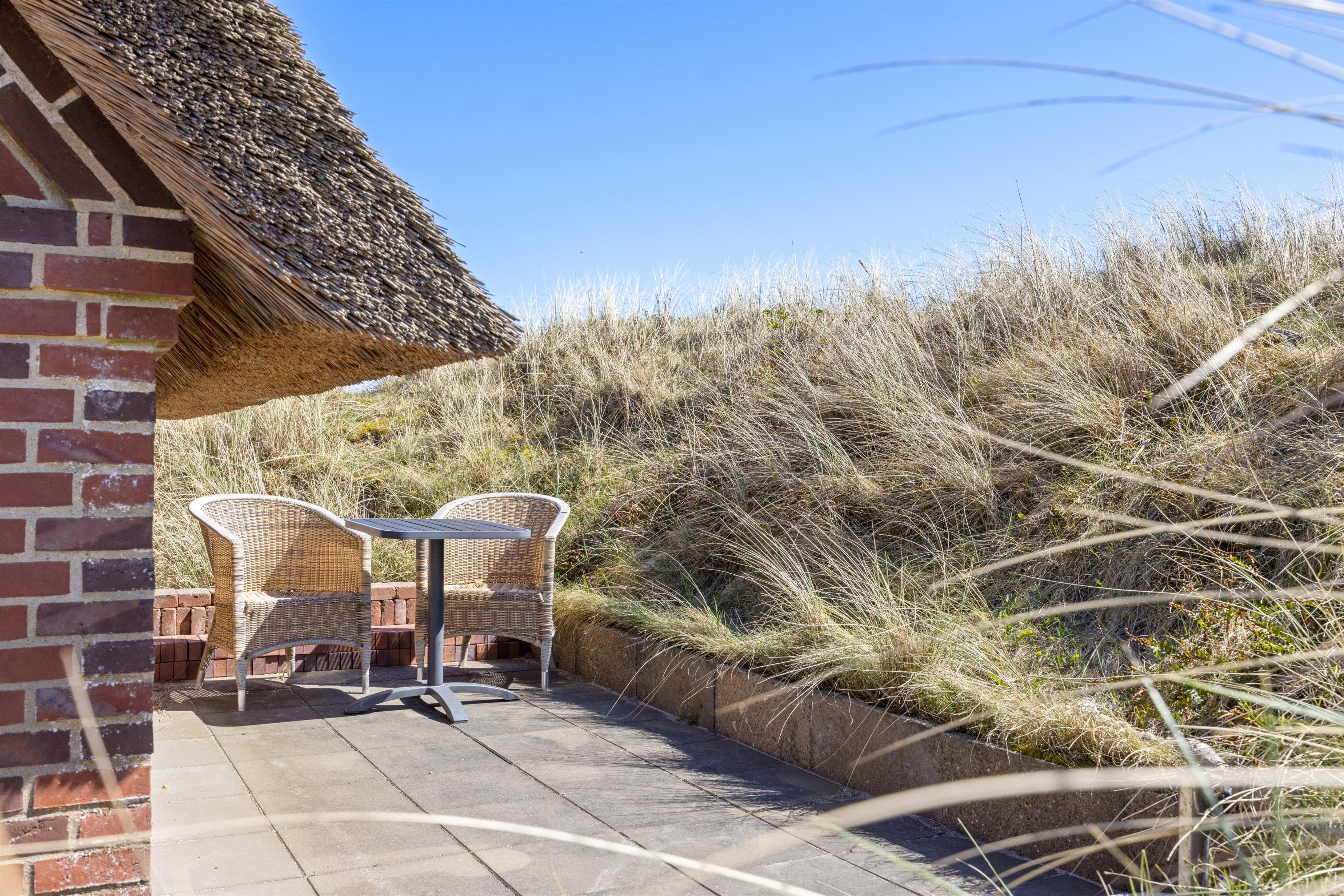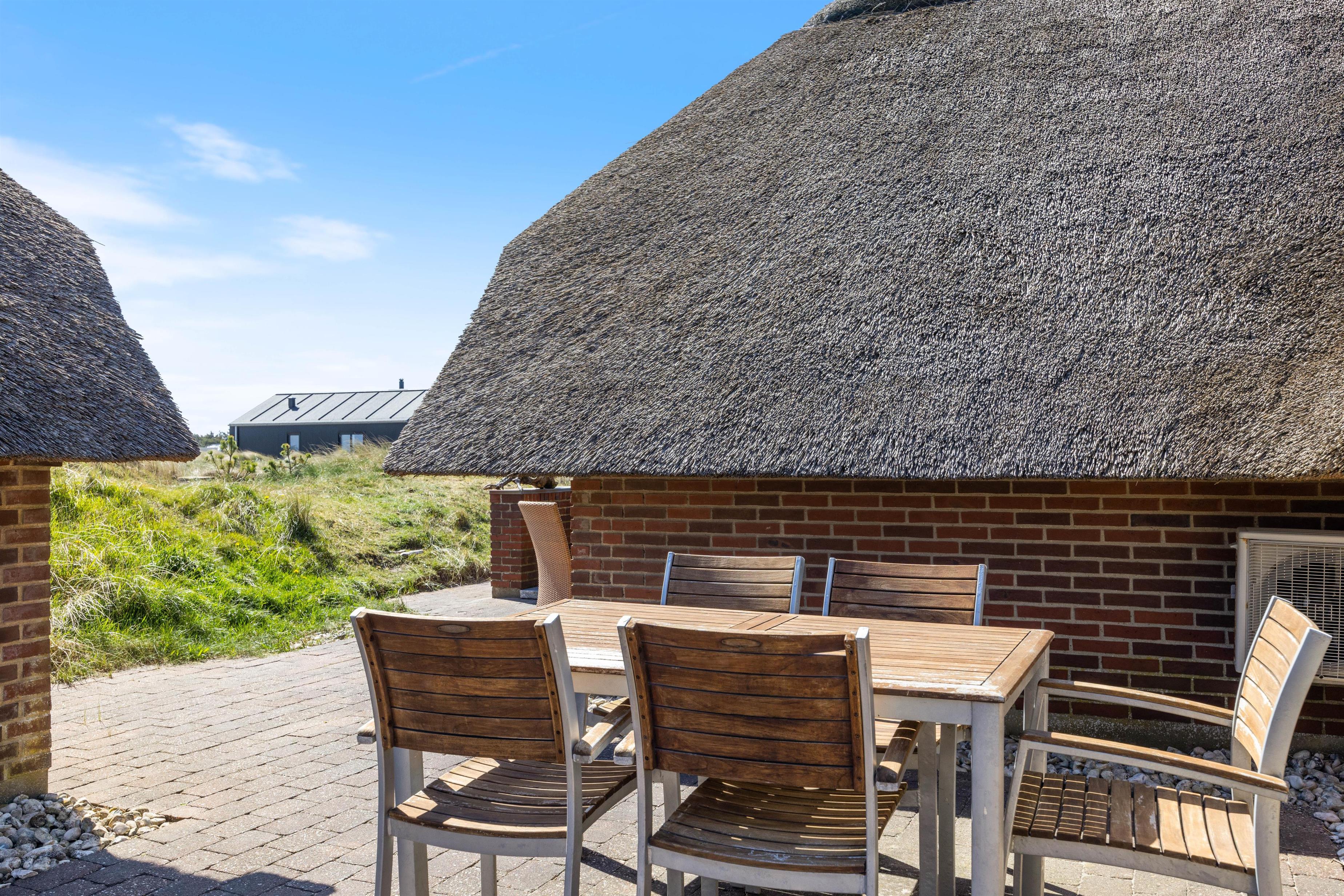 The holiday home nestles charmingly among the surrounding dunes - perfect for enjoying nature from the terrace. Inside, you'll be welcomed by high ceilings, light colours and modern furniture. The atmosphere is relaxed and pleasant, with thoughtful attention to detail adding a tasteful touch to the décor. The classic wood-burning stove provides warmth throughout the year, while the surrounding dunes offer natural shelter.