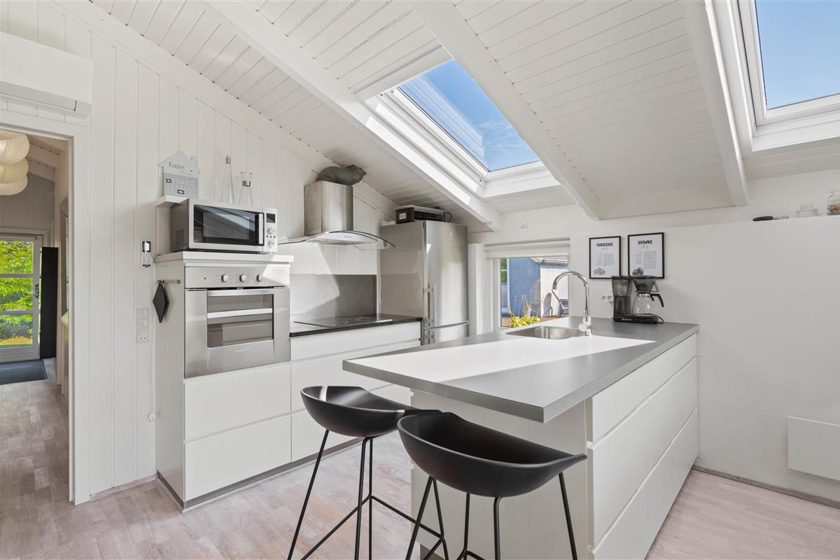 The holiday home is bright, well-maintained and cosily furnished. Large windows and several skylights flood the holiday home with natural daylight. You'll feel at home straight away. The very well-equipped kitchen is integrated into the open-plan living and dining area. This allows you to remain part of family life while cooking, chatting at the breakfast bar, or watching the children playing.