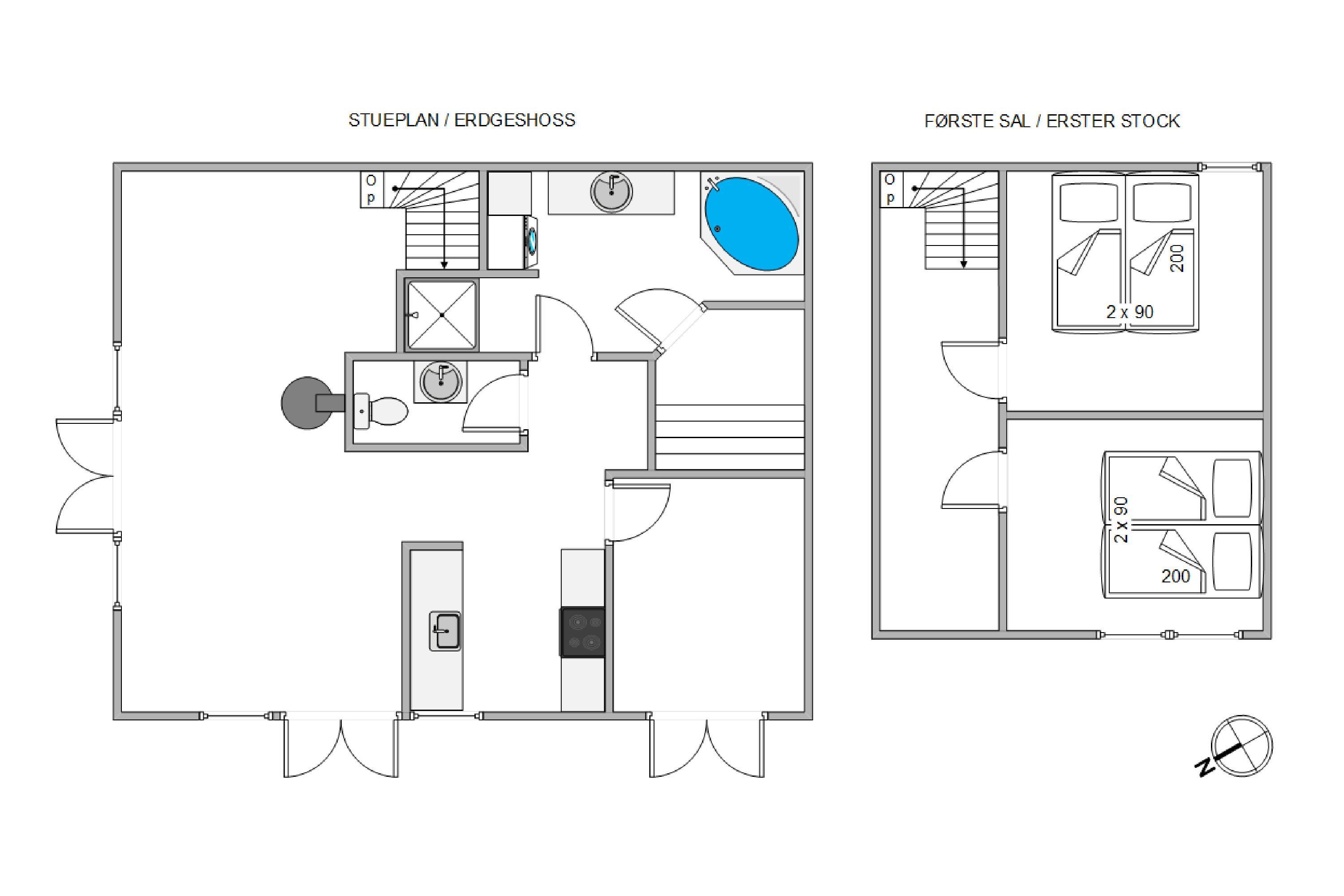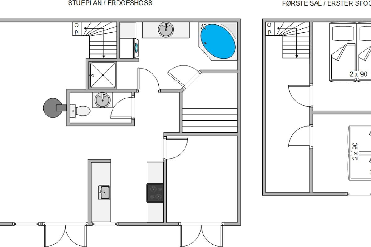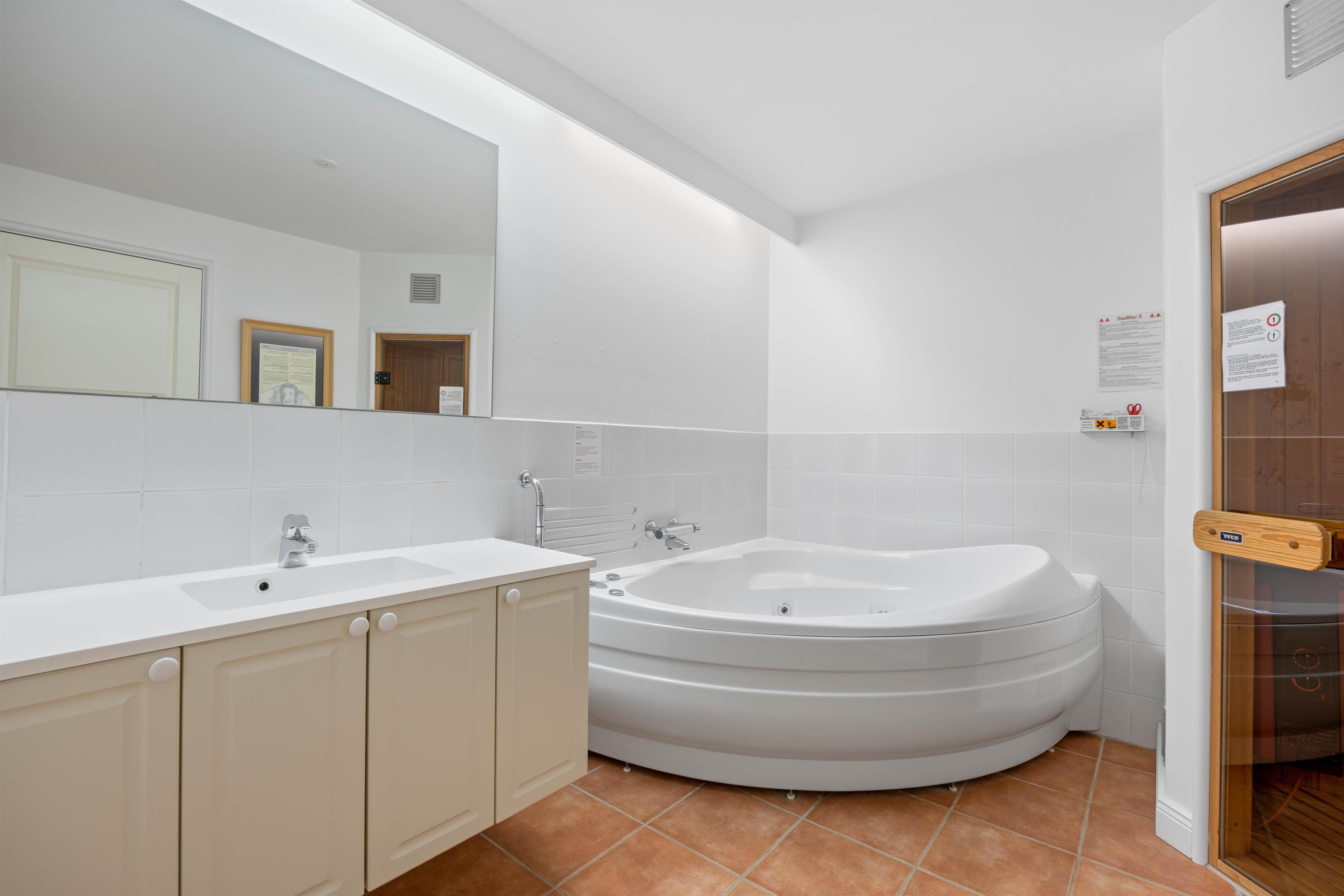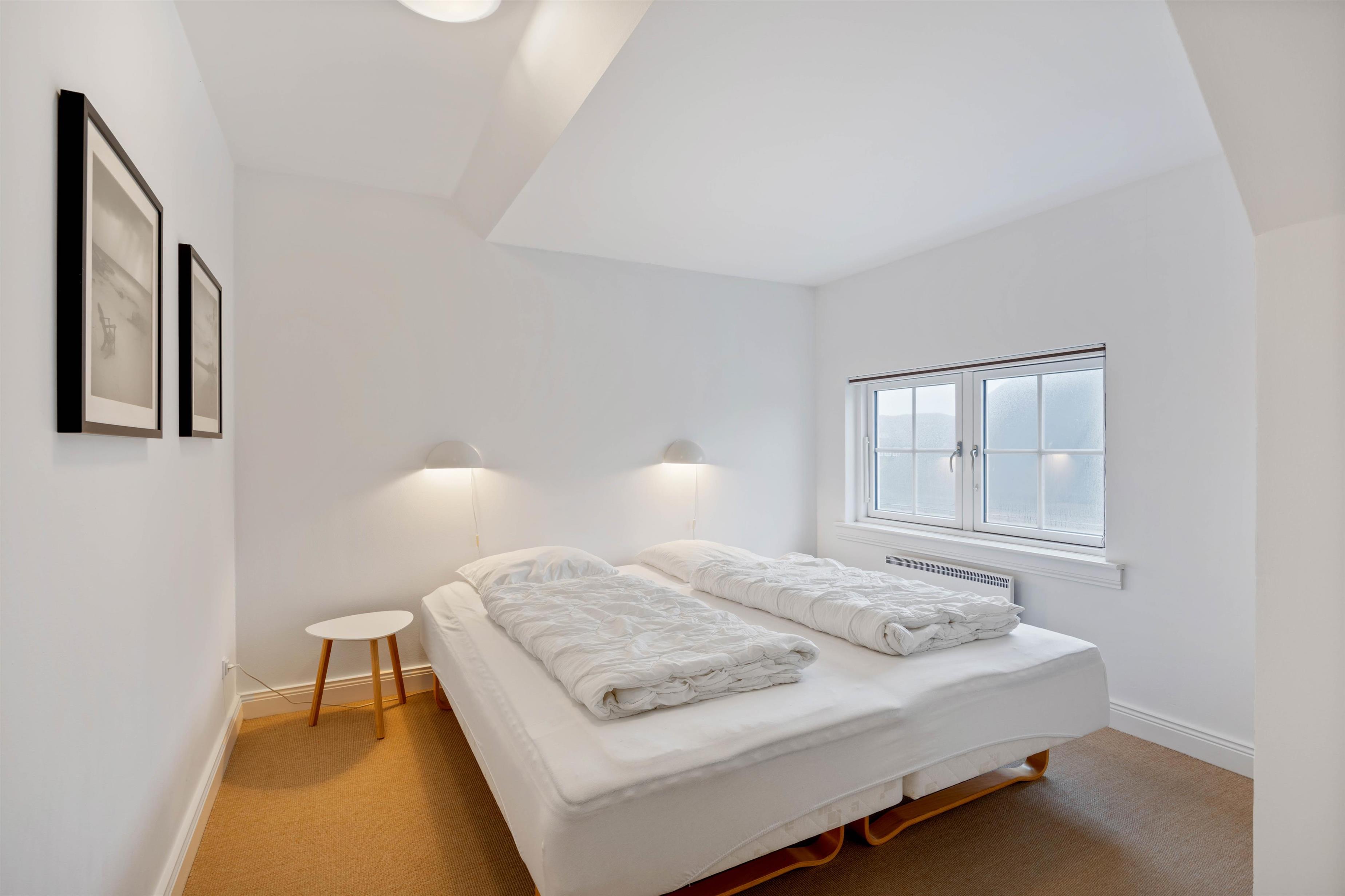 Also on the ground floor is the bathroom with its private sauna, perfect for warming up and unwinding after a long walk along the North Sea coast. The toilet is separate from the main bathroom, and both spaces feature underfloor heating to keep your feet warm on chilly days.