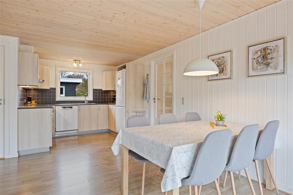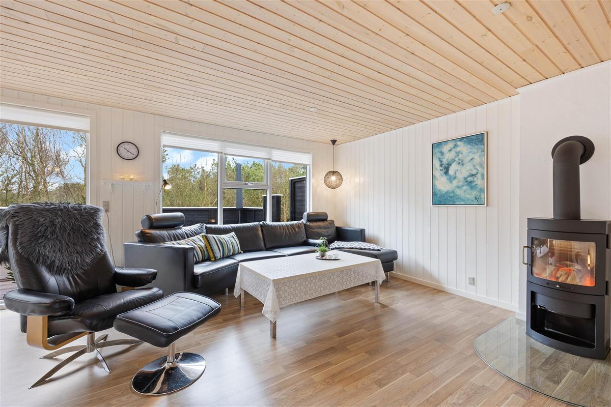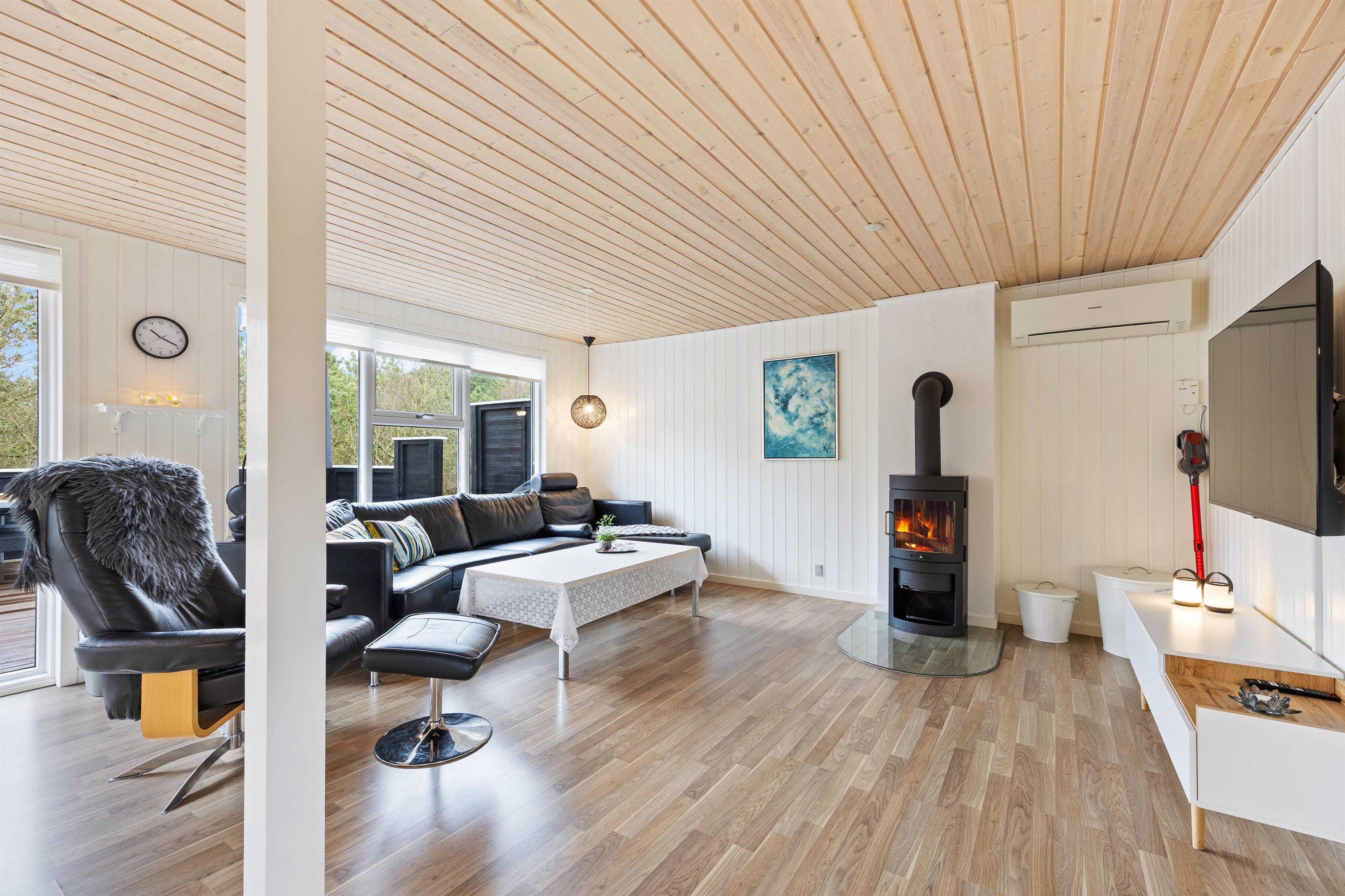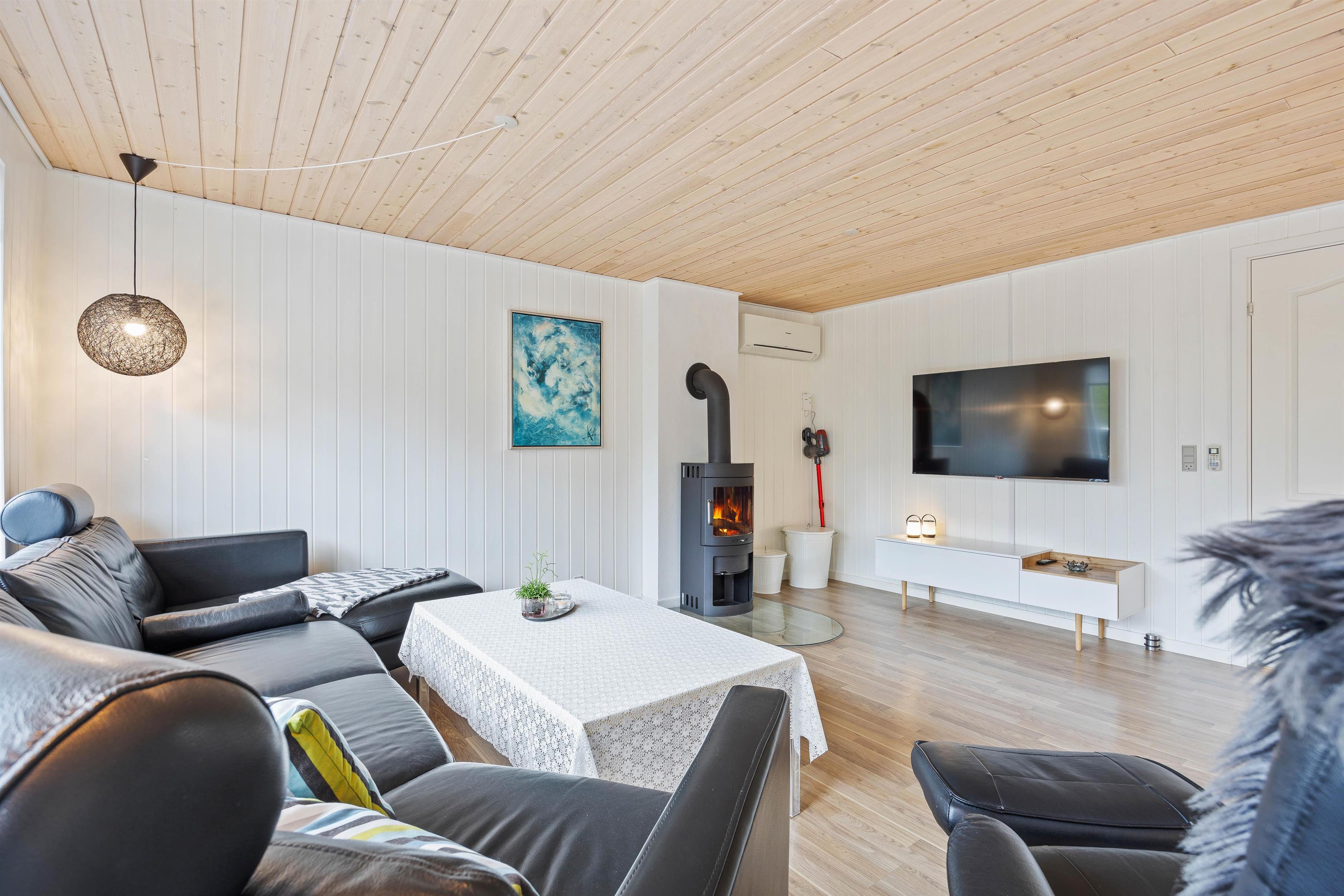 The holiday home at Fyrrekrat 3 is bright and comfortably furnished. The living/dining area with kitchen is open plan, so no one has to stand alone in the kitchen. You can spend lots of time together, as the dishwasher takes care of the tedious washing up after meals. The sitting area with sofa, armchair, and wood-burning stove creates a cozy atmosphere. The reading lamps provide enough light for you to read a book or do your handicrafts. You can gather around the dining table to make plans for the next few days. An energy-saving air-to-air heat pump has been installed to ensure a pleasant and constant indoor climate in the living area.