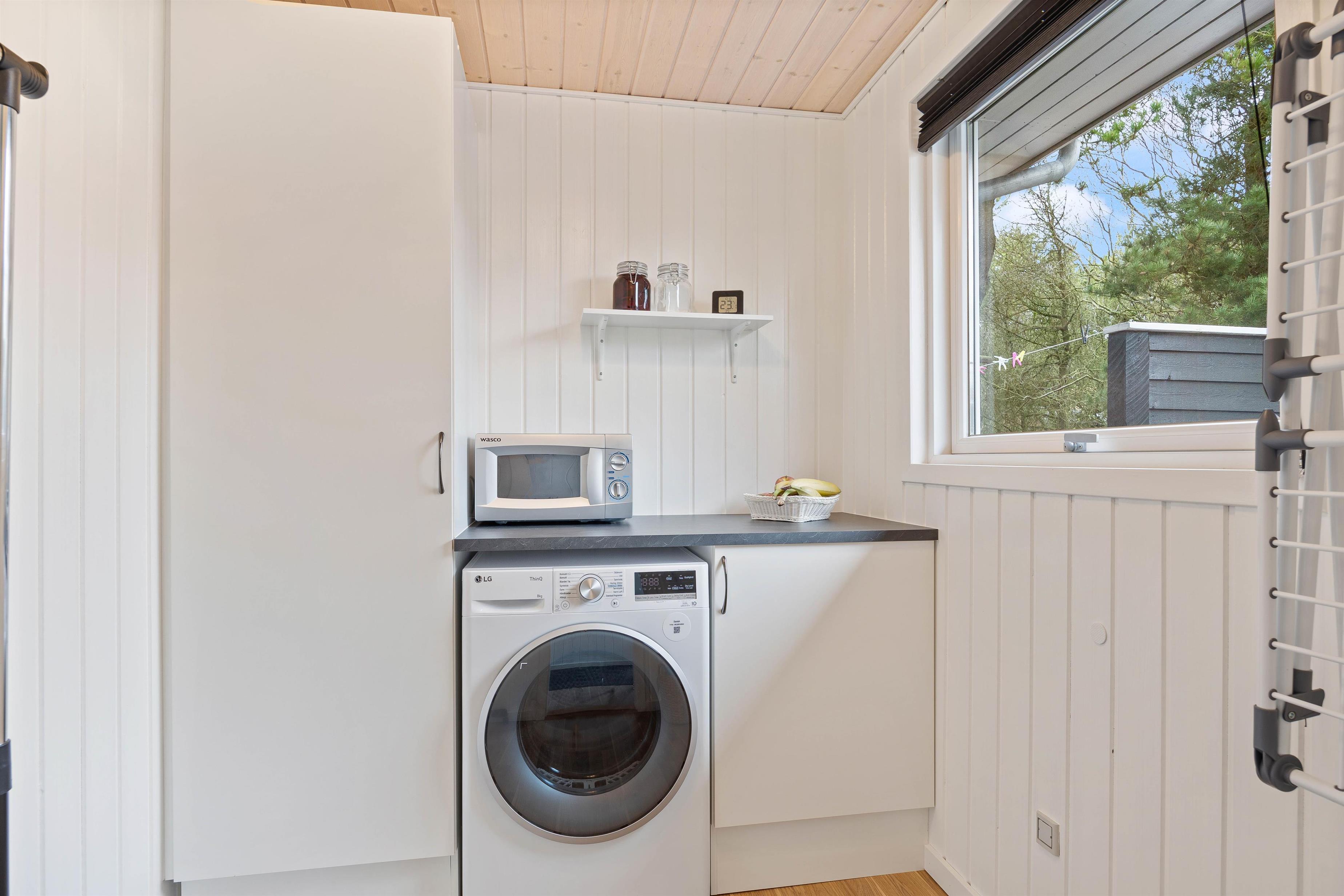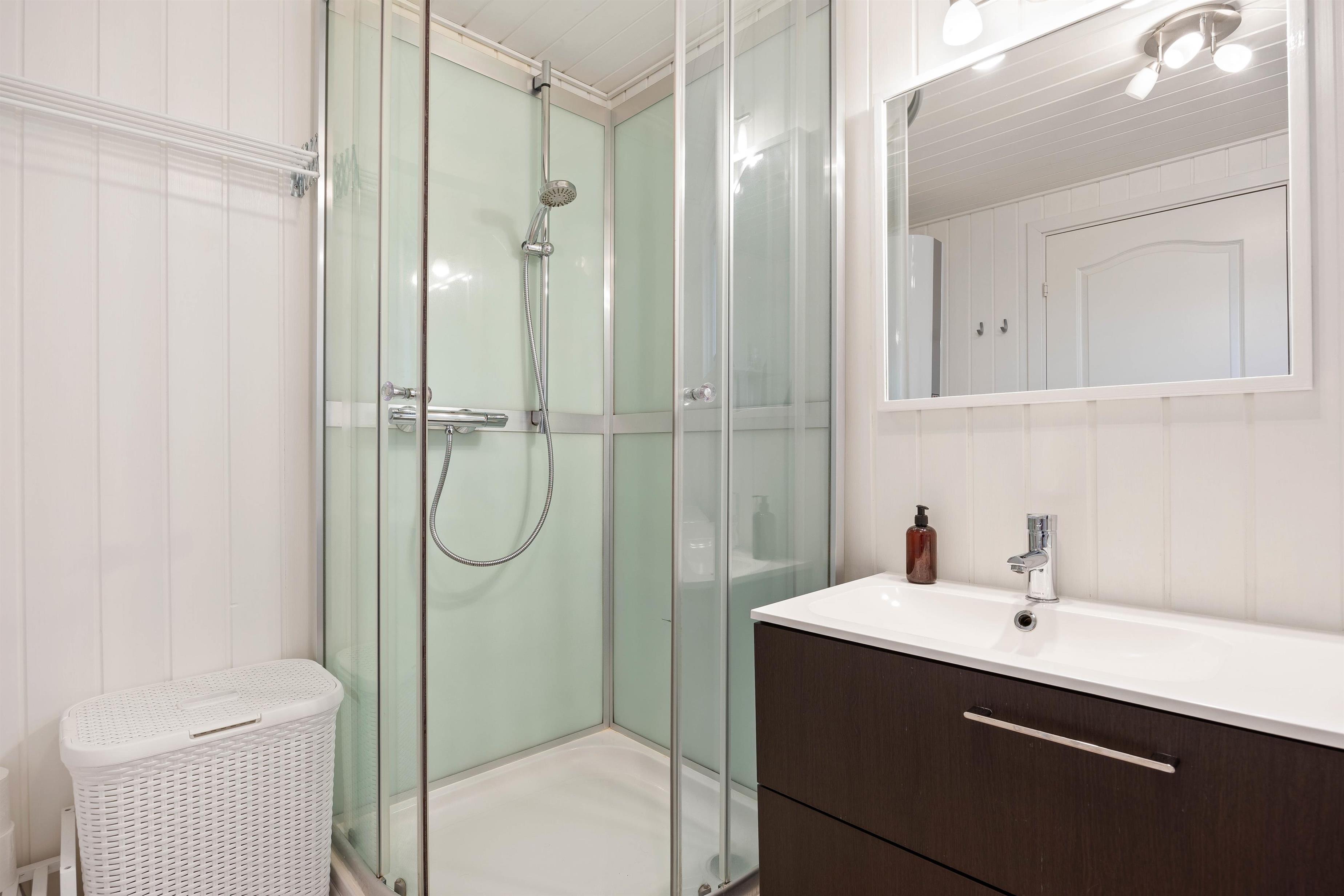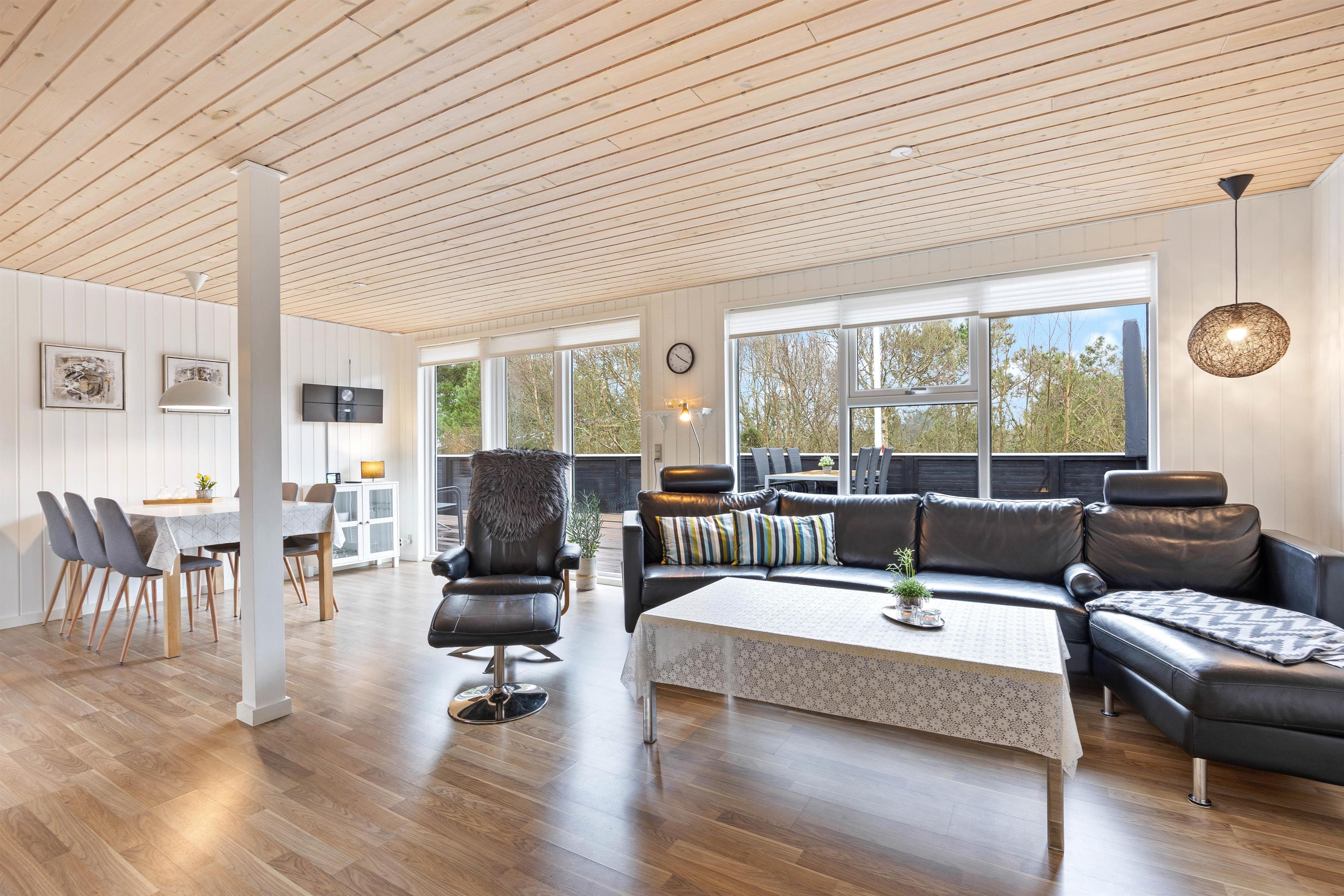 The holiday home at Fyrrekrat 3 is bright and comfortably furnished. The living/dining area with kitchen is open plan, so no one has to stand alone in the kitchen. You can spend lots of time together, as the dishwasher takes care of the tedious washing up after meals. The sitting area with sofa, armchair, and wood-burning stove creates a cozy atmosphere. The reading lamps provide enough light for you to read a book or do your handicrafts. You can gather around the dining table to make plans for the next few days. An energy-saving air-to-air heat pump has been installed to ensure a pleasant and constant indoor climate in the living area.