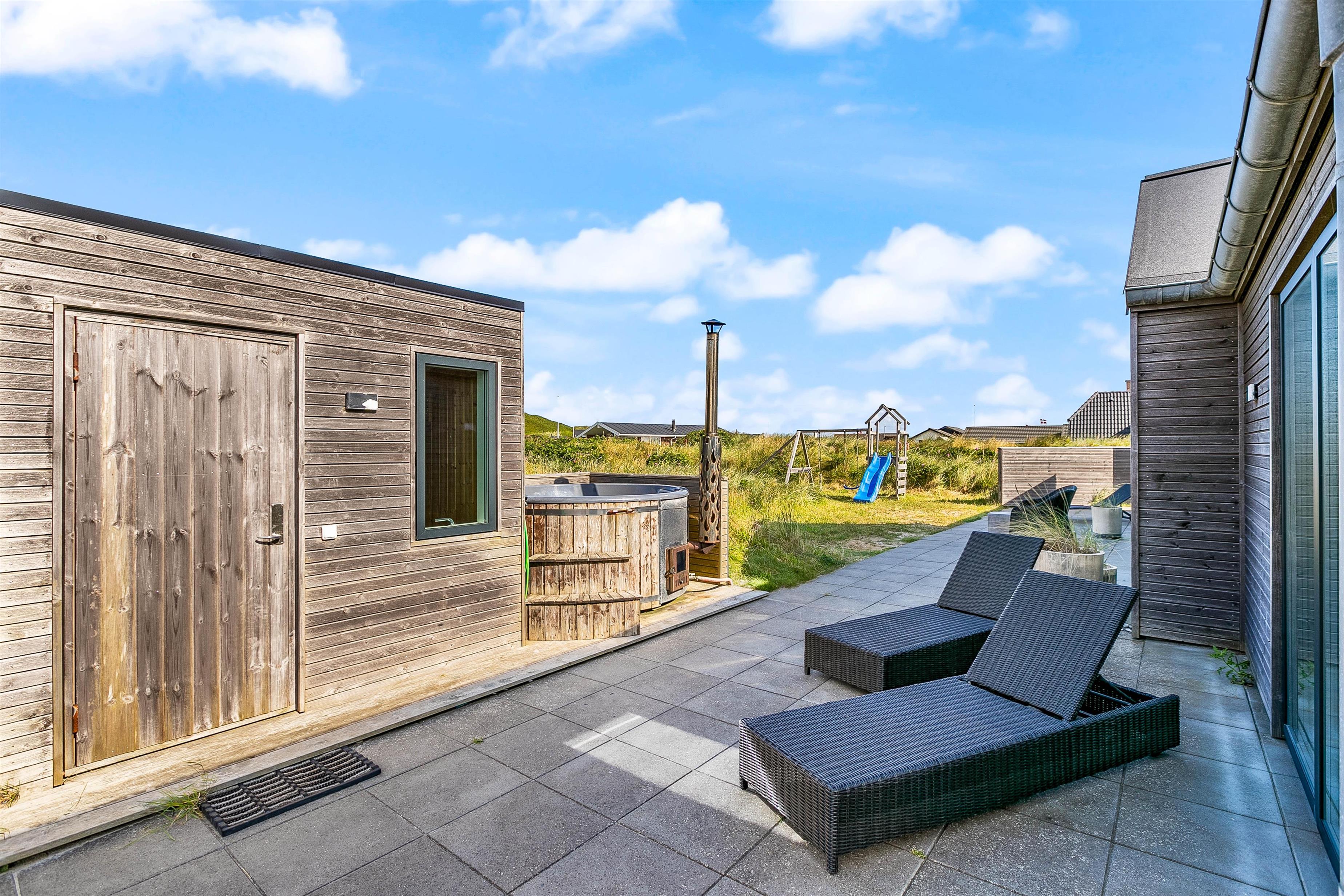 Great care has been taken to ensure a wonderful holiday experience. Whether relaxing on the sofa in front of the crackling wood-burning stove, warming up in the sauna, or enjoying the bubbling hot tub on the terrace - with views over the beautiful dune landscape.