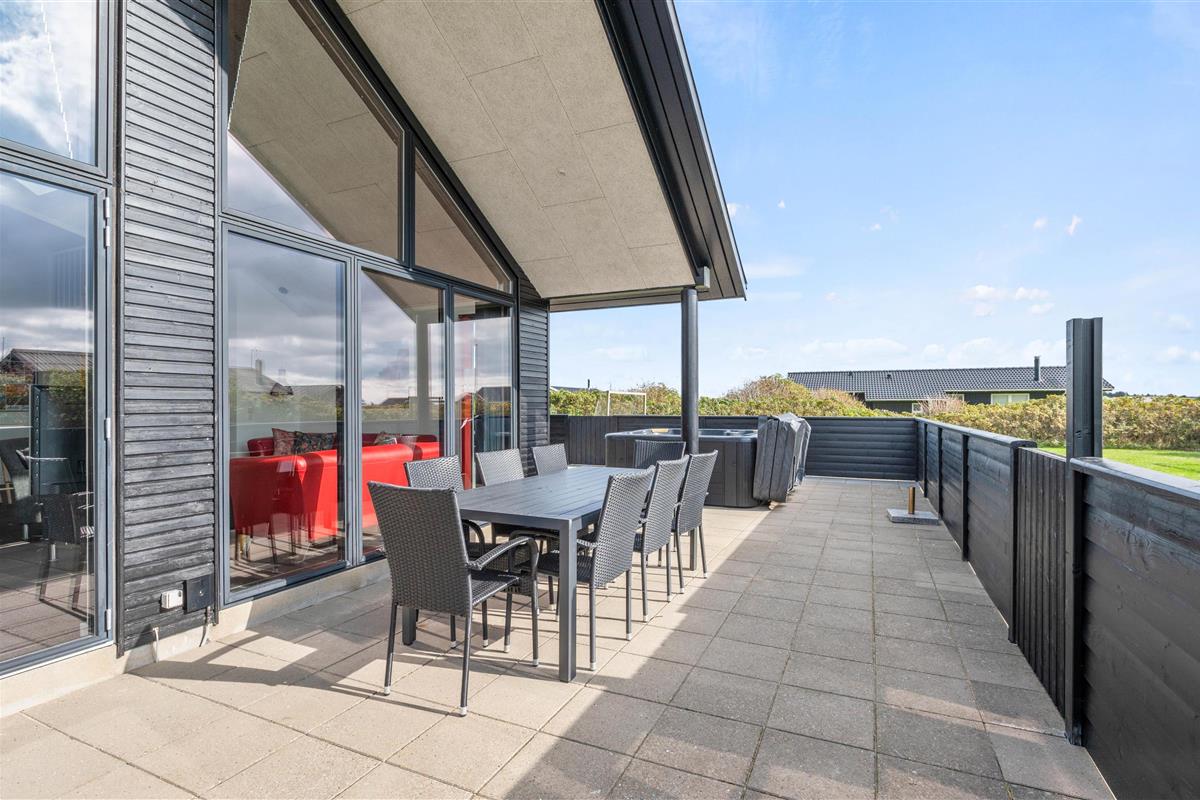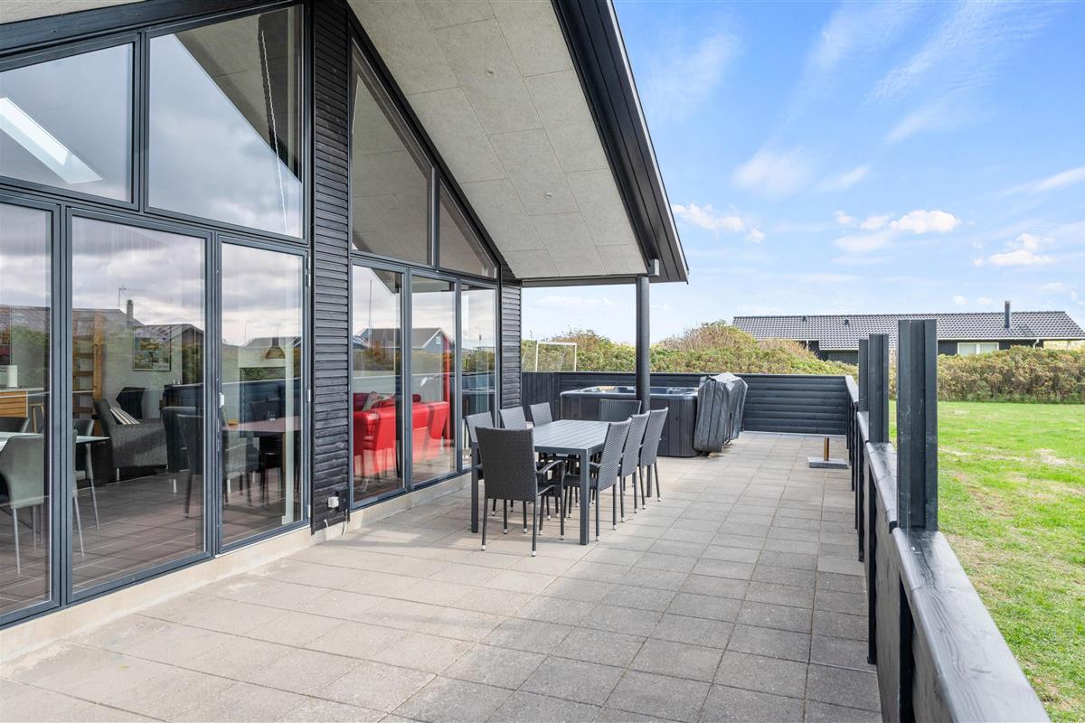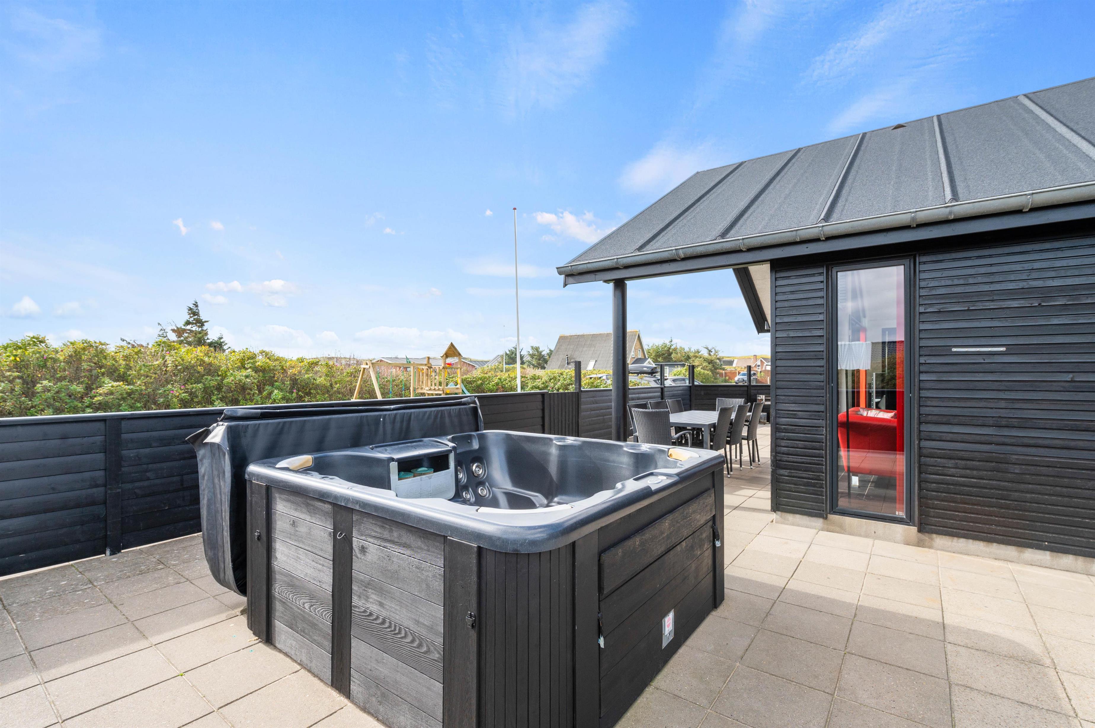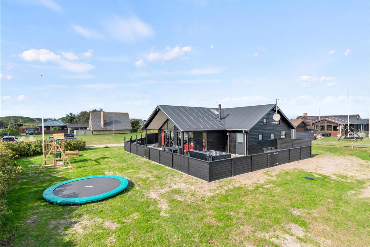 This beautiful quality holiday home at Hafavej 161 in Søndervig is modernly furnished and accommodates up to 8 people, featuring a lovely outdoor hot tub on the terrace. This excellent holiday home is well-suited for 2 families, close to town and just 400 metres from the North Sea. All 4 beautiful bedrooms come with TV and DVD players, and internet access is available throughout. Two pets are welcome to accompany you.
