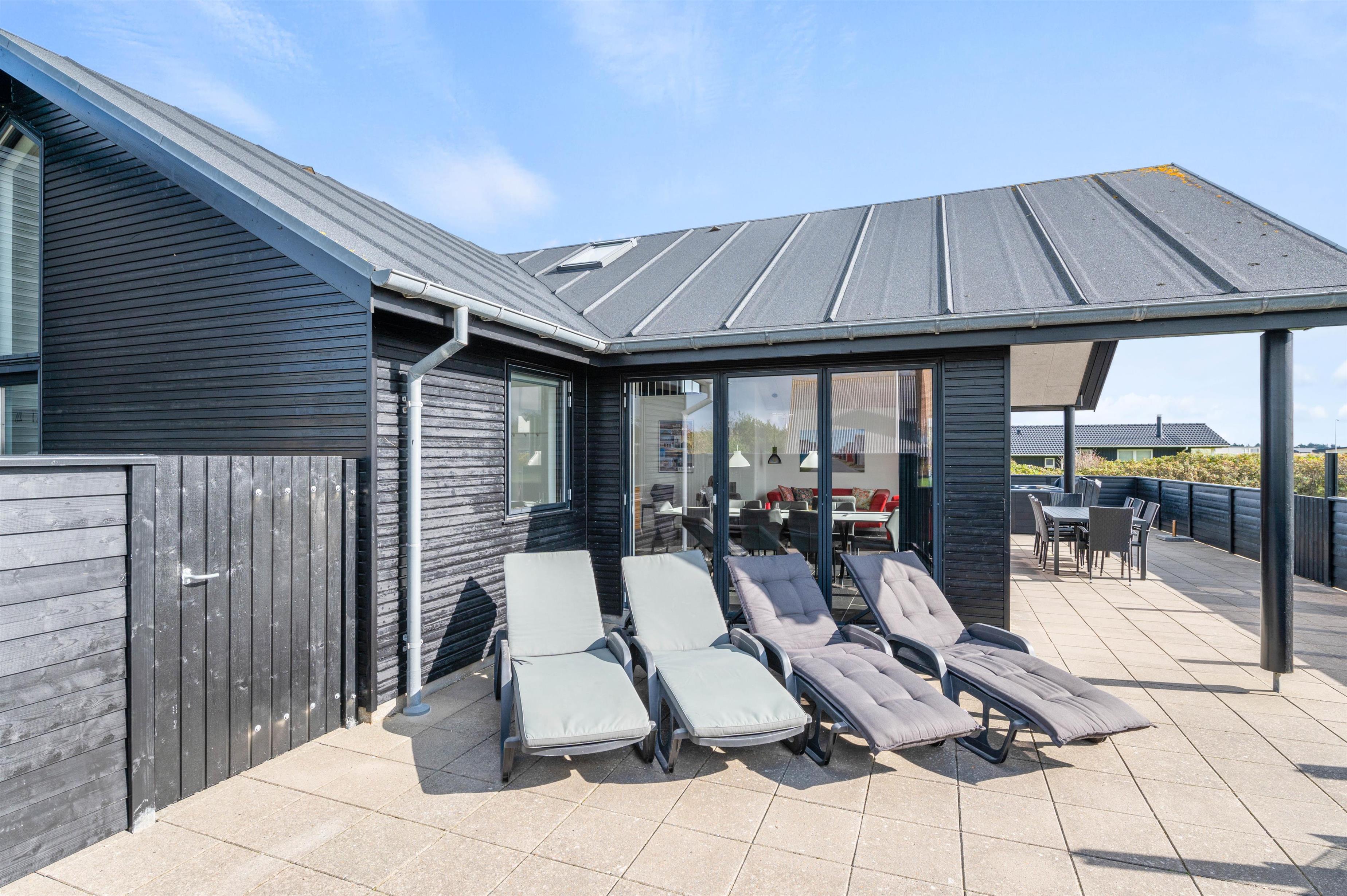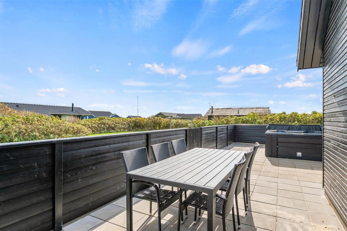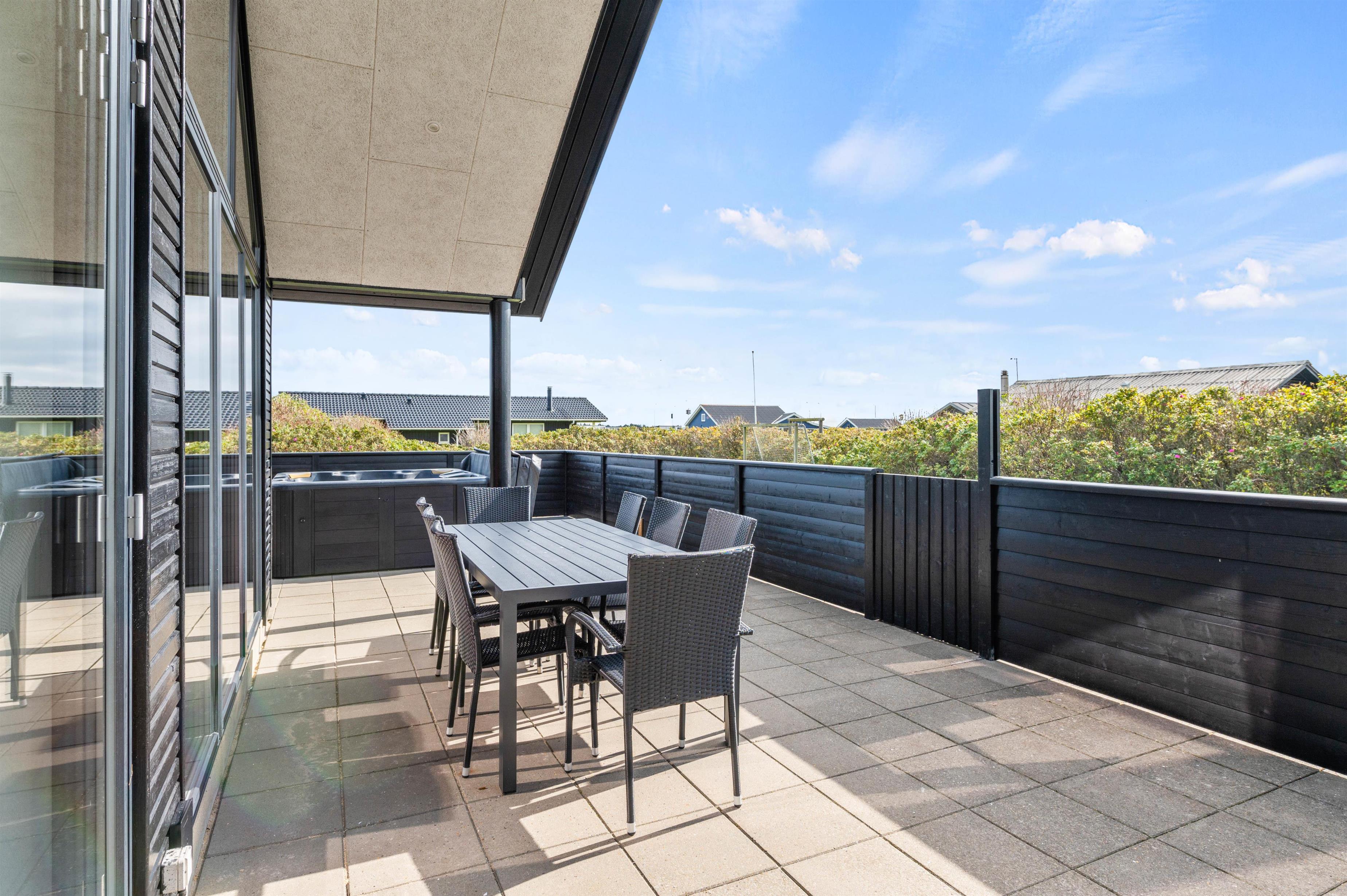 This beautiful quality holiday home at Hafavej 161 in Søndervig is modernly furnished and accommodates up to 8 people, featuring a lovely outdoor hot tub on the terrace. This excellent holiday home is well-suited for 2 families, close to town and just 400 metres from the North Sea. All 4 beautiful bedrooms come with TV and DVD players, and internet access is available throughout. Two pets are welcome to accompany you.