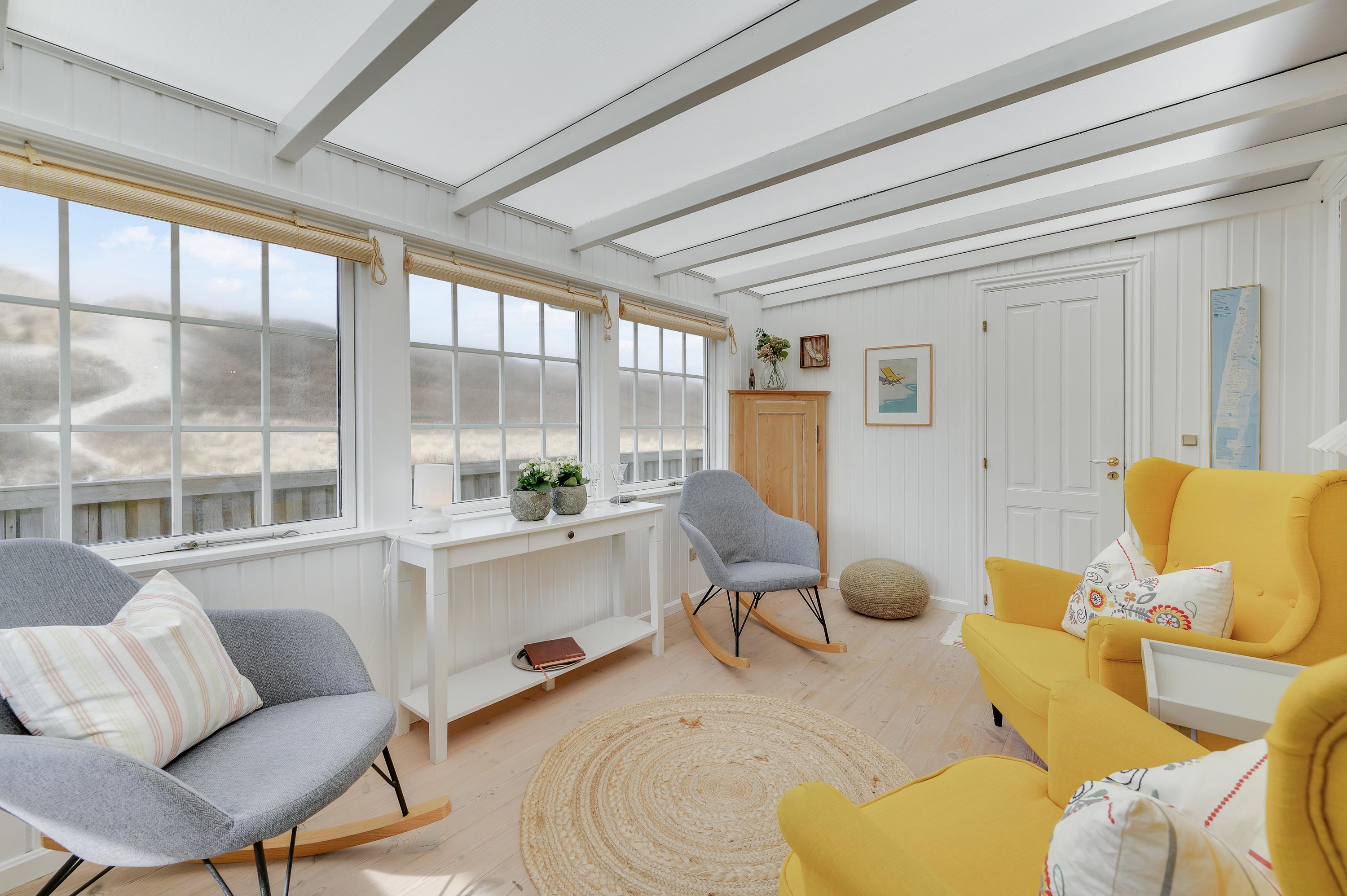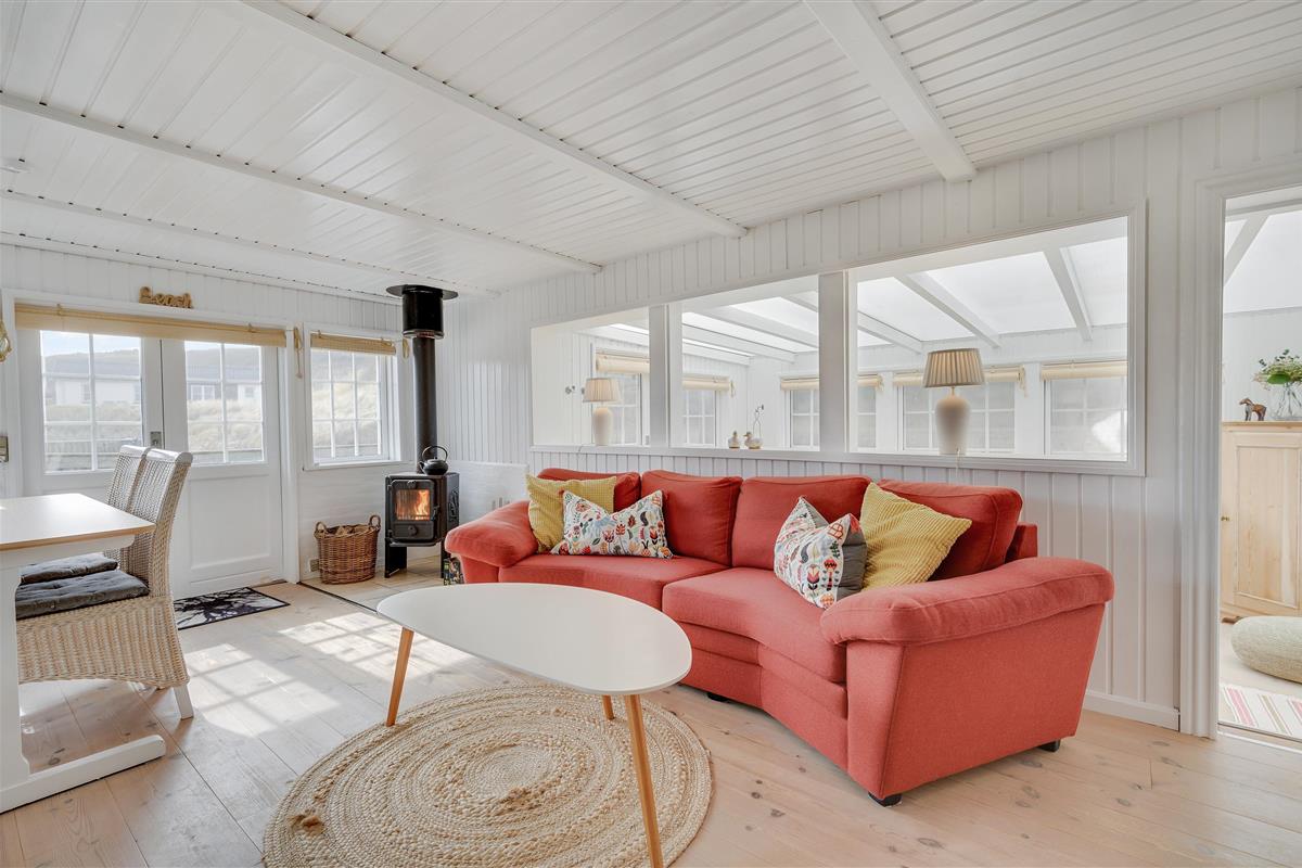This cosy holiday home offers a relaxing family holiday setting. The abundance of windows and white-painted walls create a bright, spacious atmosphere.