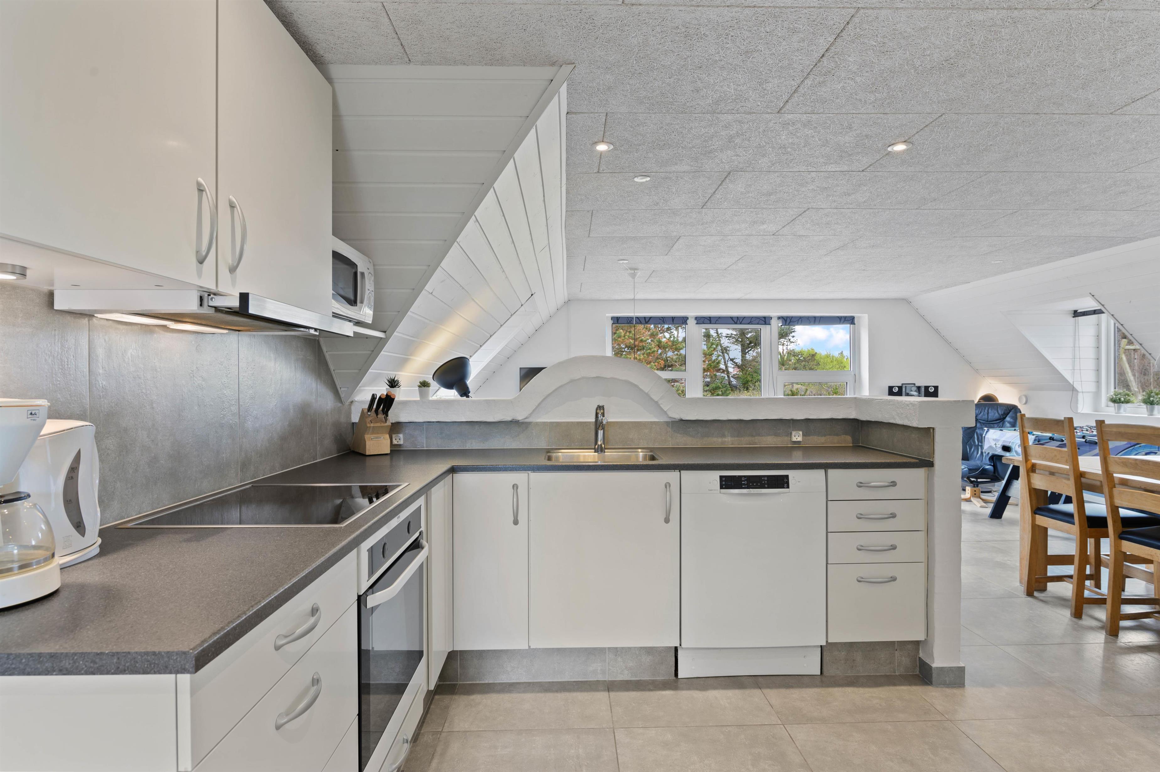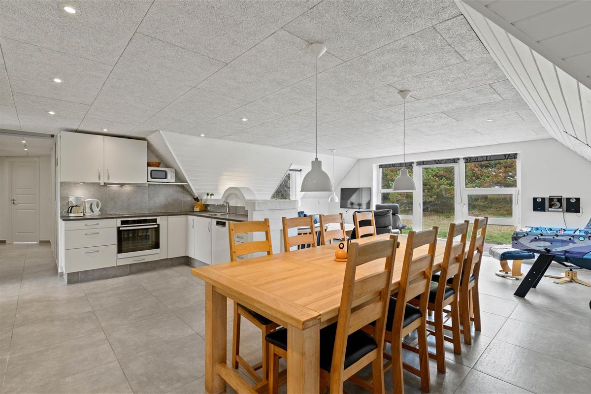 The heart of this newly renovated (2022) holiday home in Søndervig is the living area, which combines kitchen, living room and dining area. Here you can cook together, watch good films on television or play fun games at the dining table. The living area features underfloor heating to keep your feet warm, particularly welcome during the cooler months. The energy-efficient heat pump provides additional comfortable room temperatures.