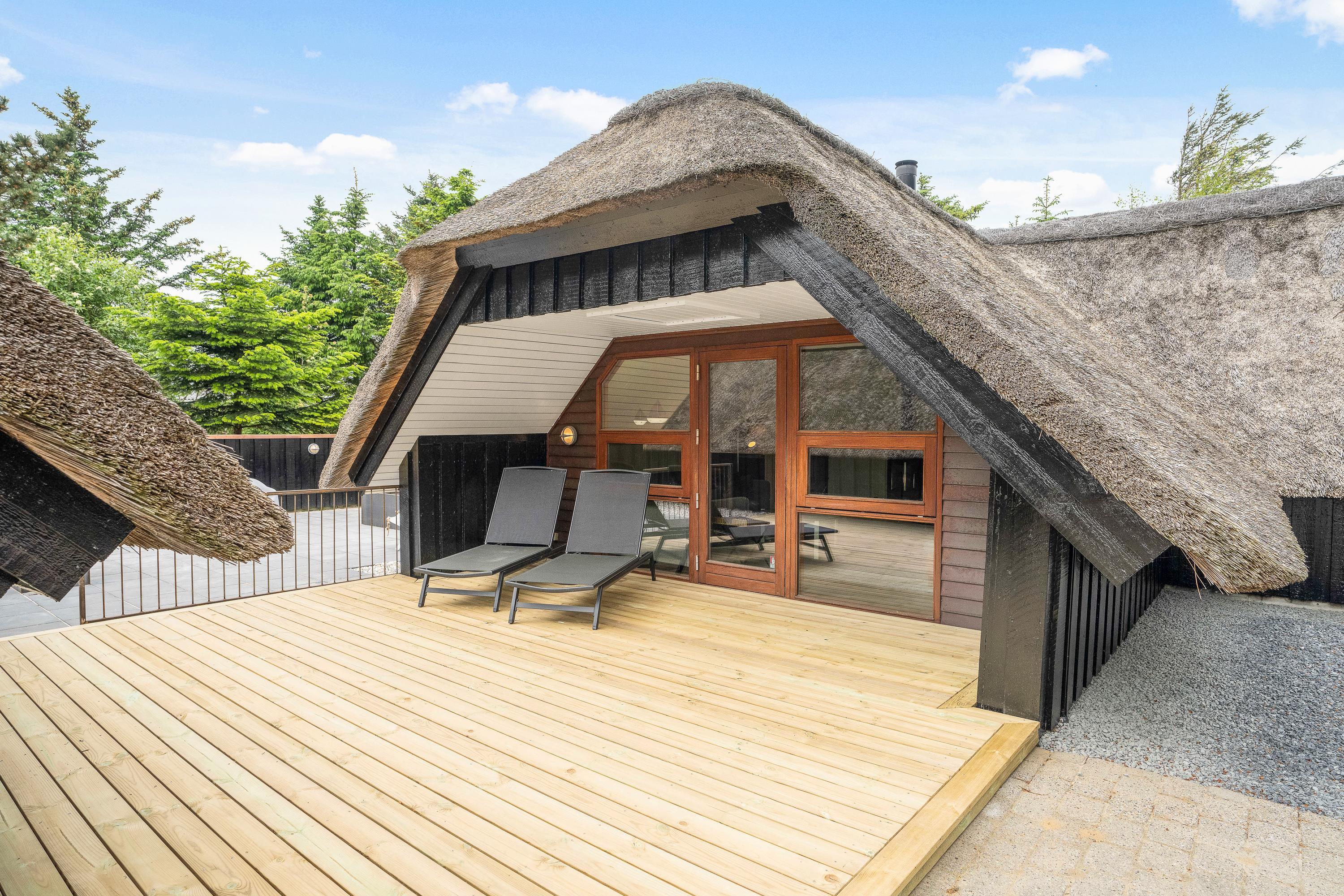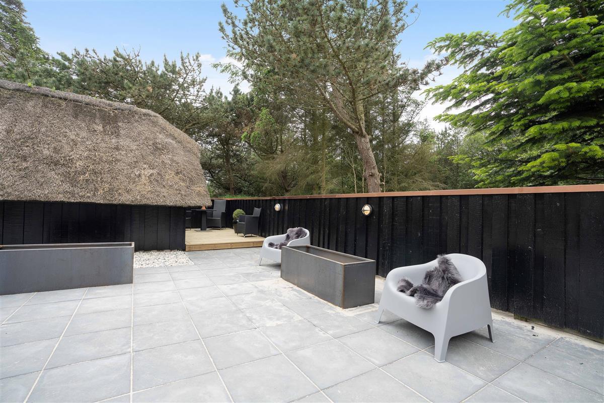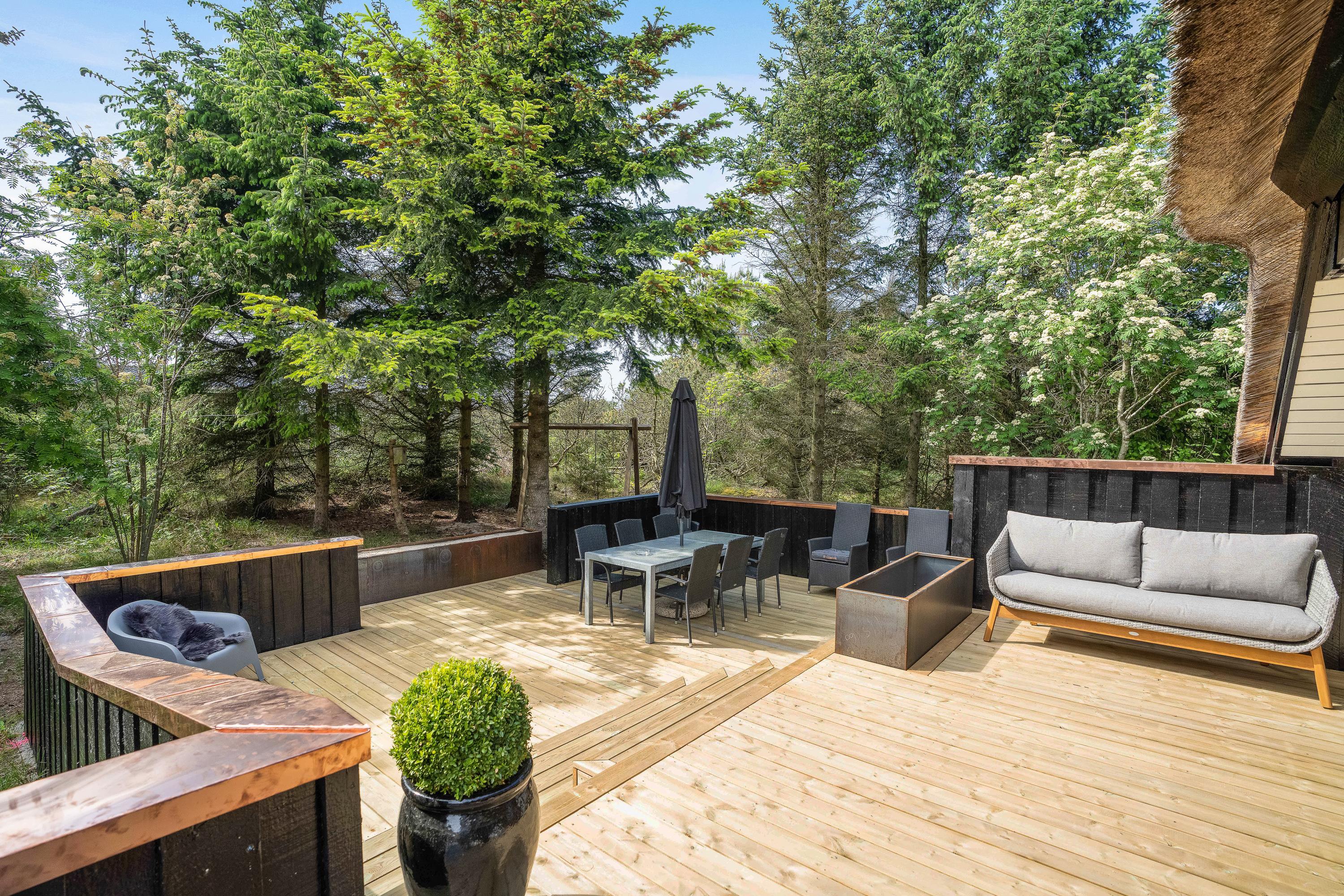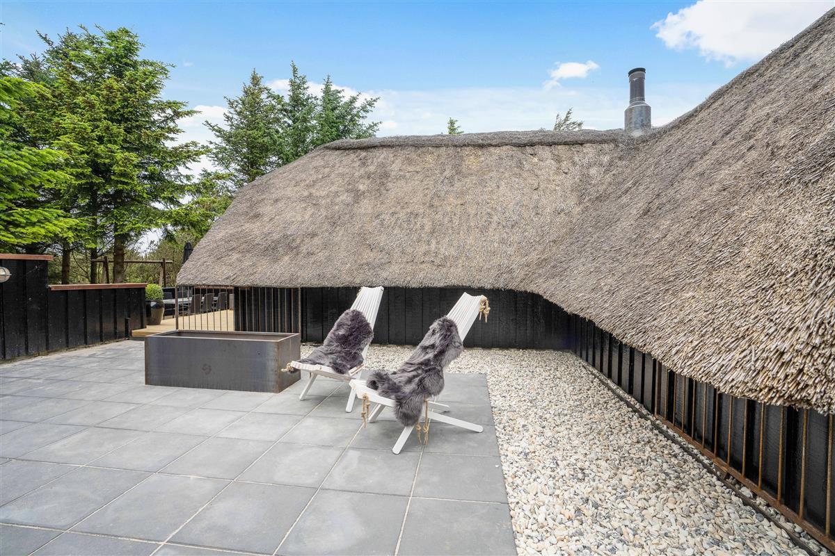 If you're looking for a holiday home in Søndervig surrounded by nature, where you can relax on spacious terraces and escape everyday life, then Jens Jensens Vej 26 could be the perfect address for your next holiday. As you approach this thatched cottage, you'll be impressed by its grounds. Tall trees and green shrubs surround the approximately 3,000 square metre plot, immediately creating a sense of holiday tranquillity and relaxation. With 126 square metres of living space, there's room for 6 people. Your dog are also welcome here and can run freely in the fenced dog area in the garden.