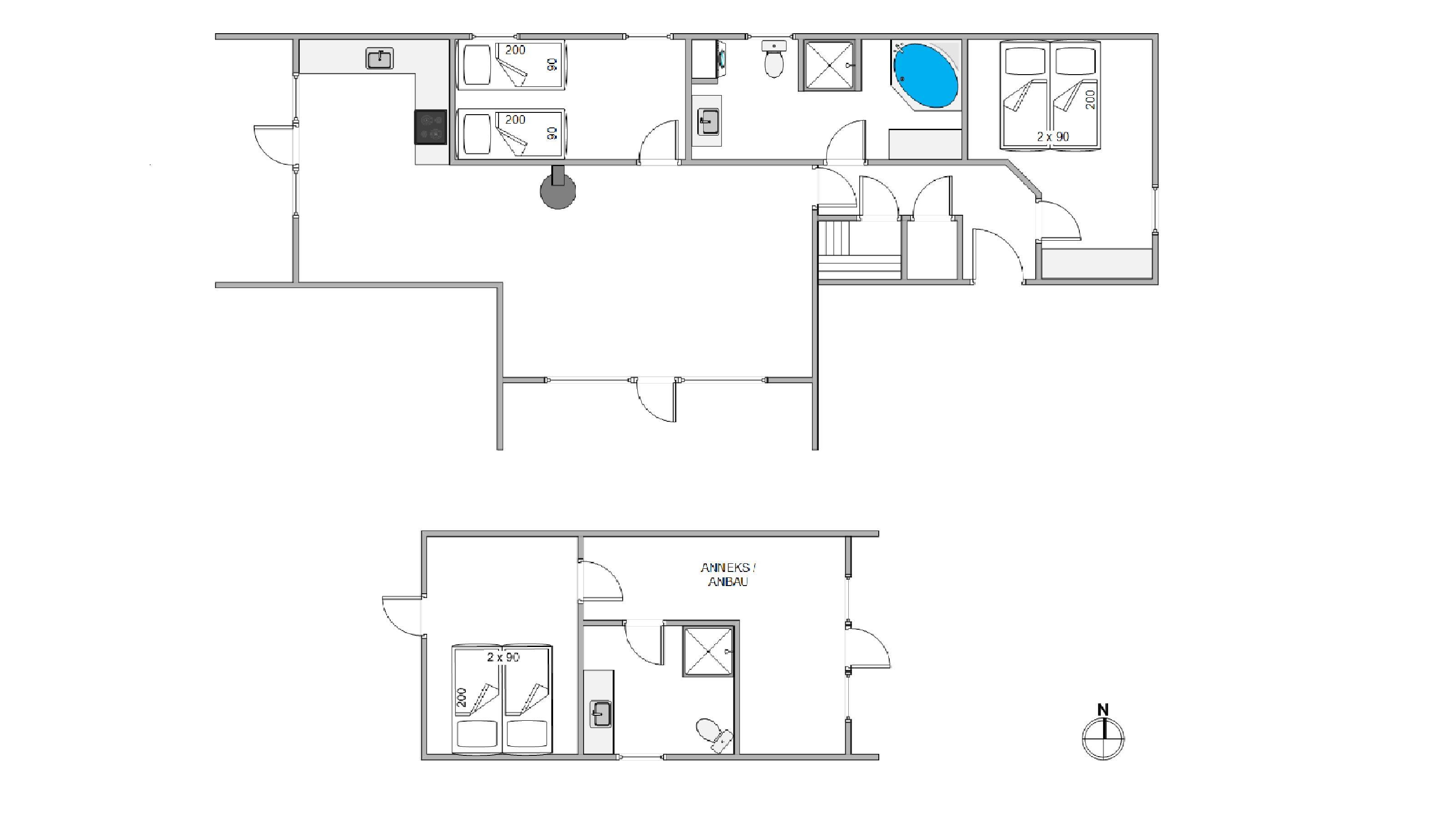 The spacious kitchen is well-equipped with everything you need for cooking family meals, with a dishwasher taking care of the cleaning afterwards. The dining table offers plenty of space for all guests - perfect for an extended evening of board games in the kitchen or planning your activities for the coming days.